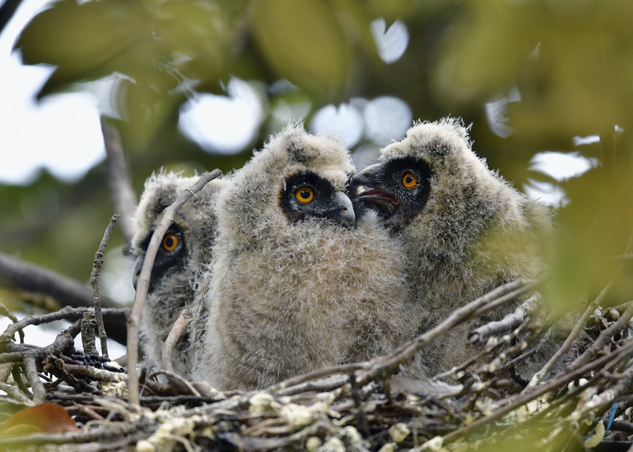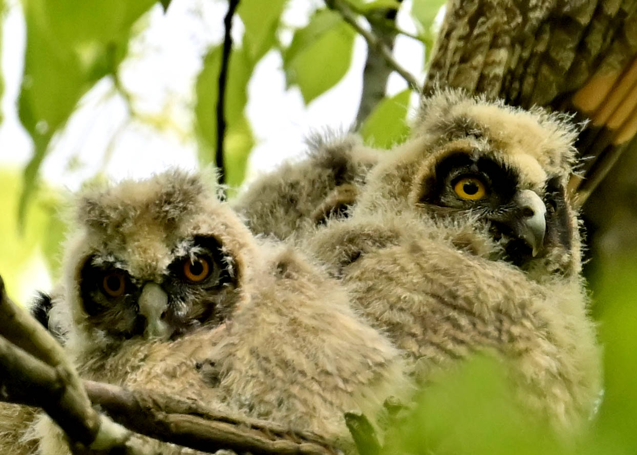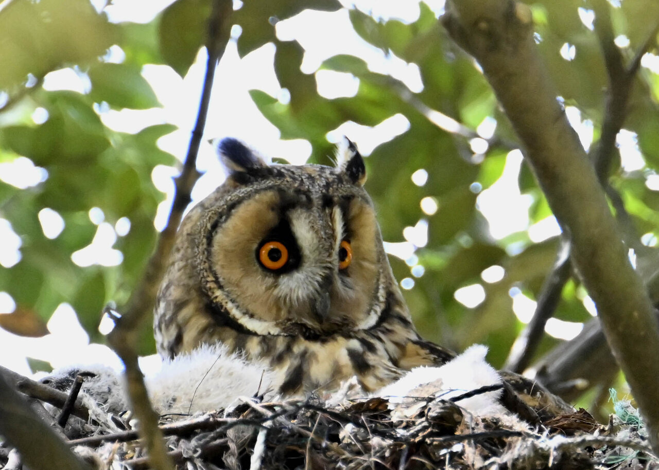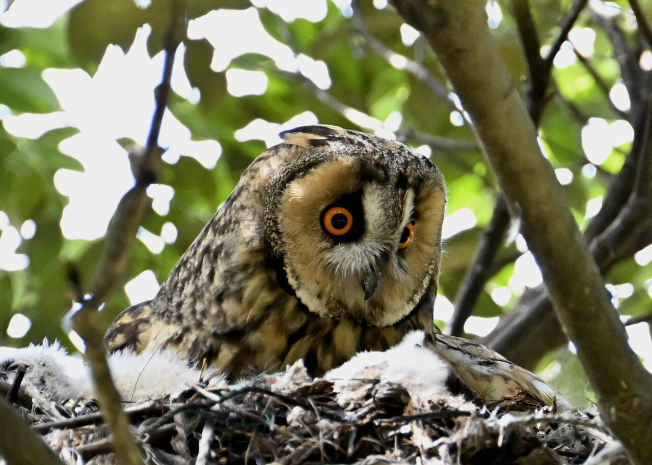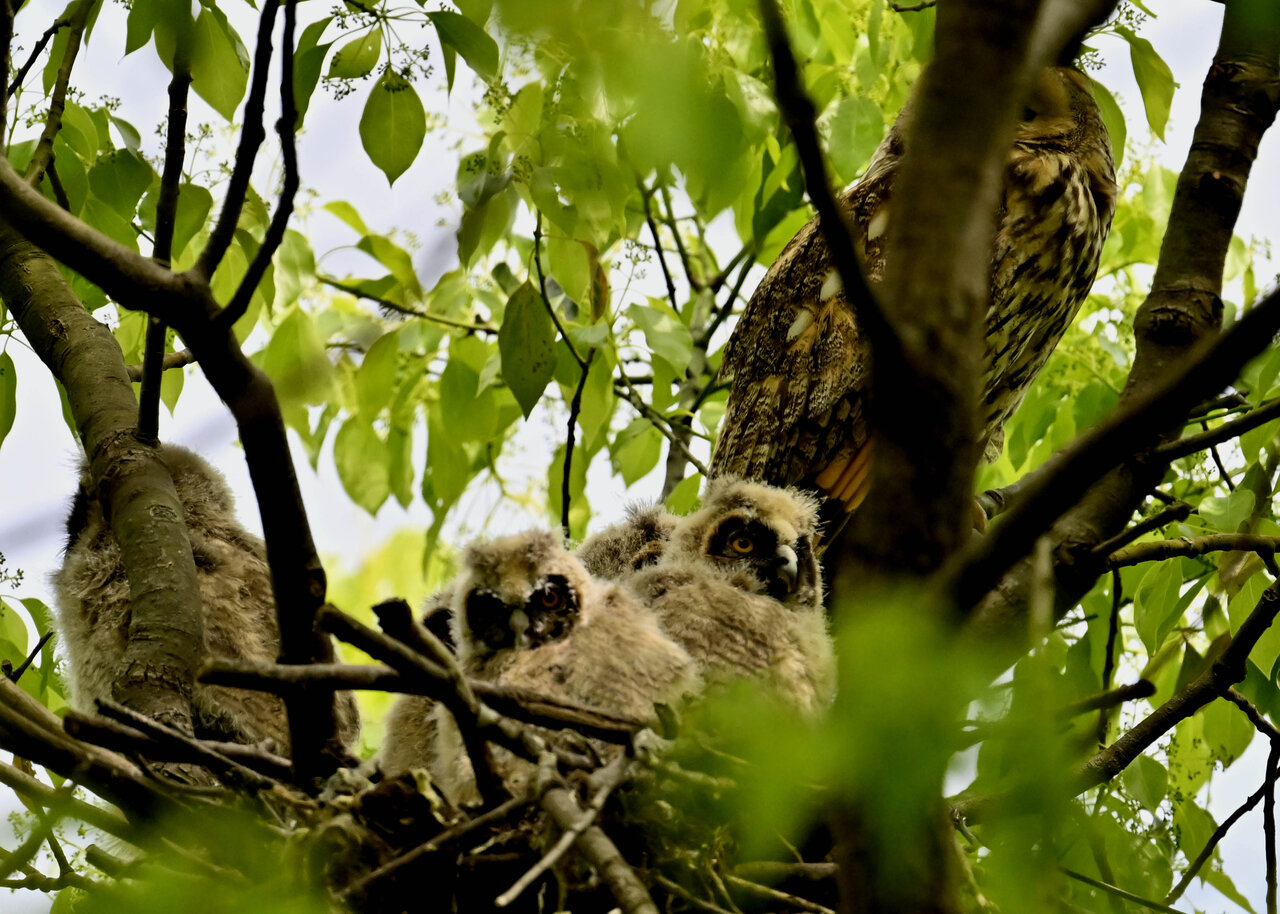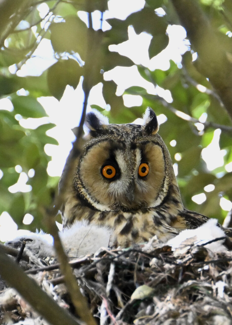 「トラフズク♀親とヒナ」 撮影地 : 埼玉県加須市