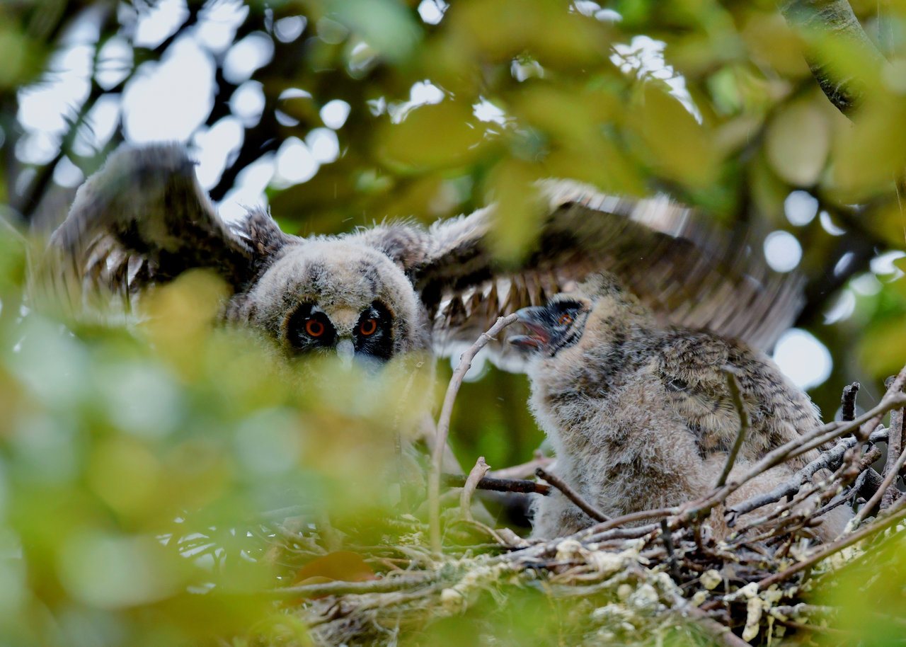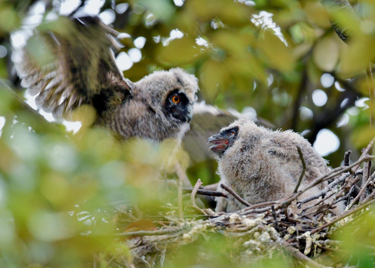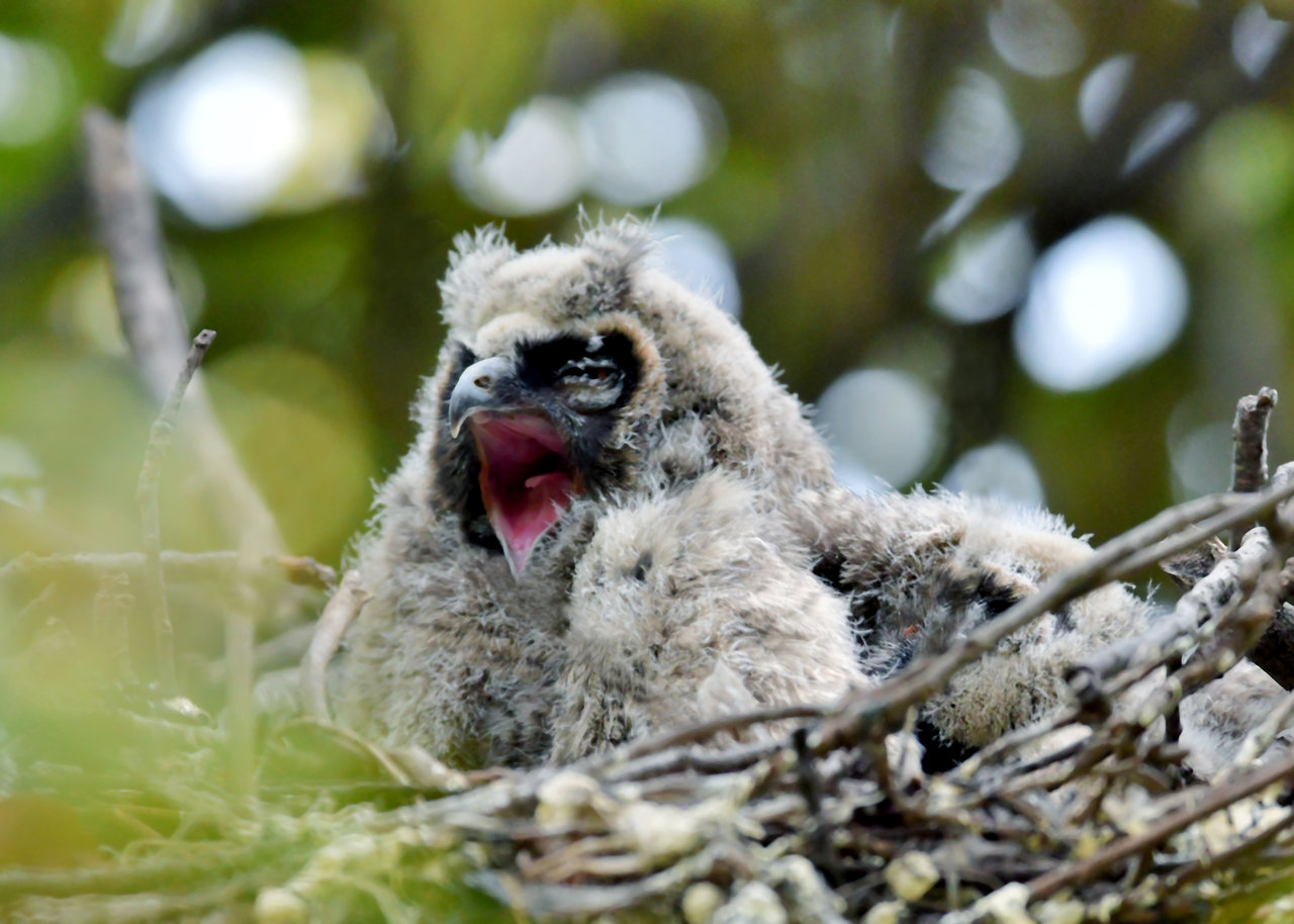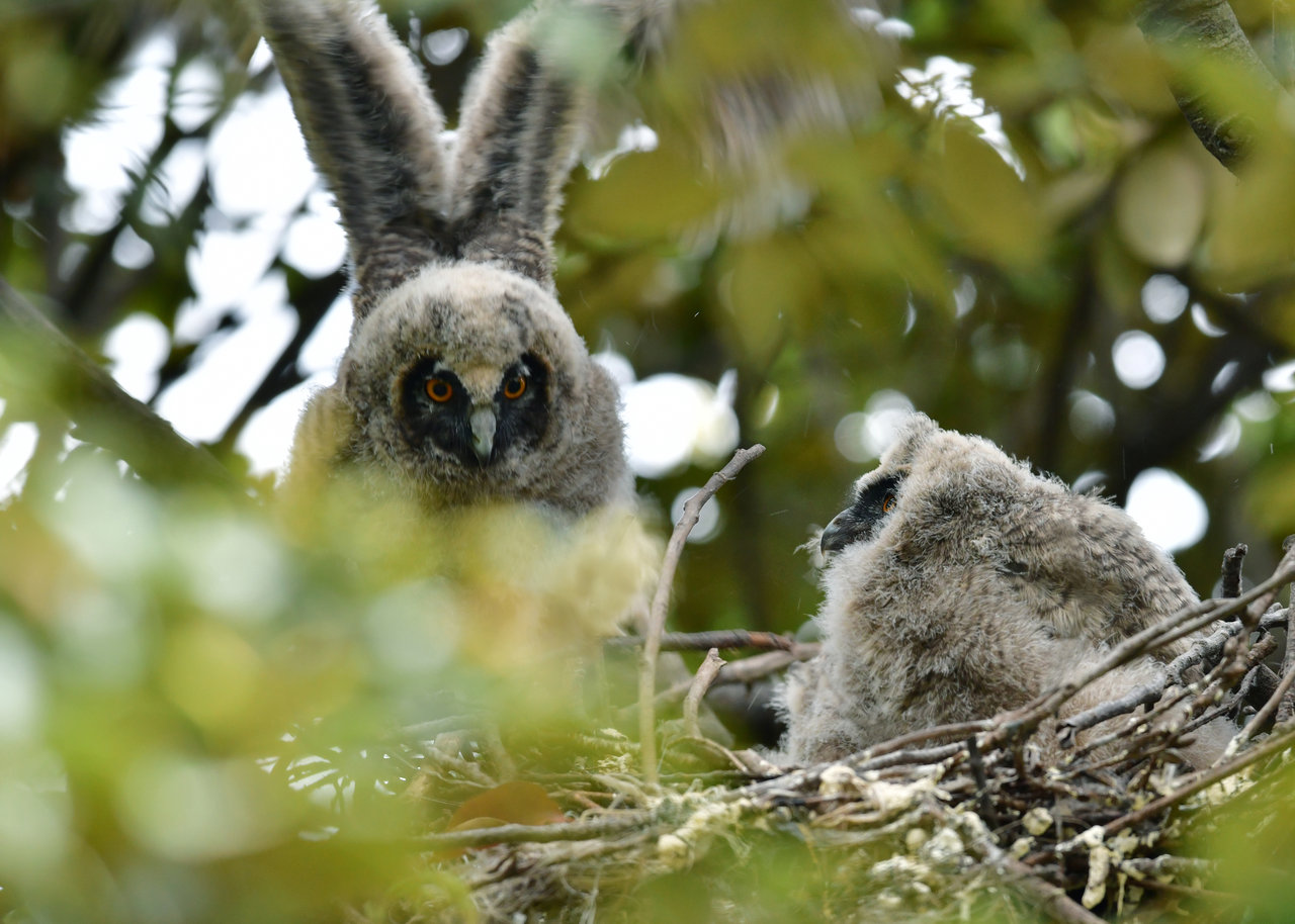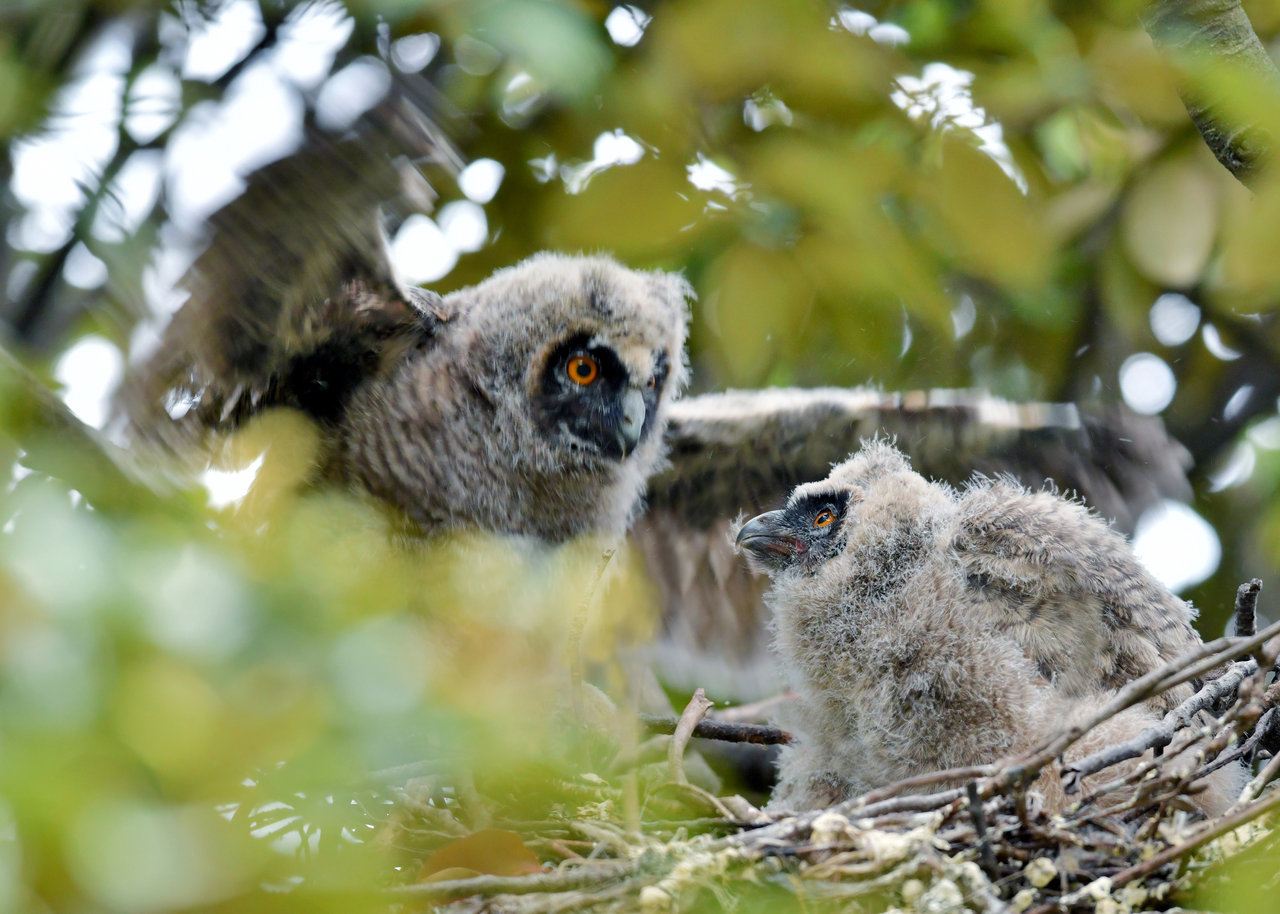 「トラフズク♀親とヒナ」 撮影地 : 埼玉県加須市
