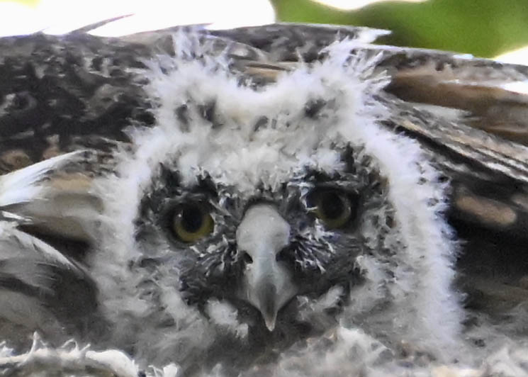 この日の3日後に行った時は早くも、目の周りが黒色になり虹彩も親鳥同様赤くなっていました。