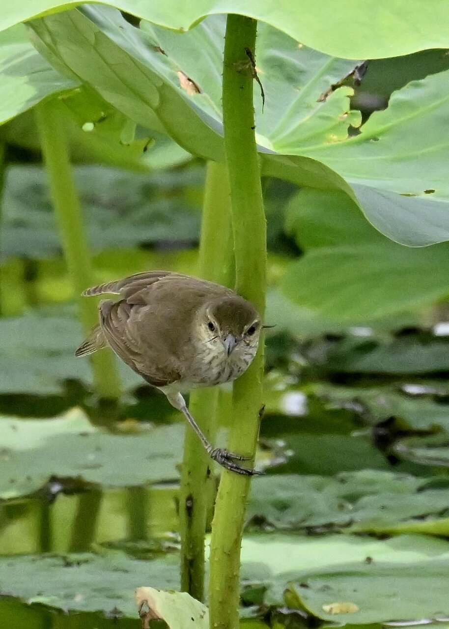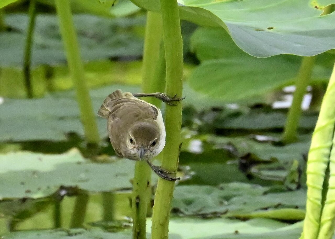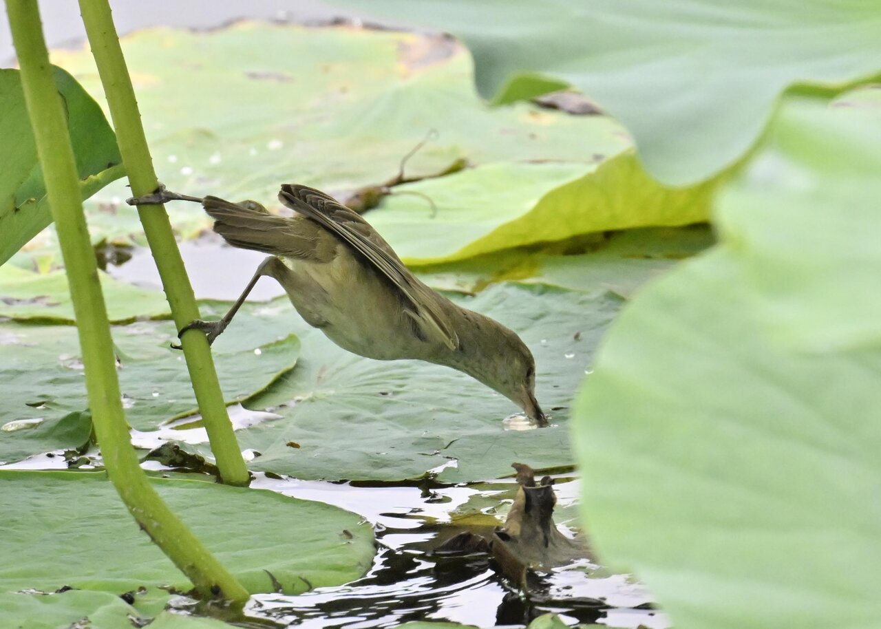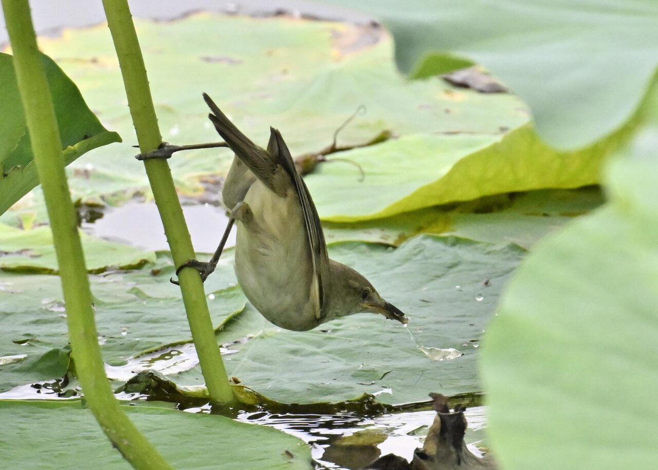 今日はオオヨシキリを掲載しています。 ヒナに与えるのでしょう蓮の葉についている昆虫を探していました。