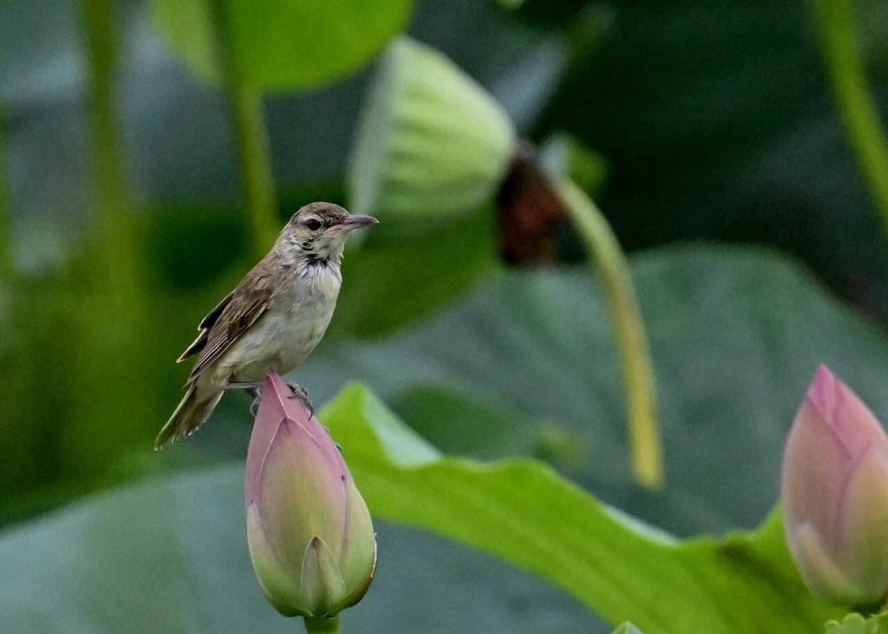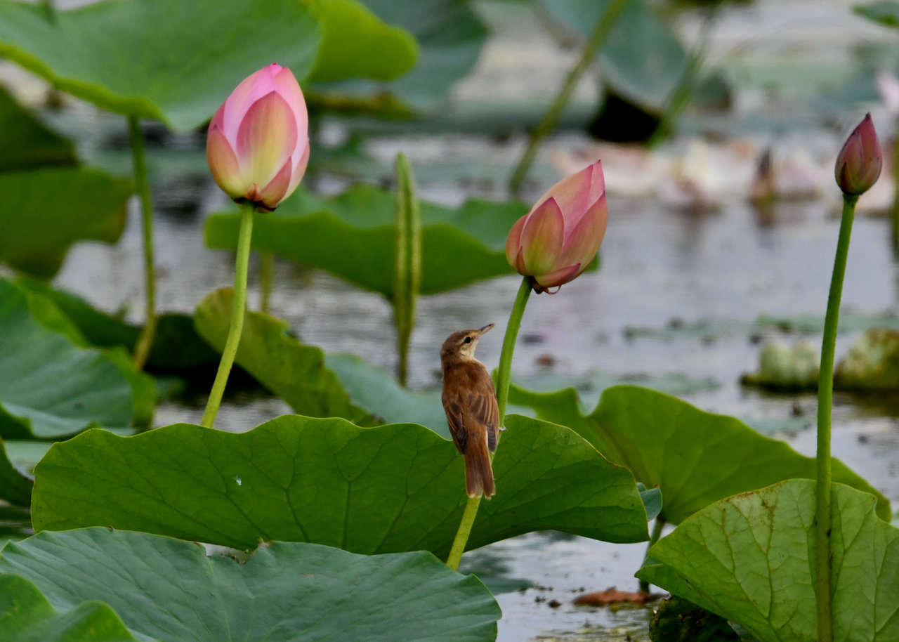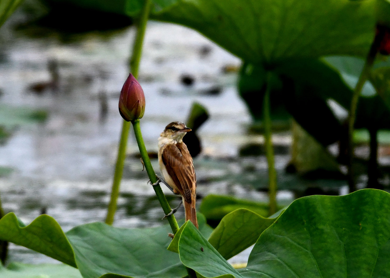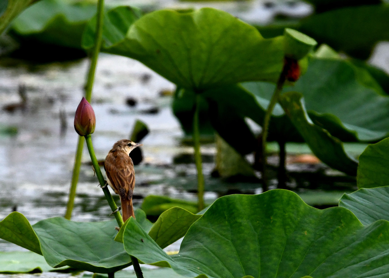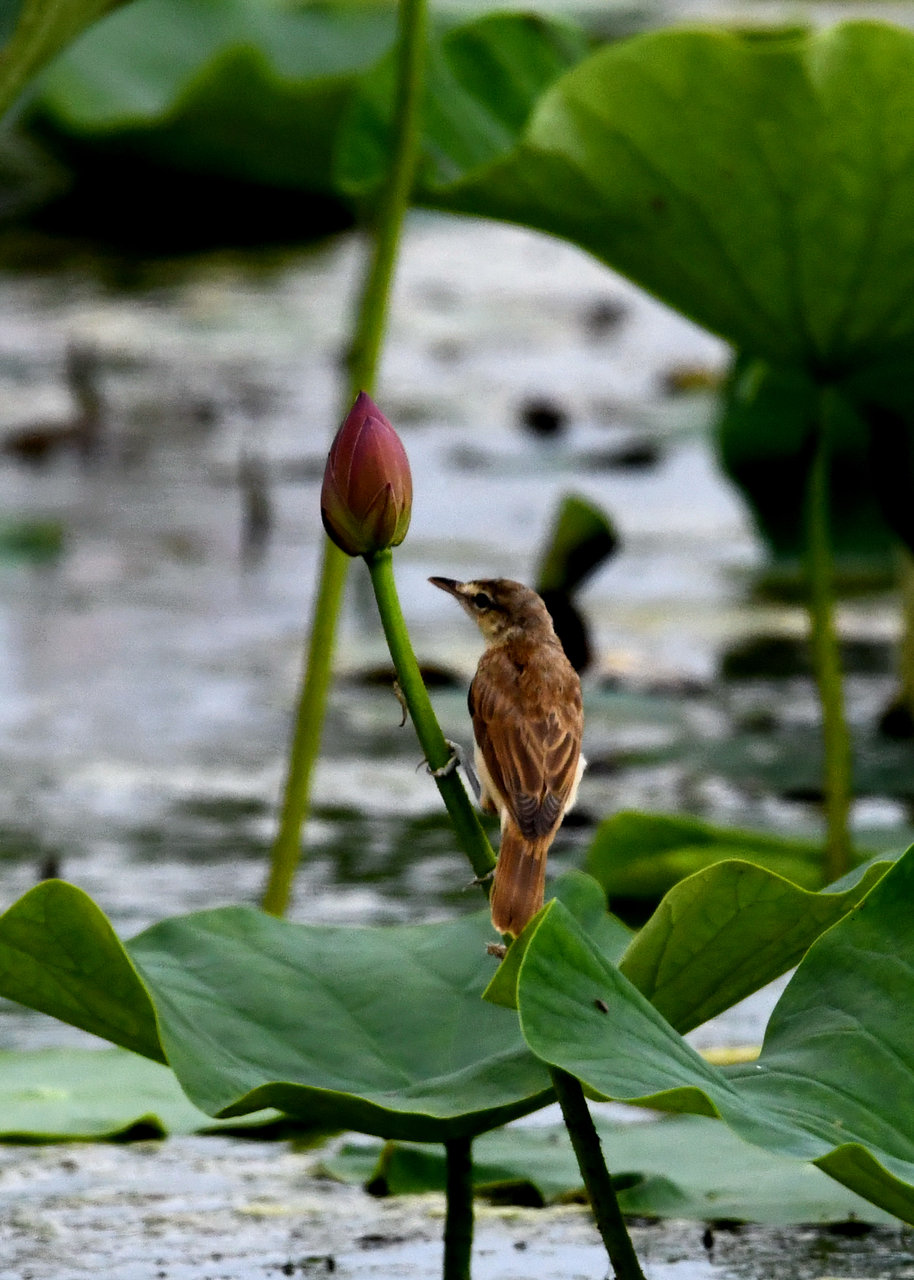 今日はオオヨシキリを掲載しています。 ヒナに与えるのでしょう蓮の葉についている昆虫を探していました。