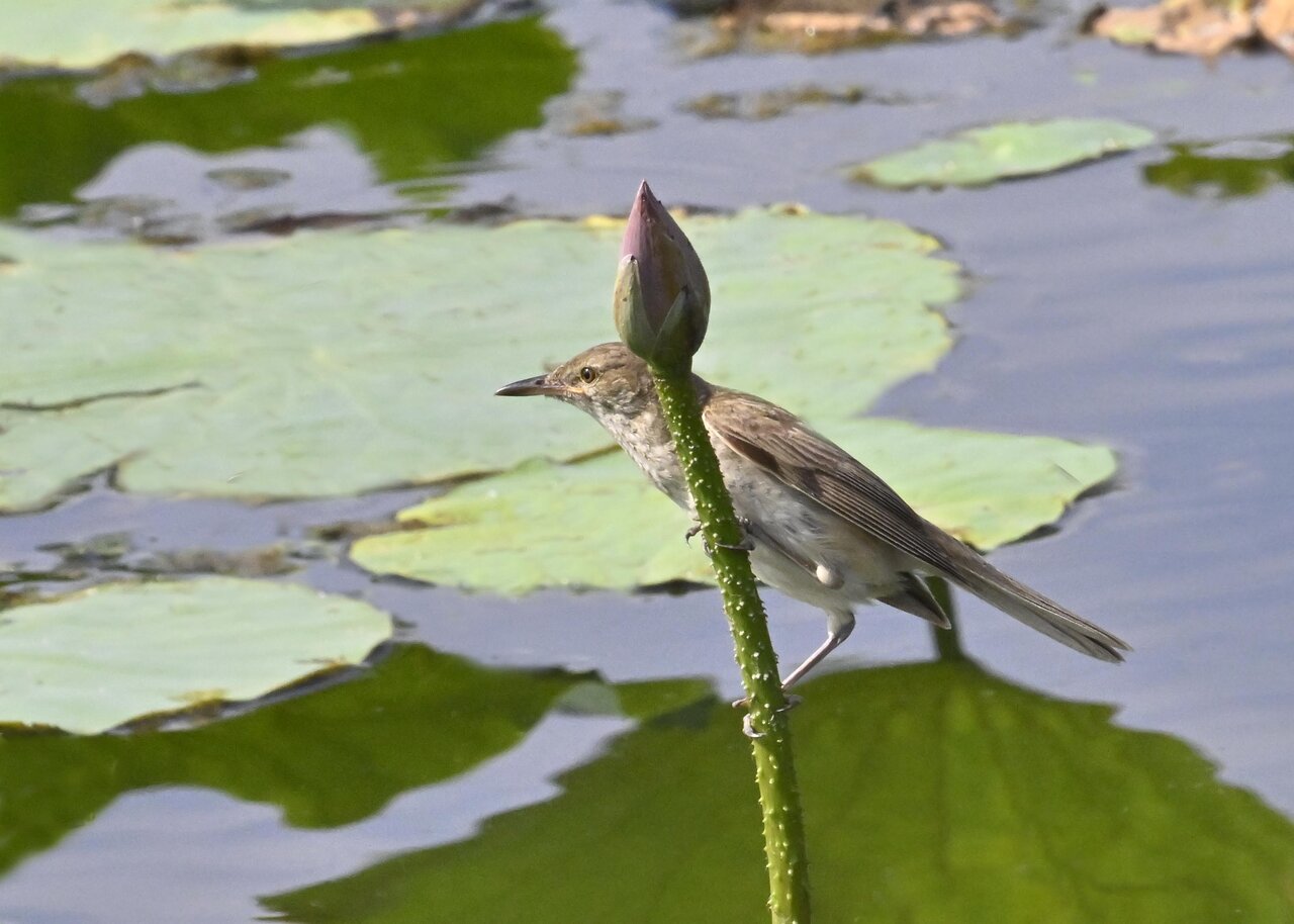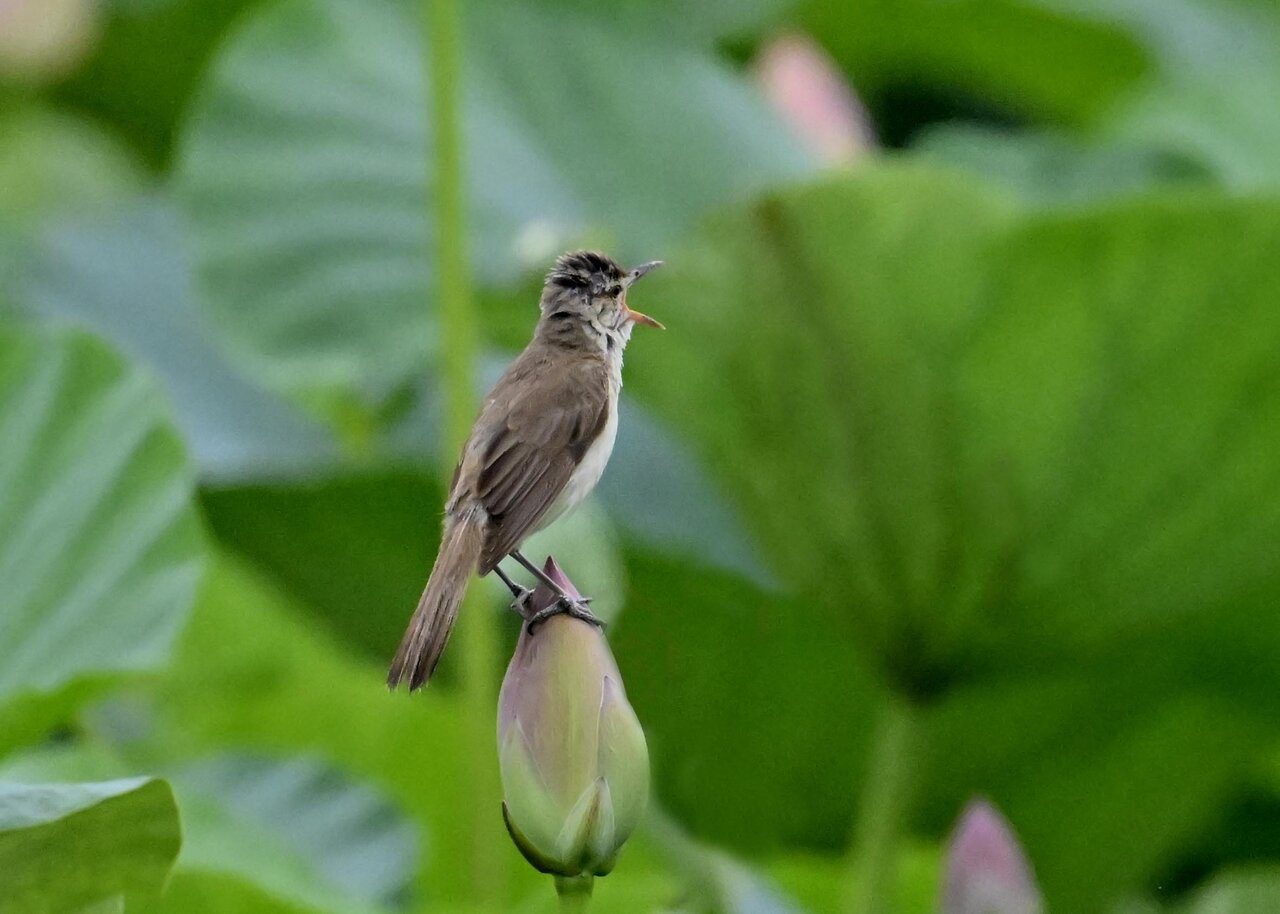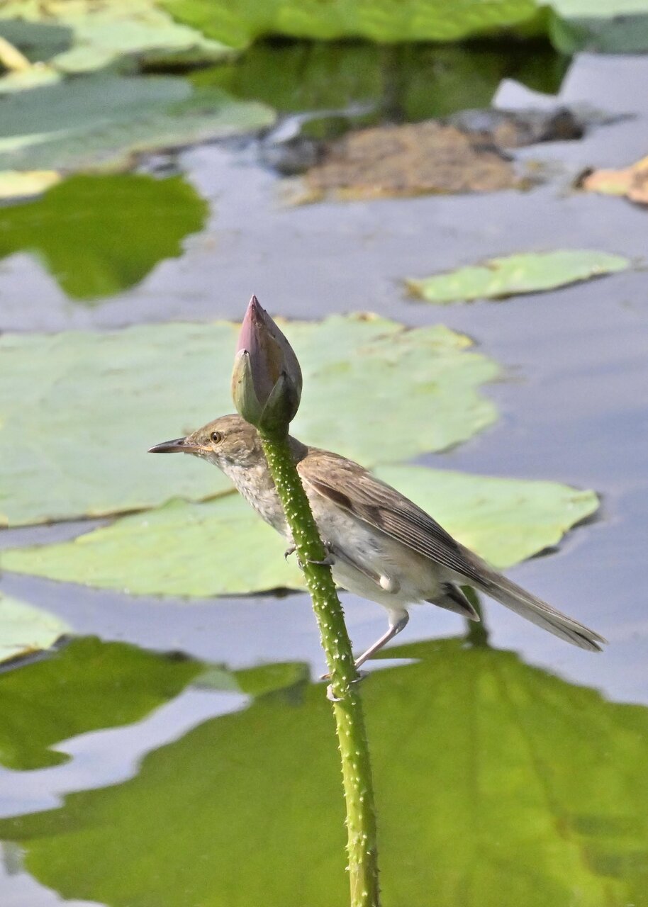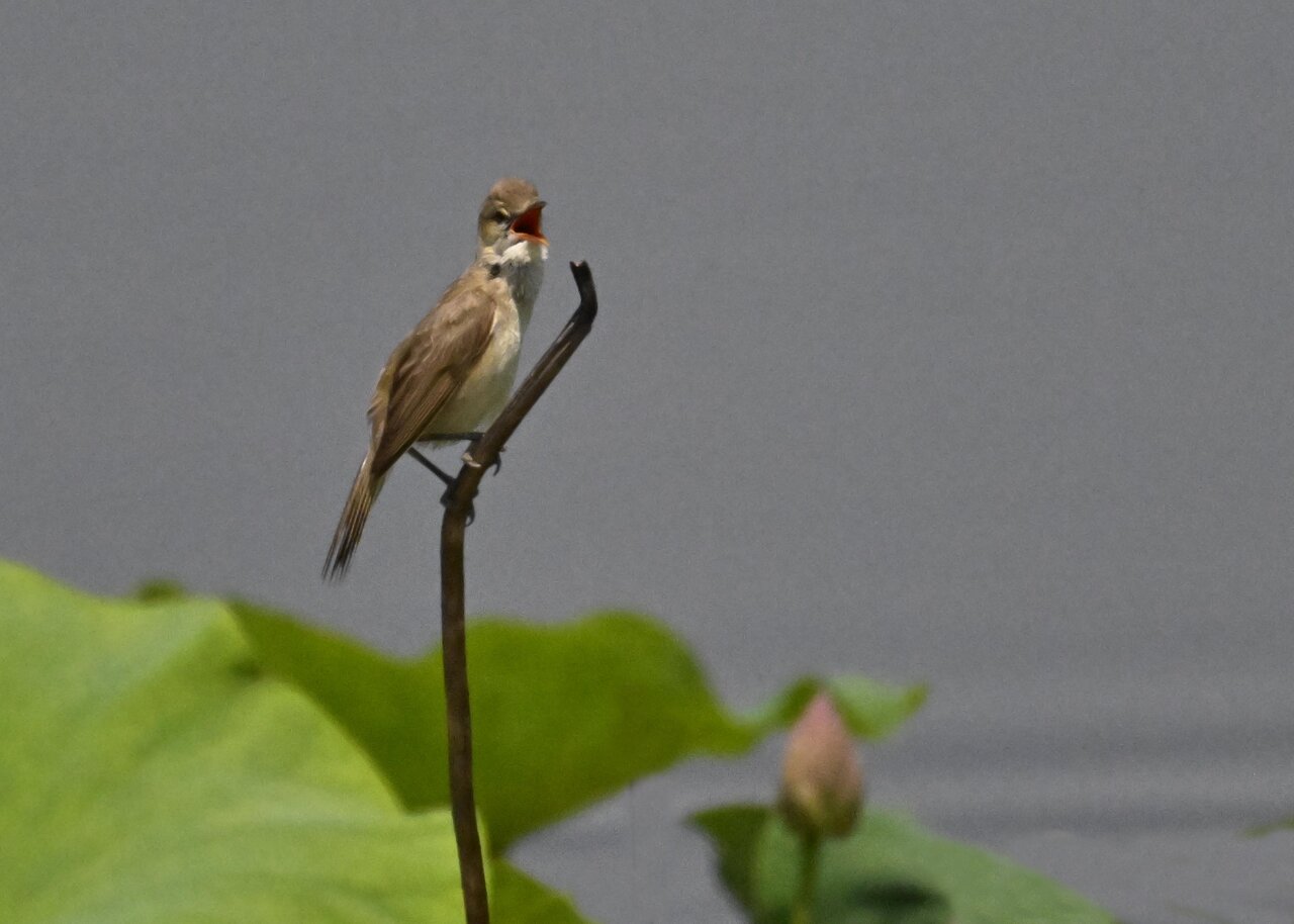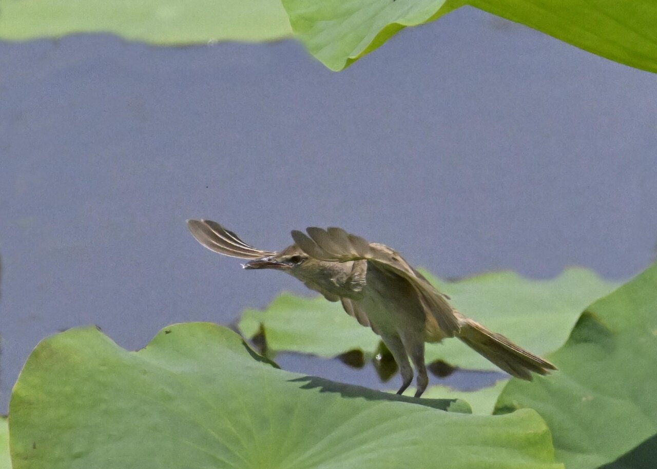 涼しい森林公園から炎天下の蓮池での画像が続きます。今日はオオヨシキリです。