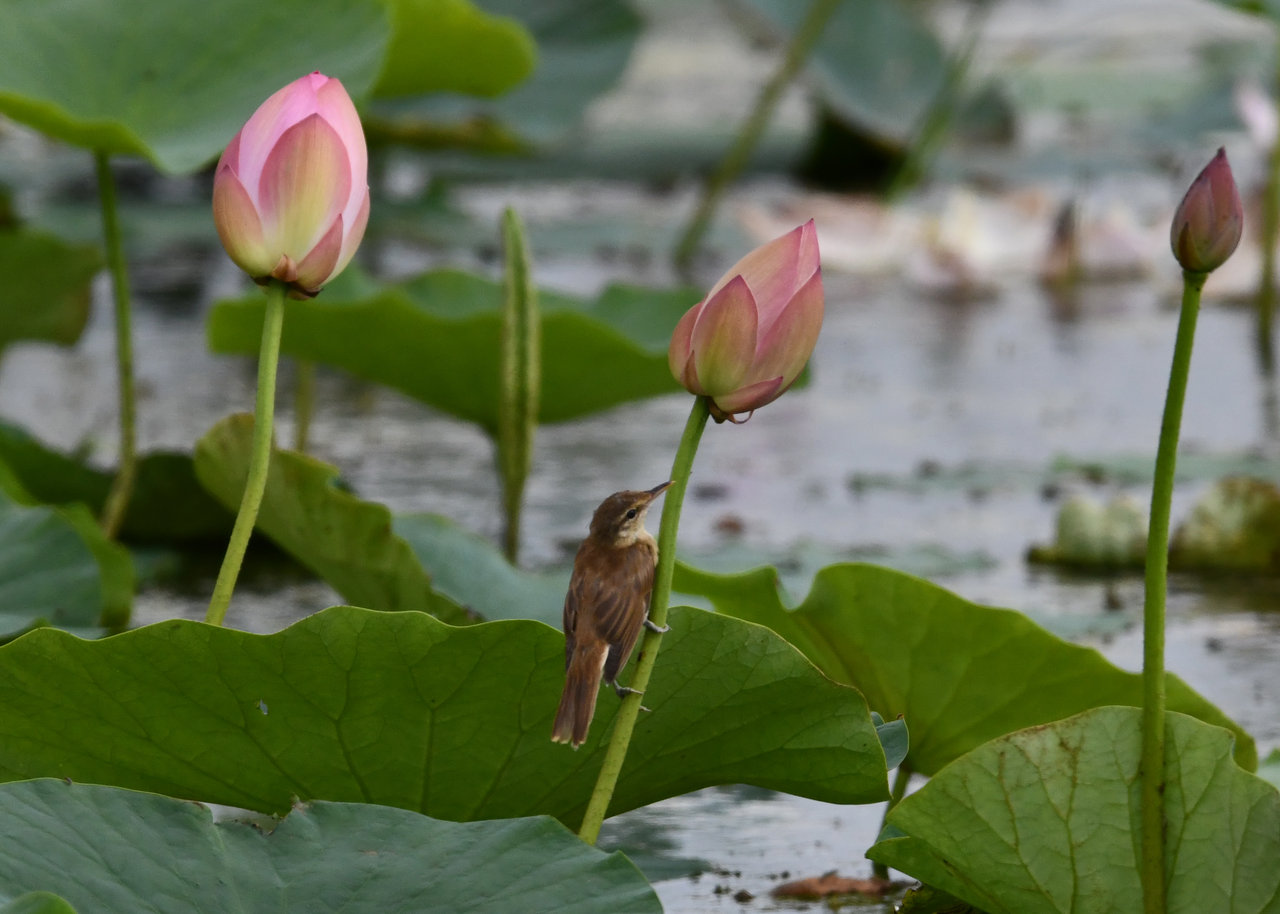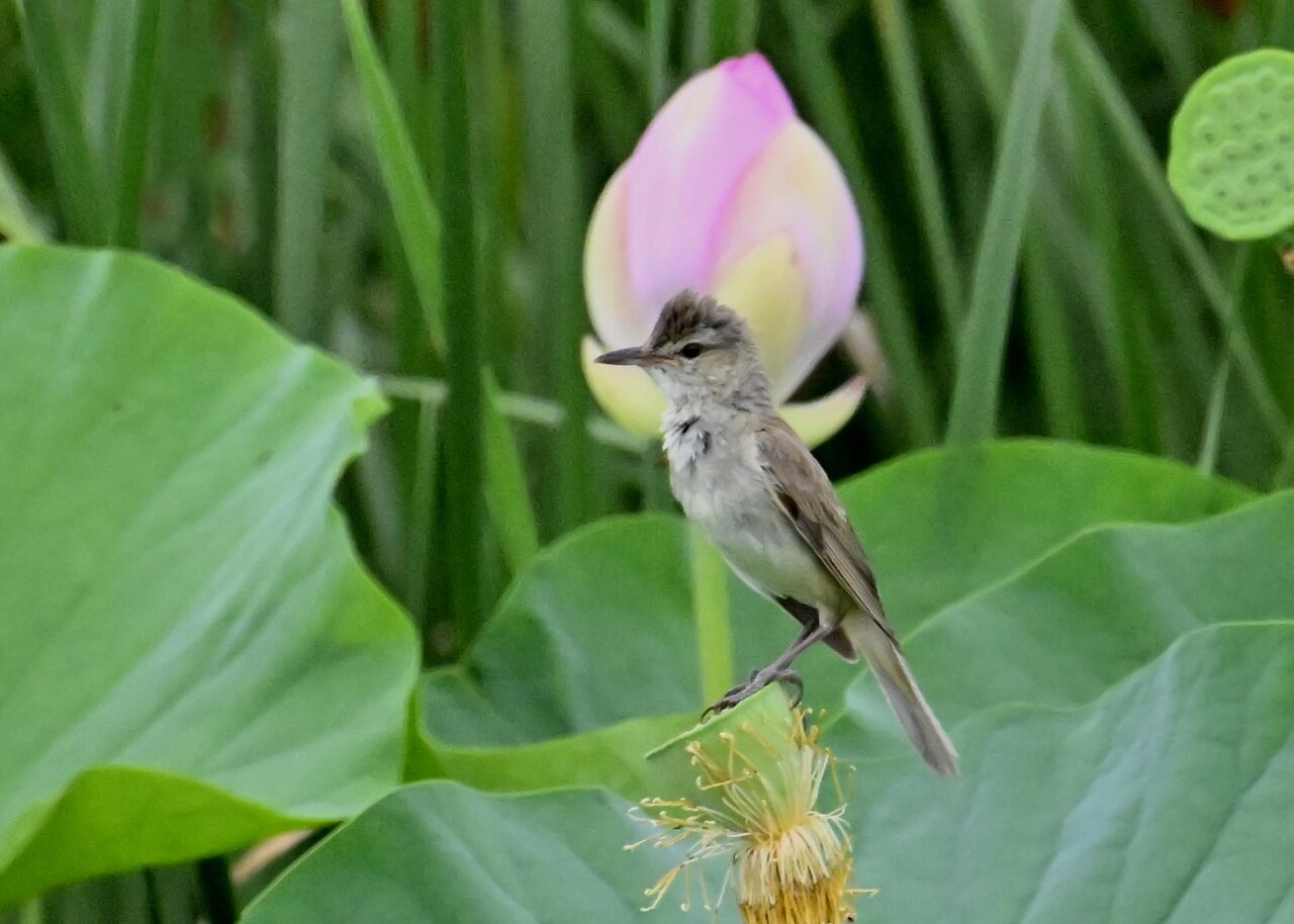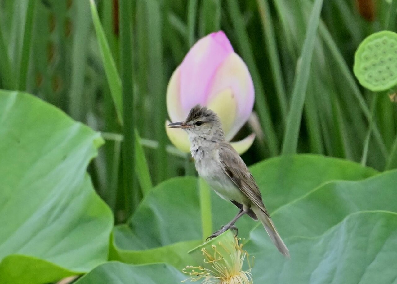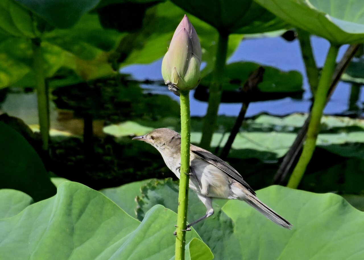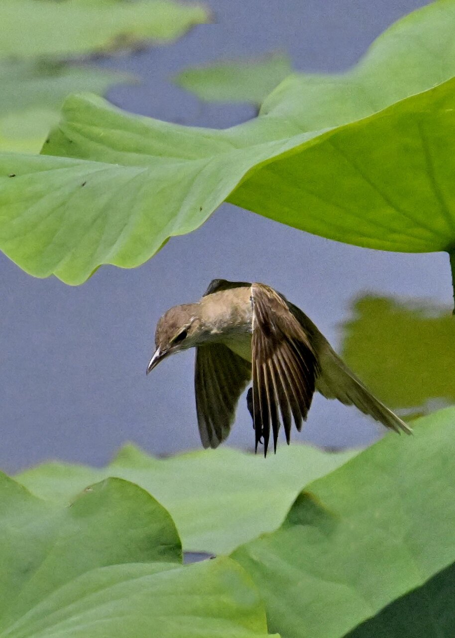 涼しい森林公園から炎天下の蓮池での画像が続きます。今日はオオヨシキリです。