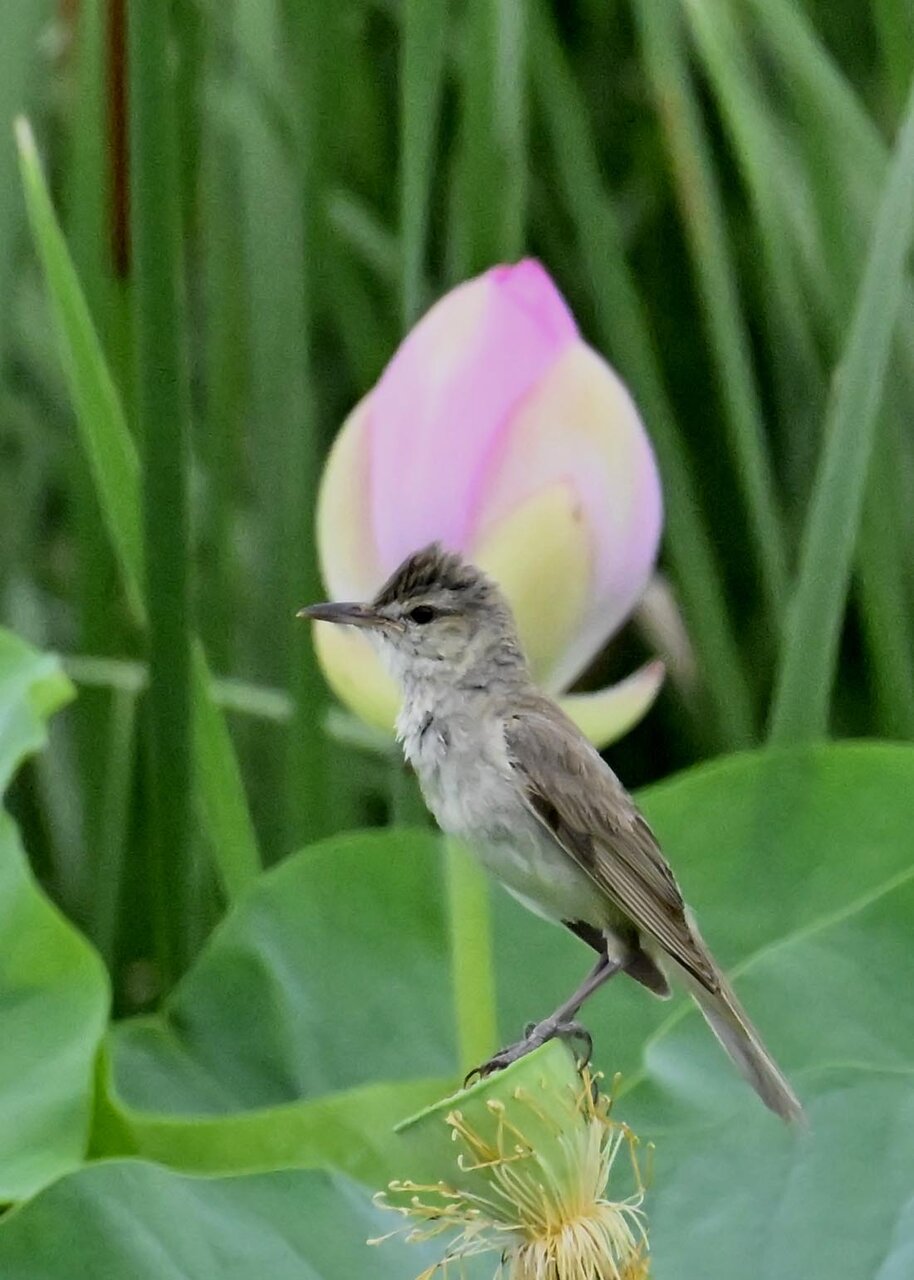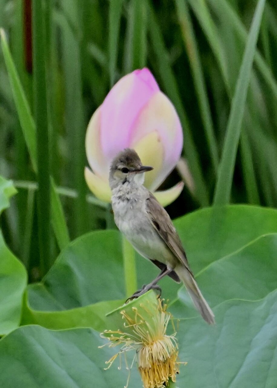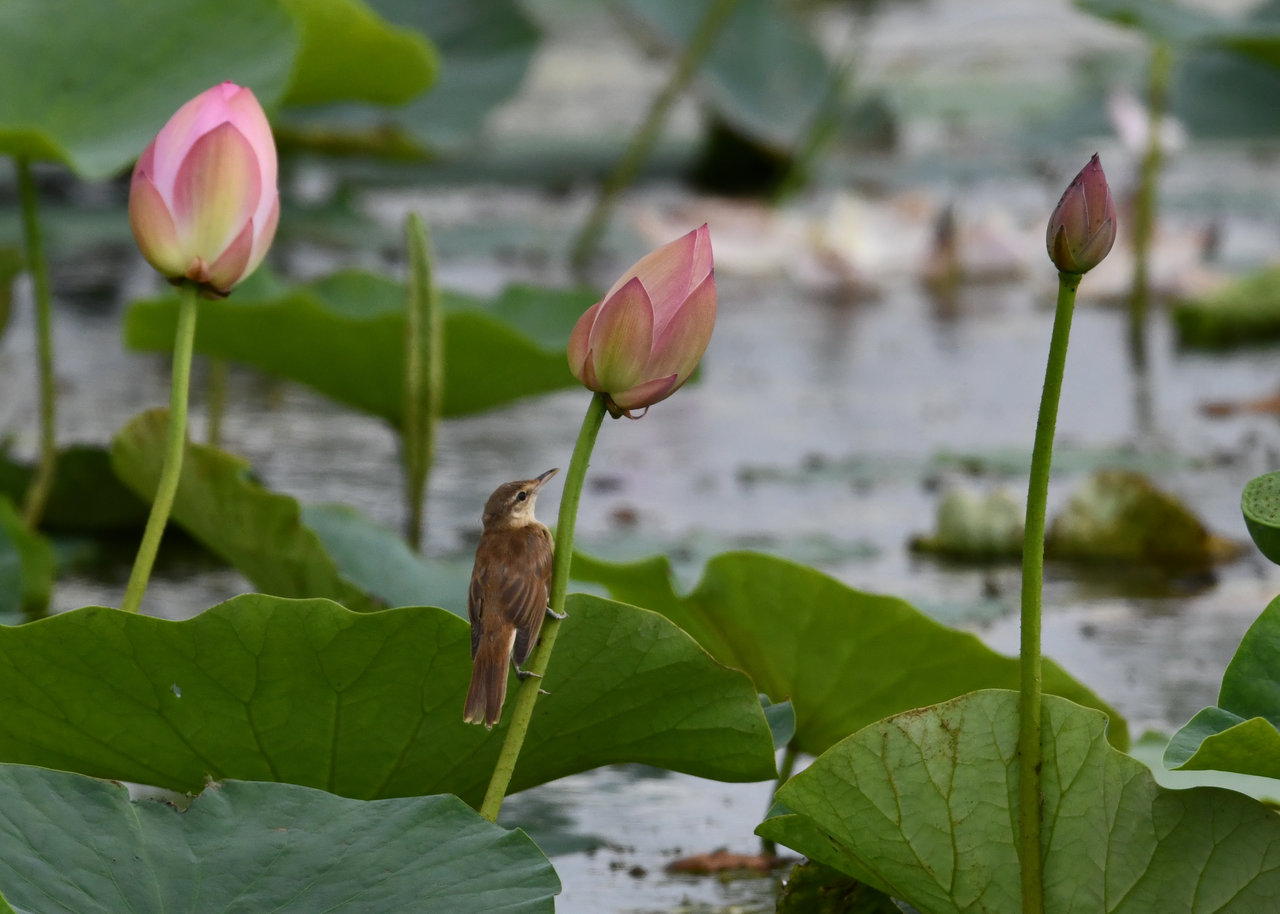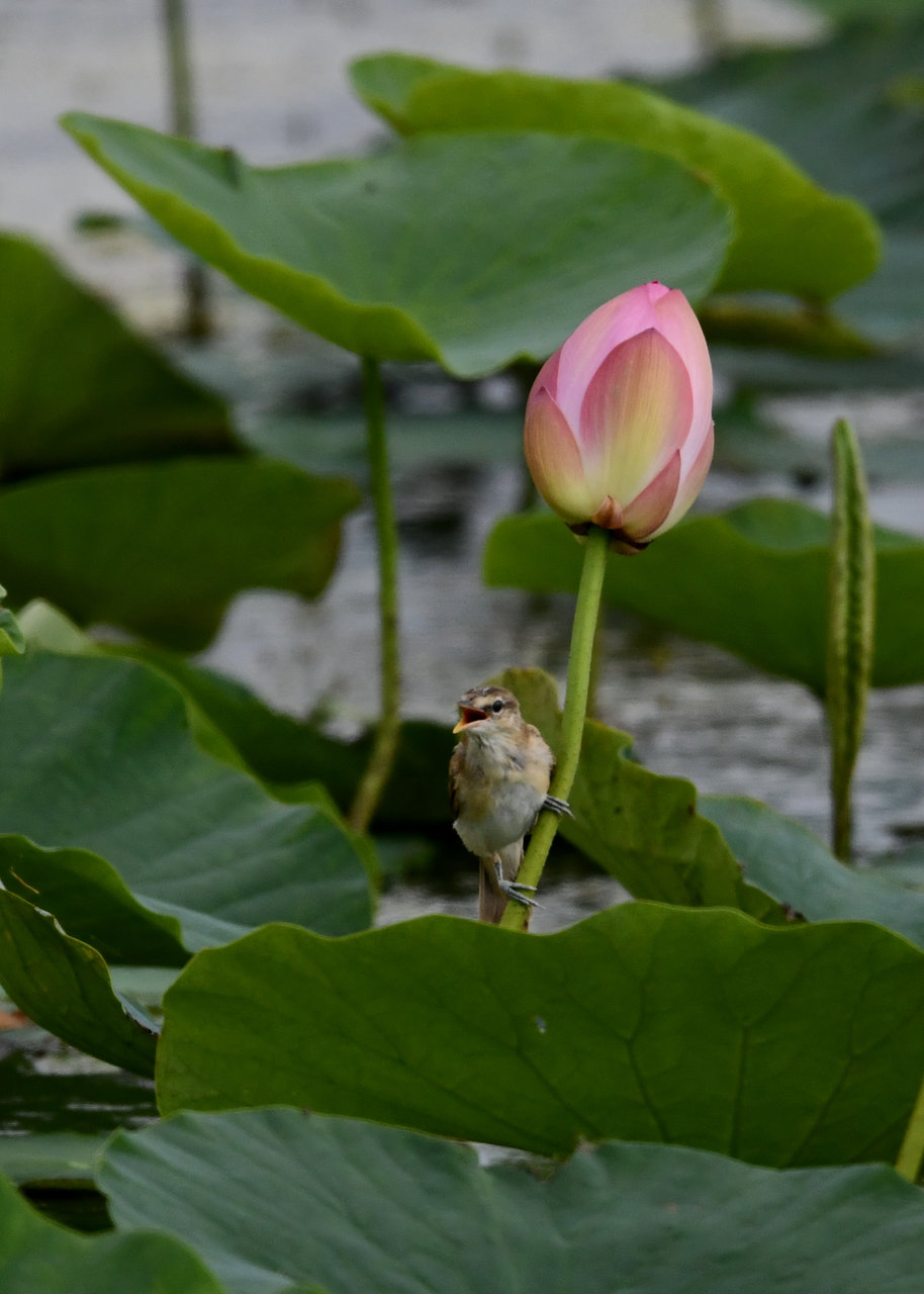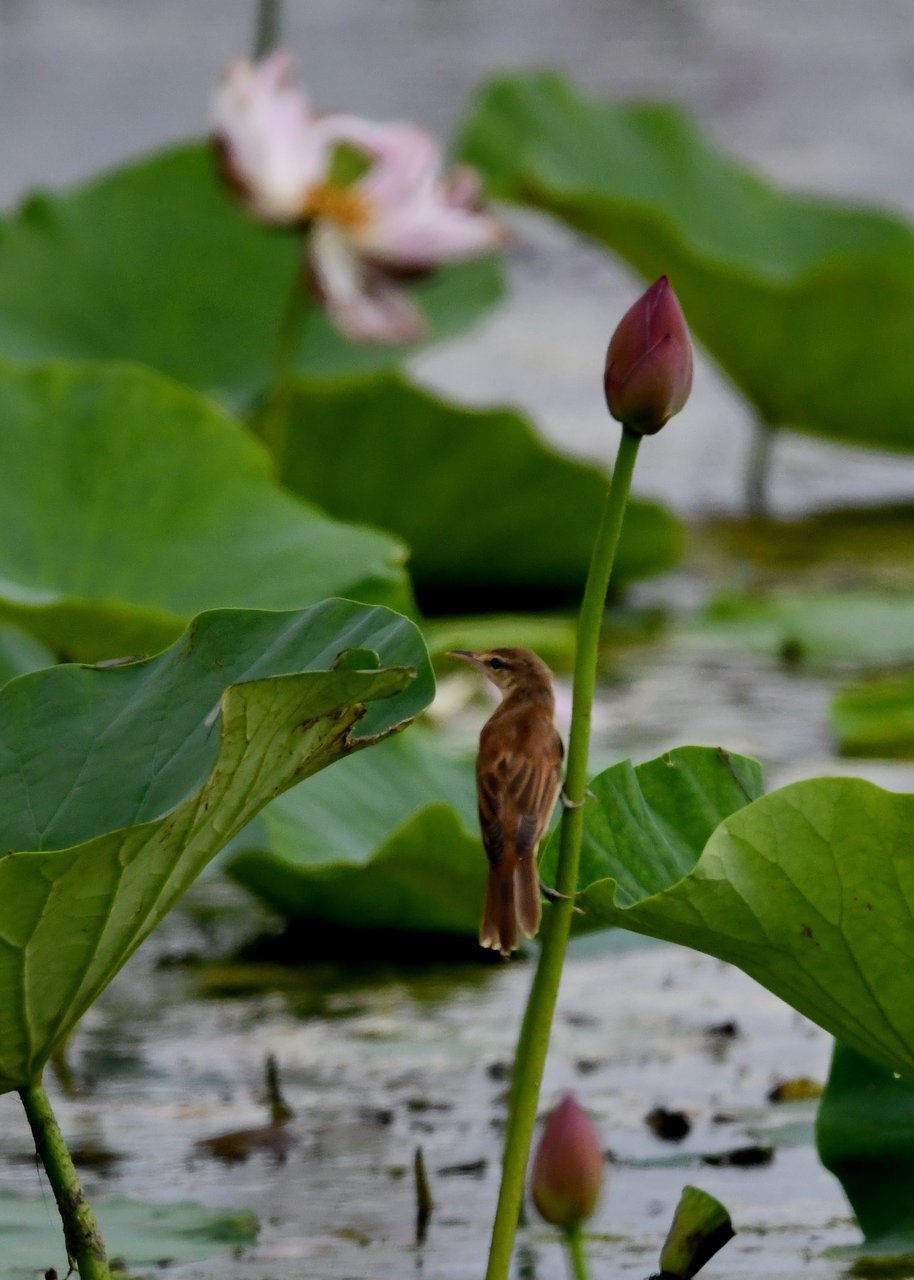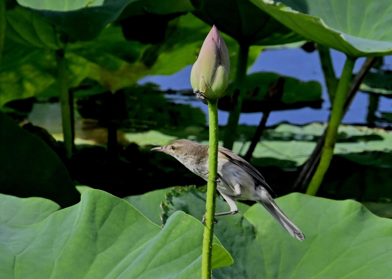 涼しい森林公園から炎天下の蓮池での画像が続きます。今日はオオヨシキリです。