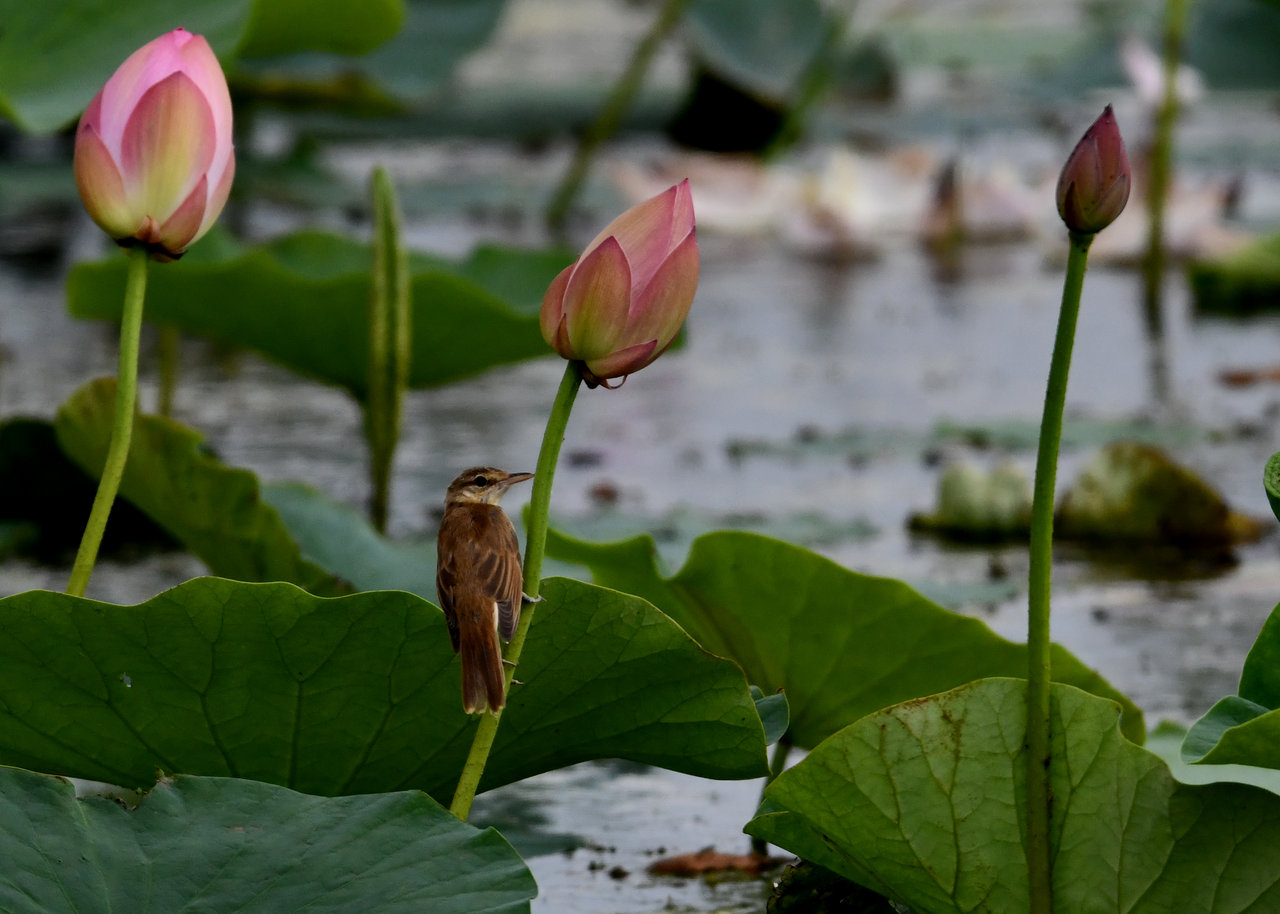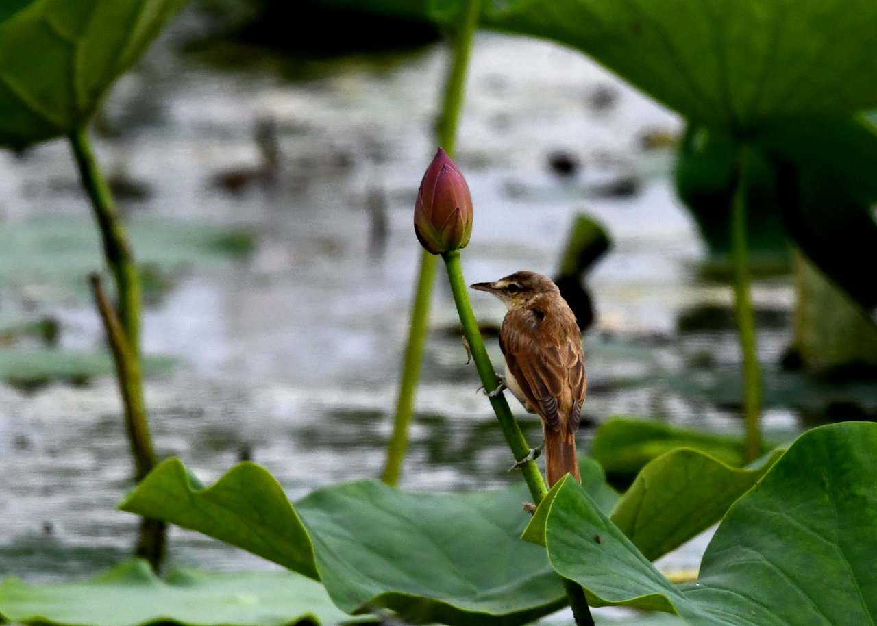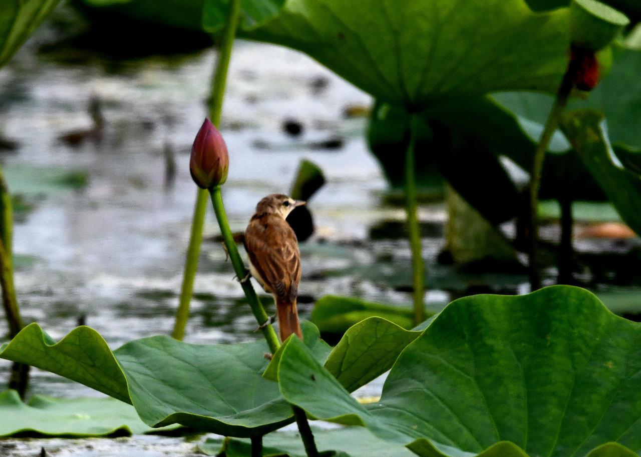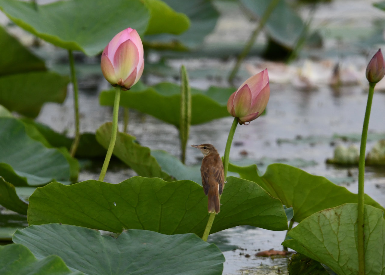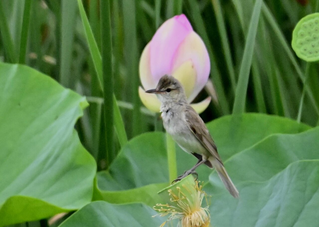 涼しい森林公園から炎天下の蓮池での画像が続きます。今日はオオヨシキリです。