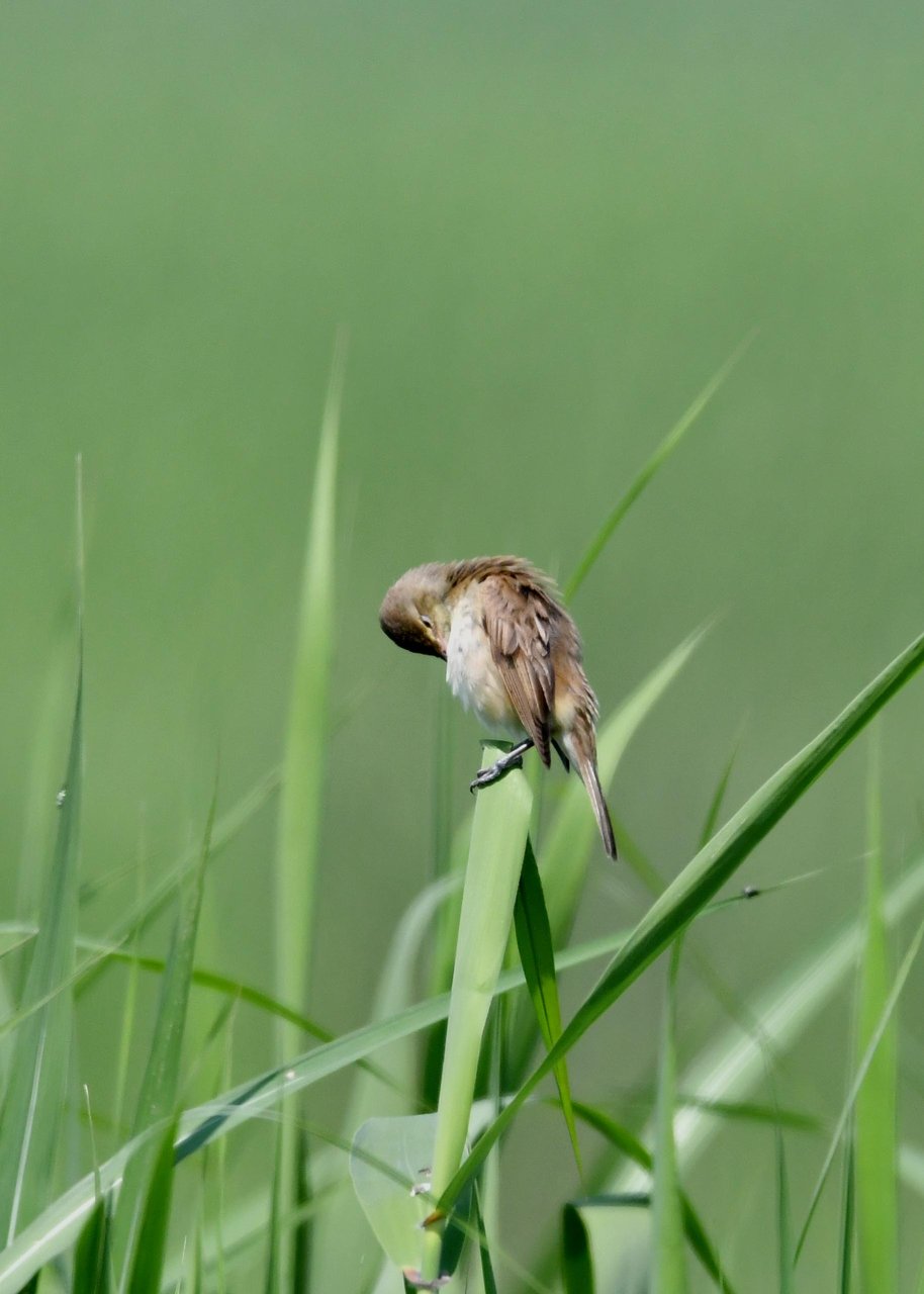 マダラチュウヒが出て来るのを待つ間、目的外の鳥(外道と言うとしかられるので、、、)オオヨシキリです。