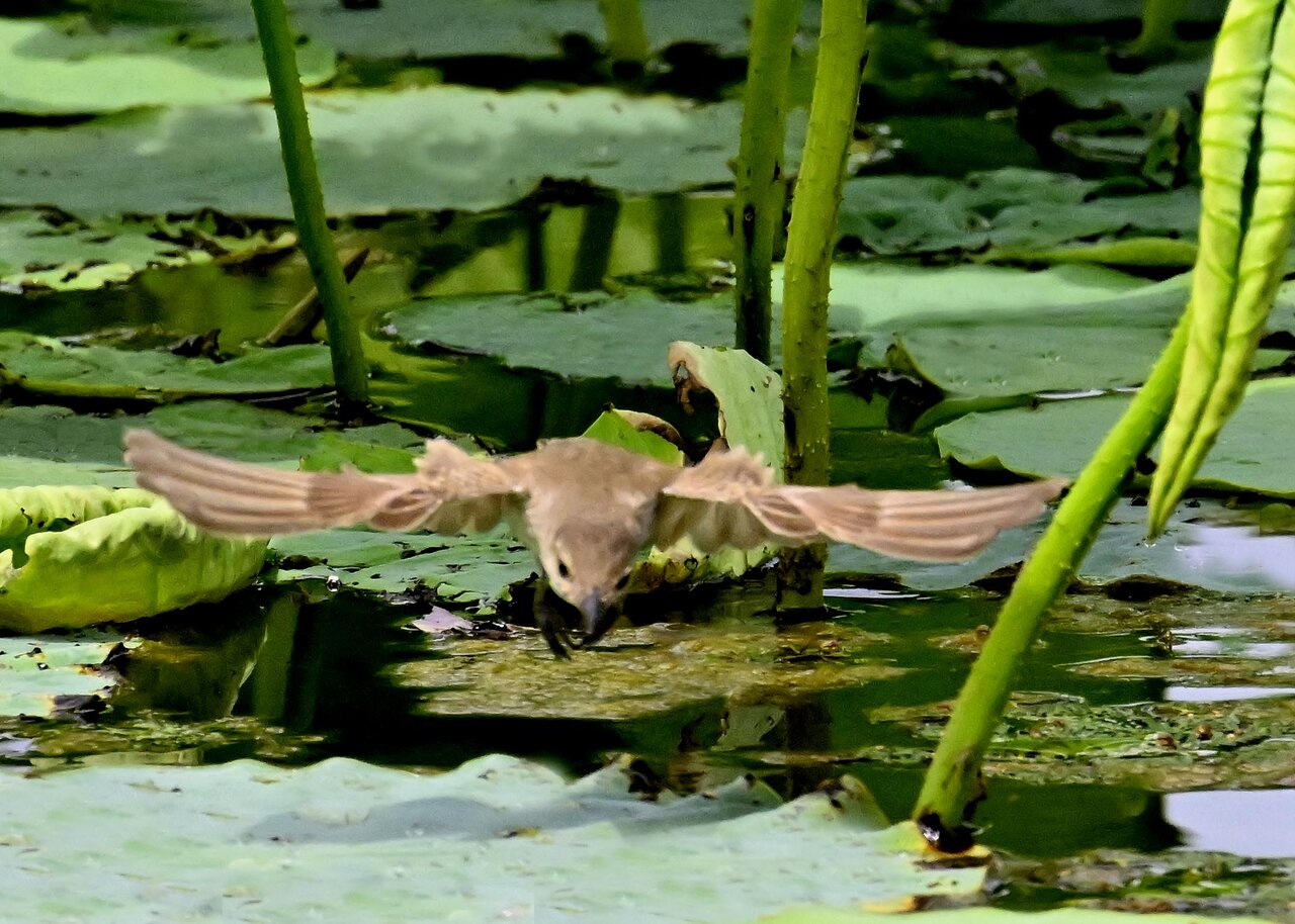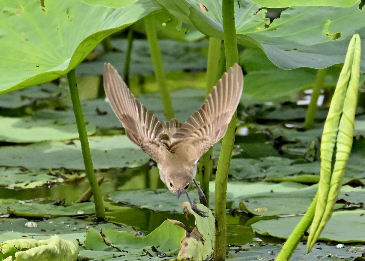 おりヒナが孵化しているのか頻繁に飛び出し蓮の花周辺で虫を捕っている様でした。