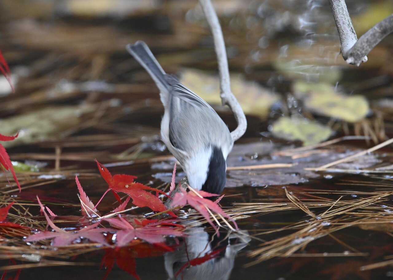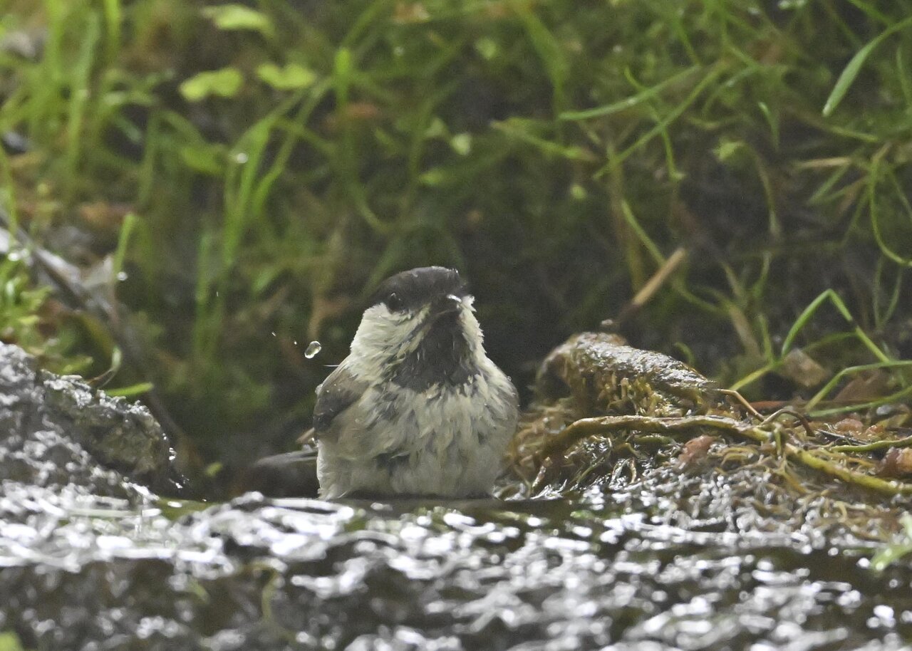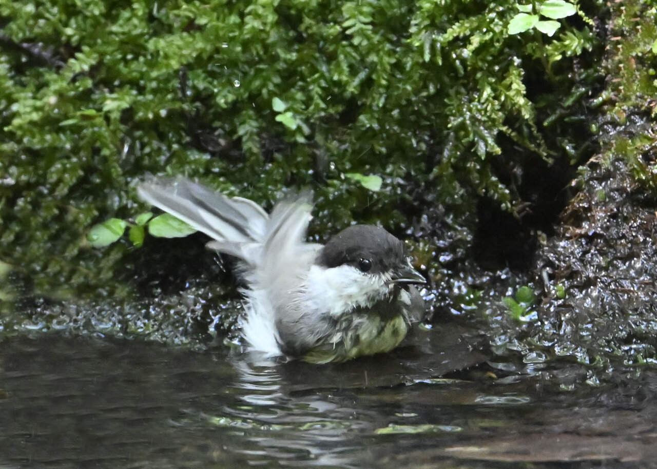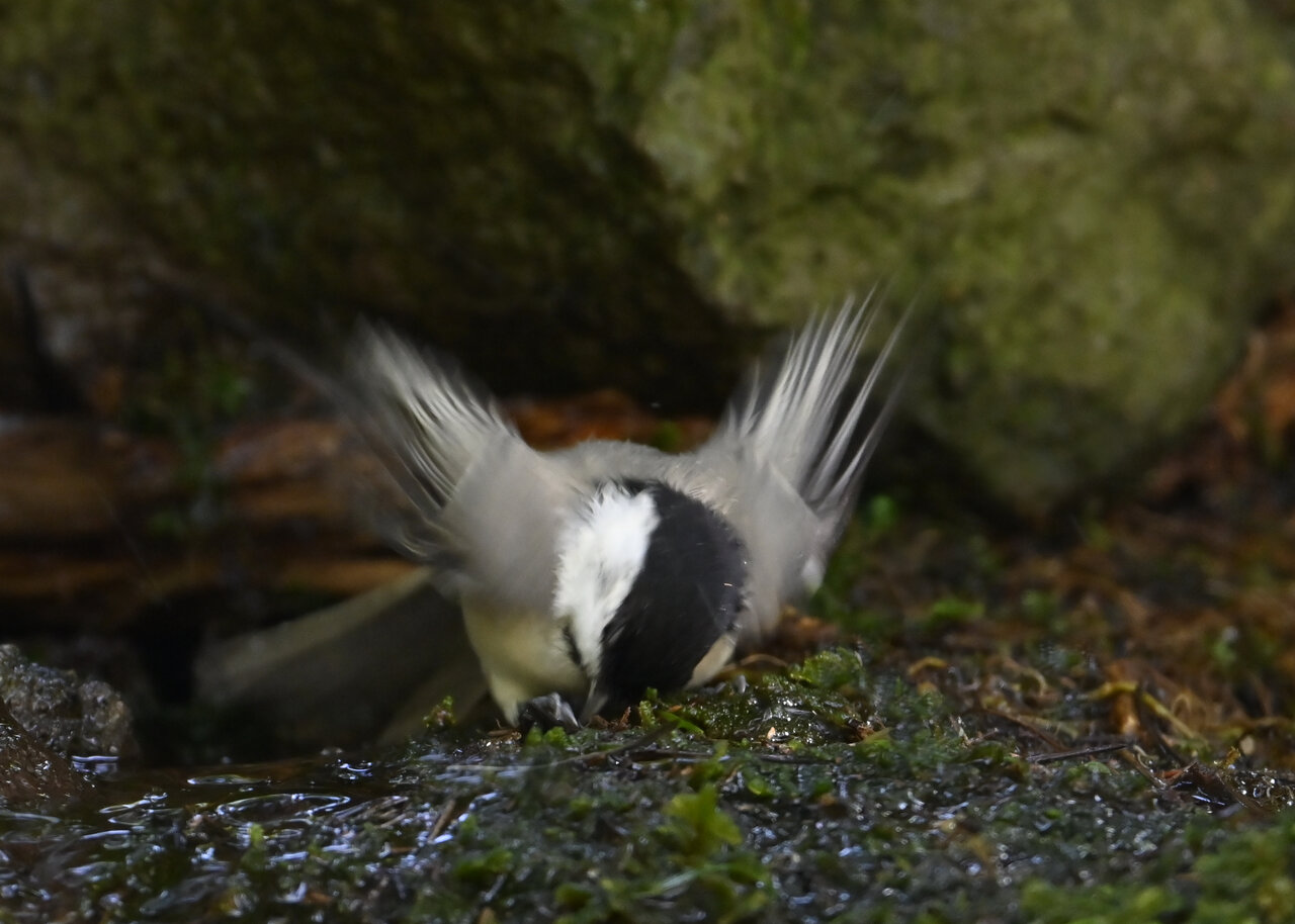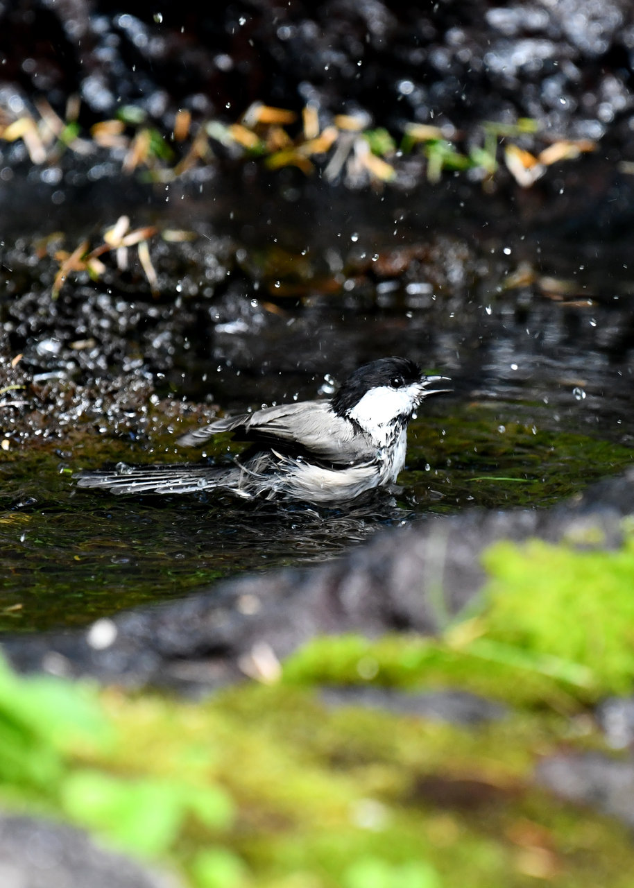 今日もノーマルな野鳥で申し訳ありません。コガラの水浴びです。