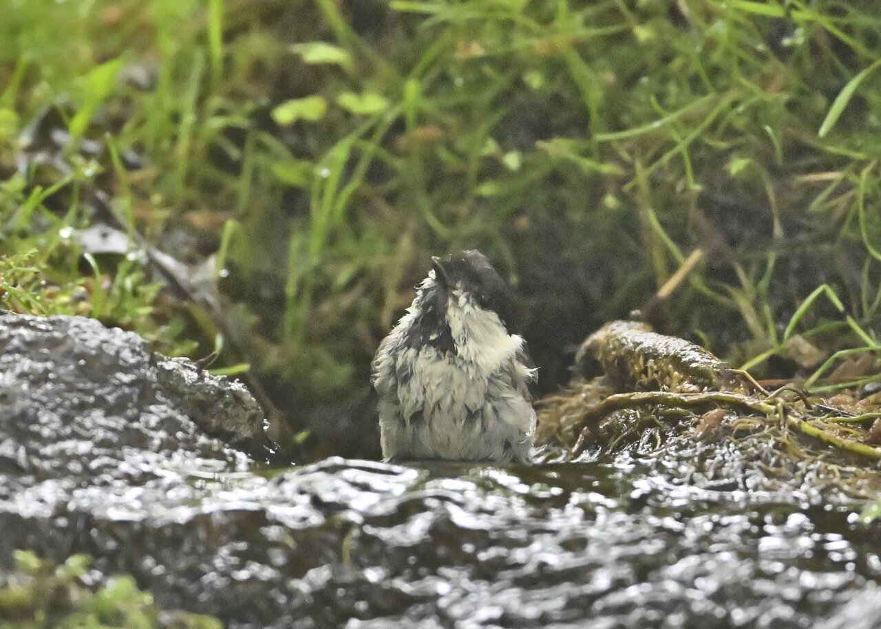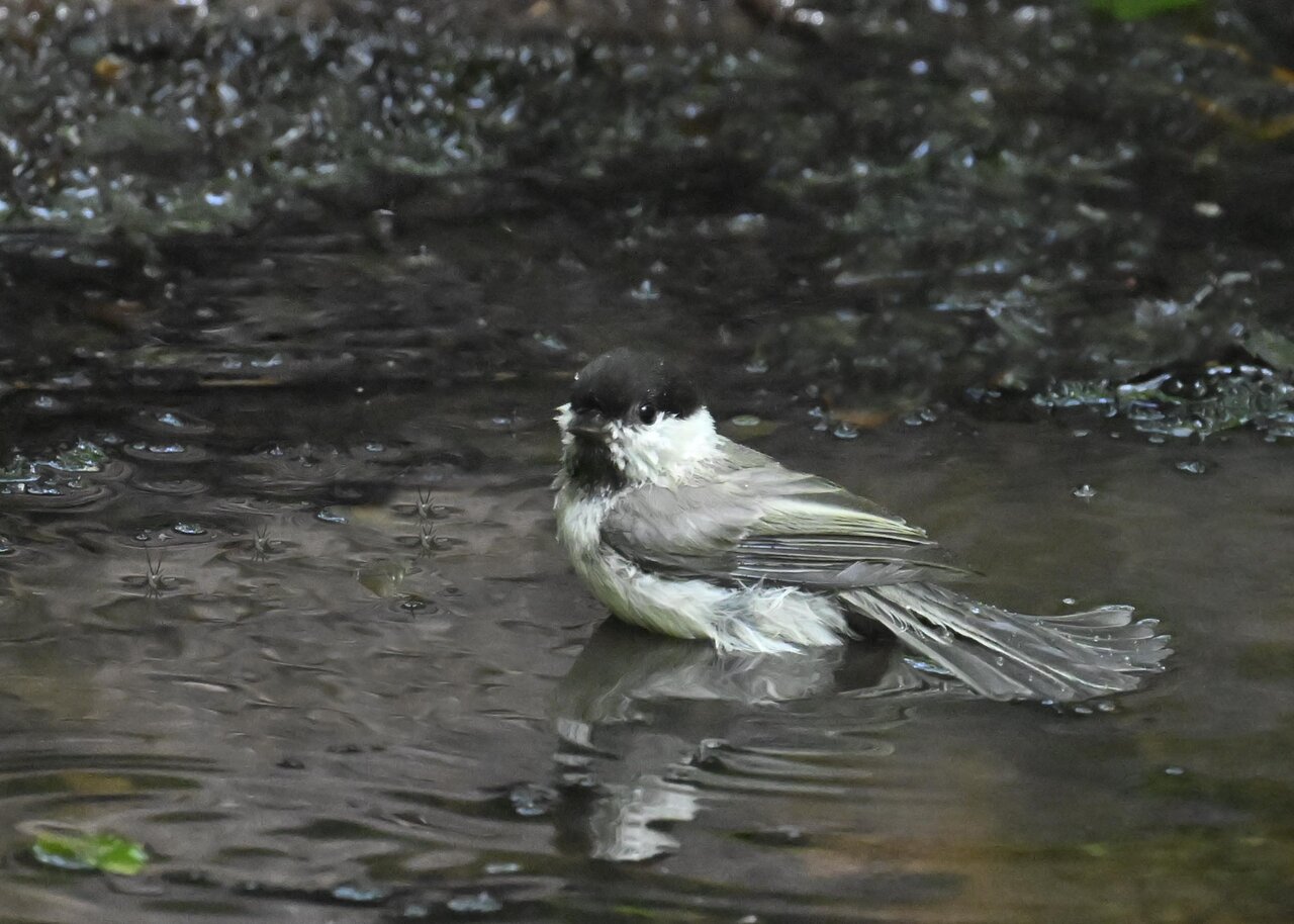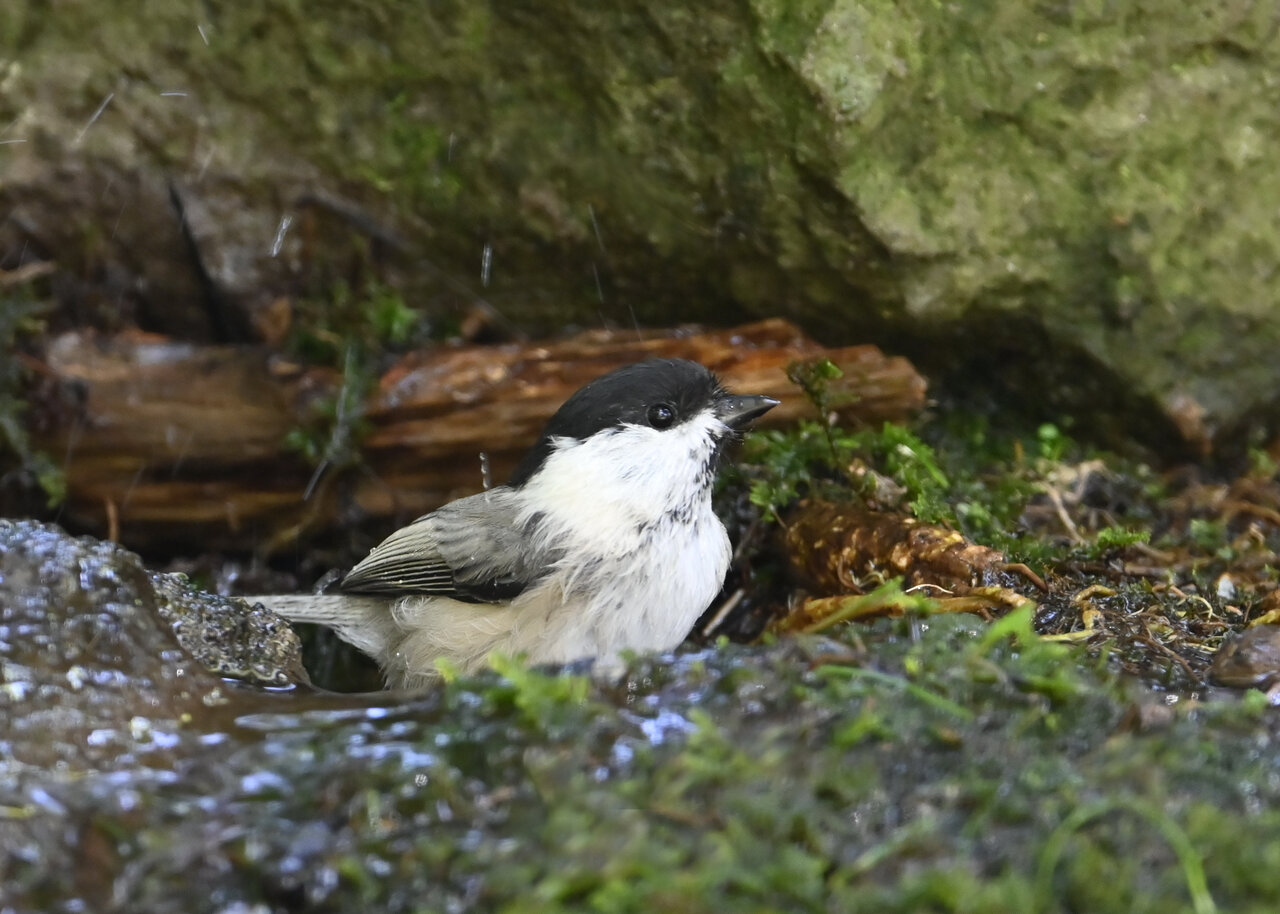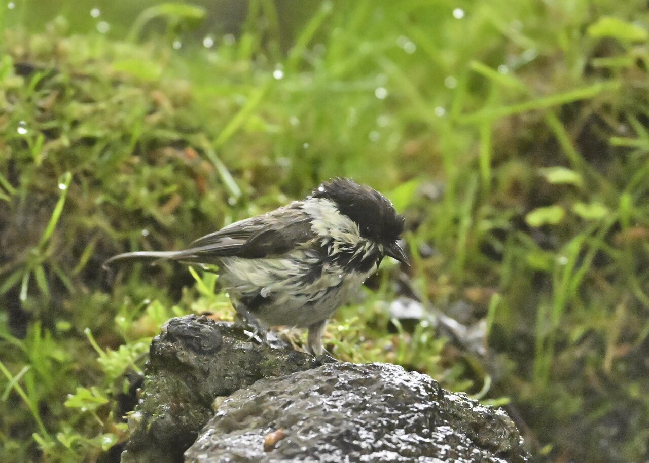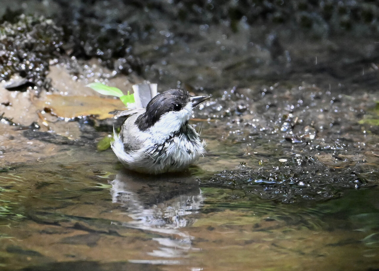 ノーマルなのがコガラの水浴びシーンです。雨でずぶ濡れなのに水浴びにやって来ました。