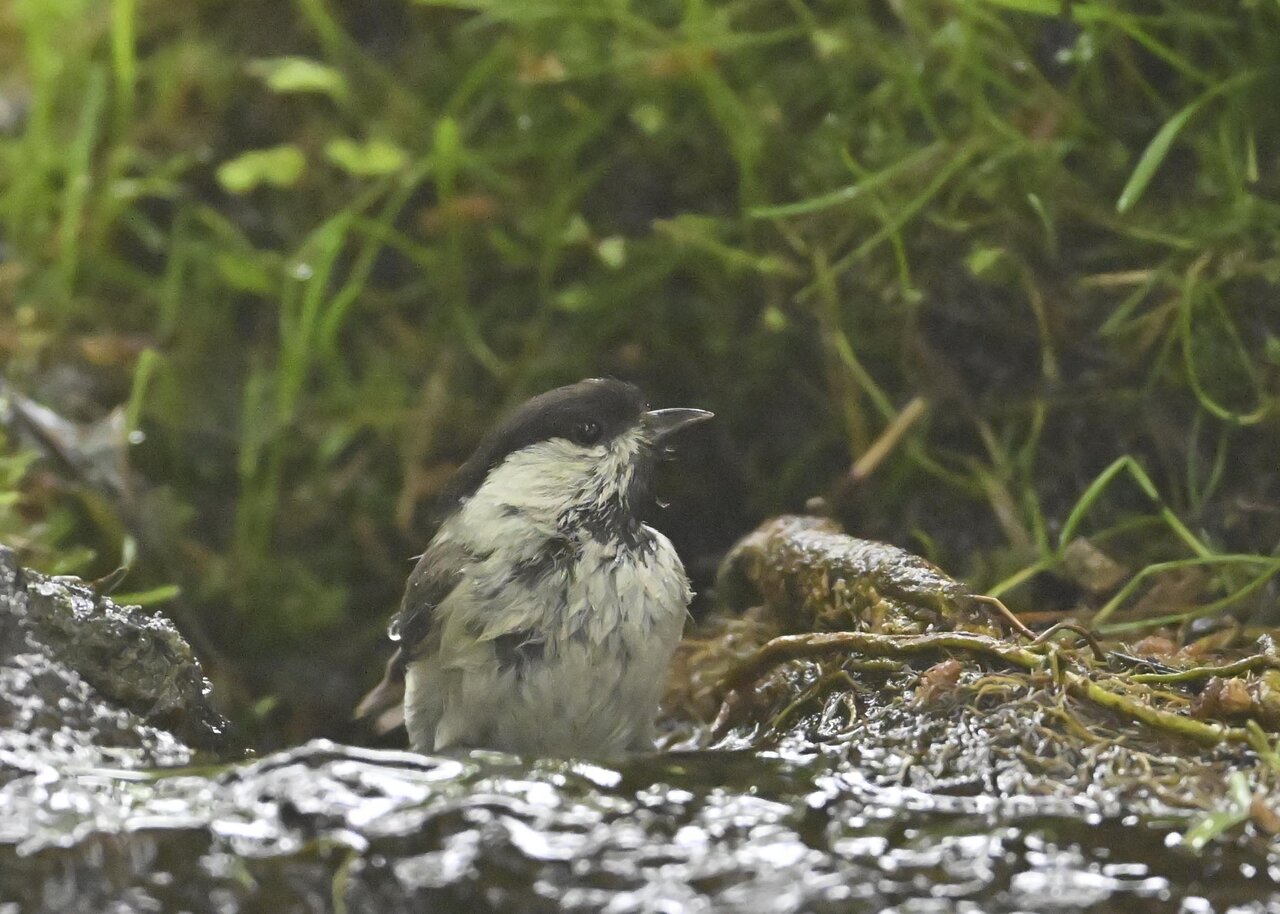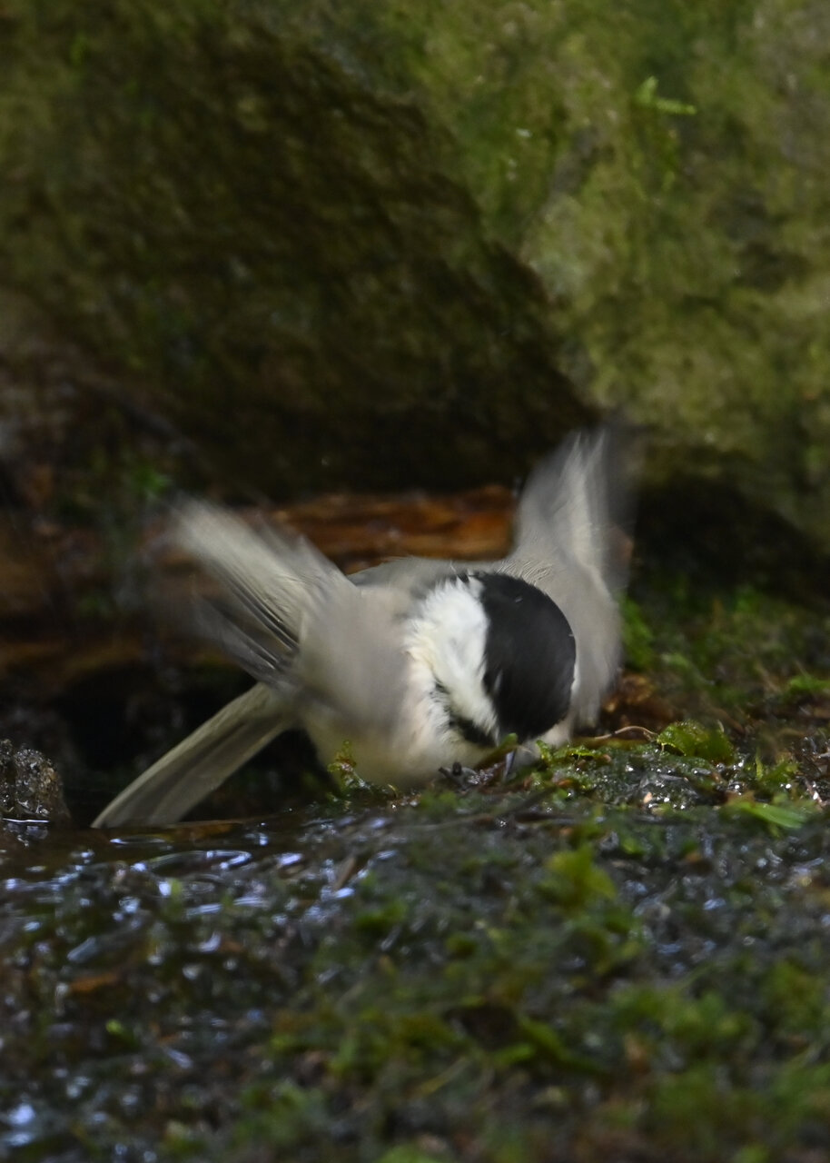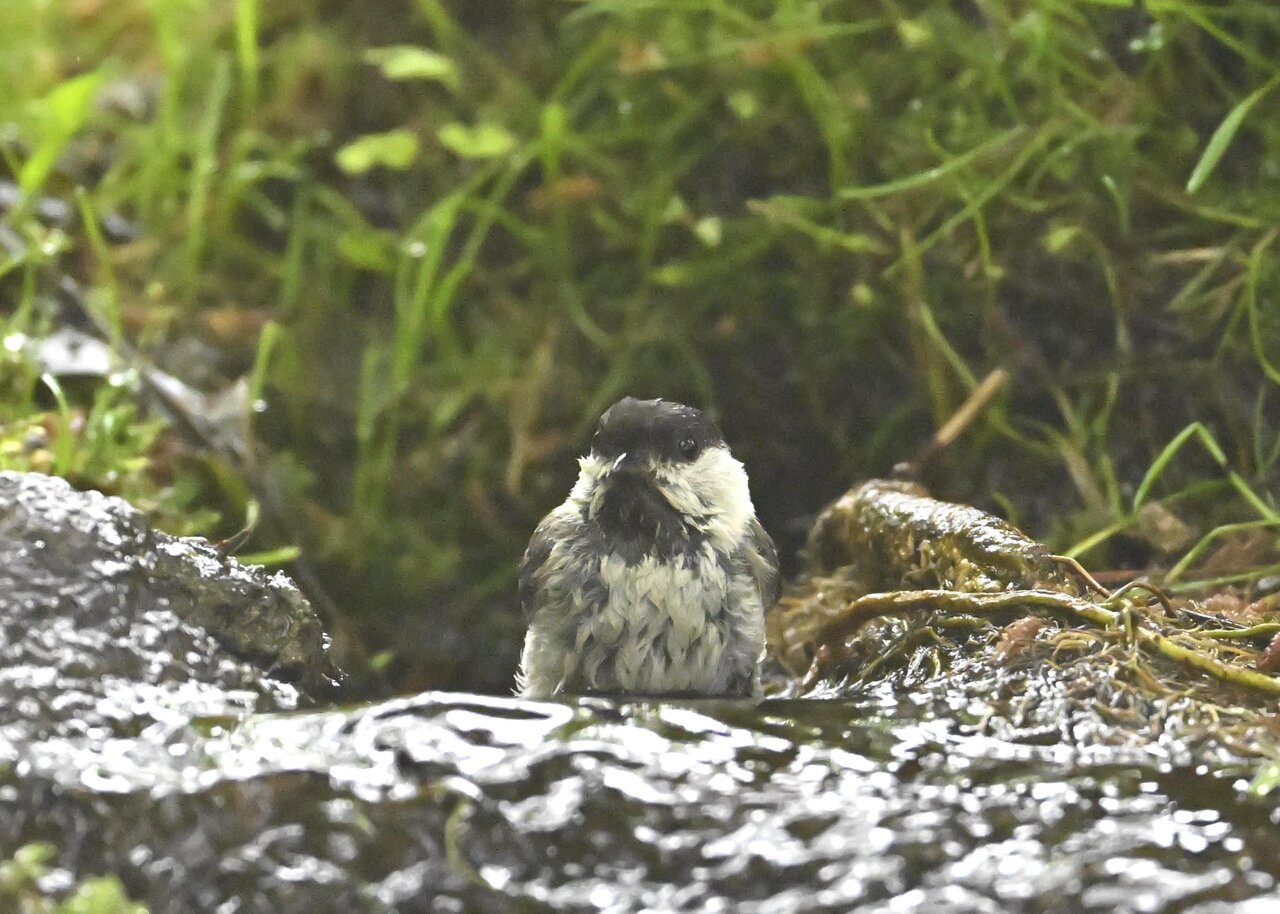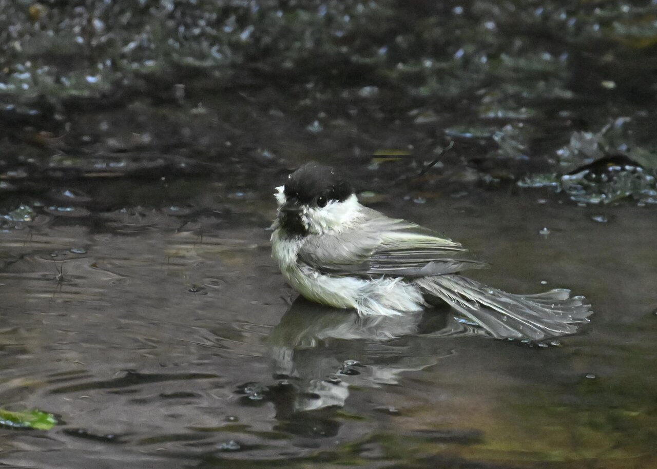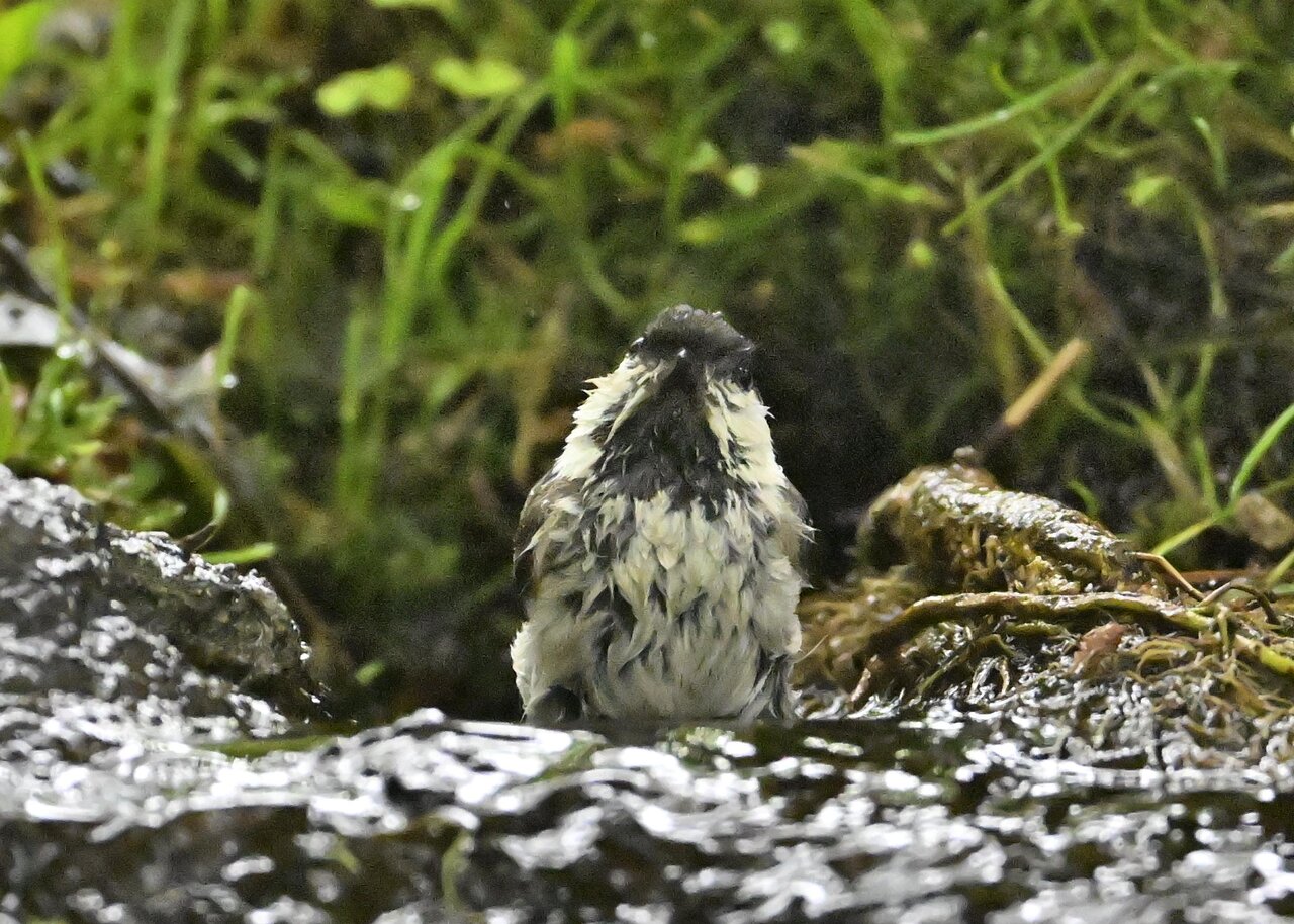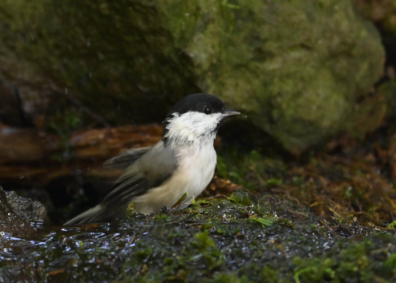 ノーマルなのがコガラの水浴びシーンです。雨でずぶ濡れなのに水浴びにやって来ました。