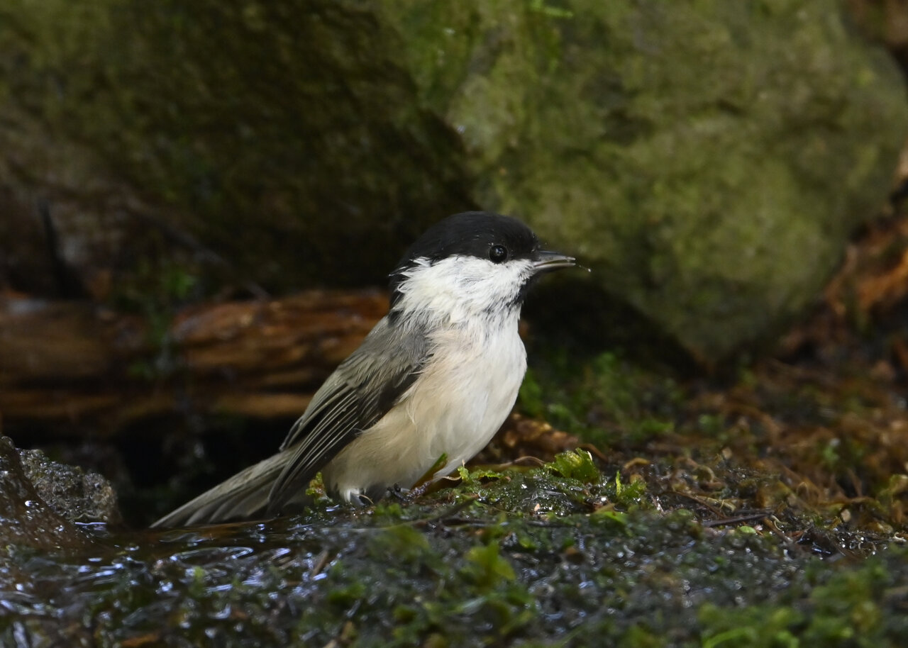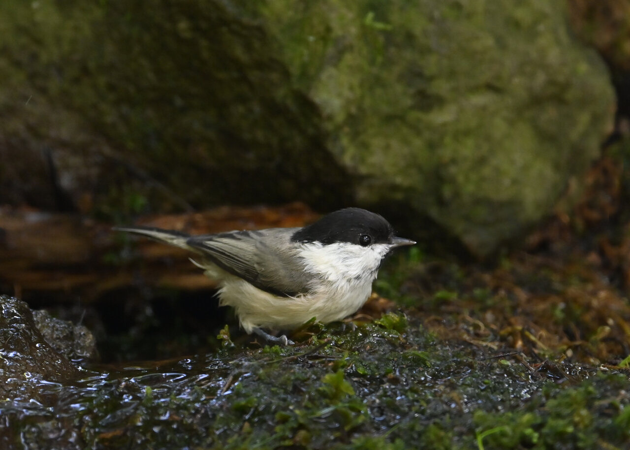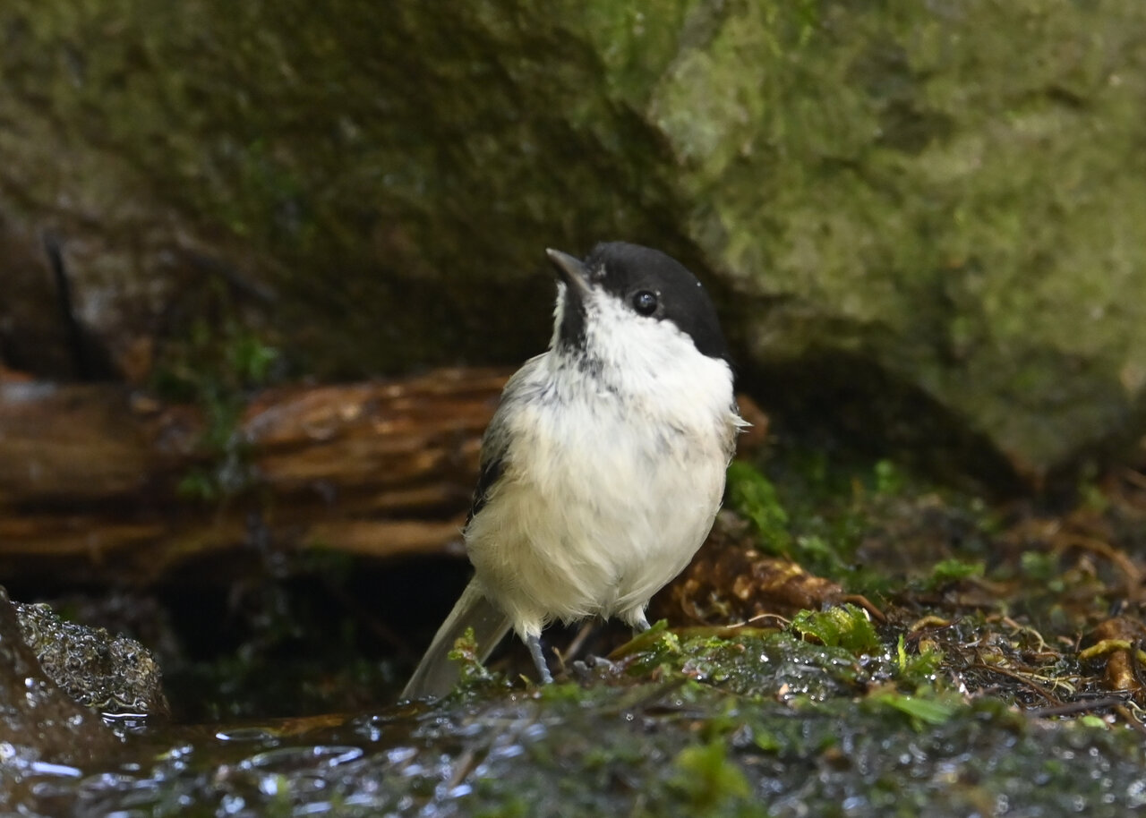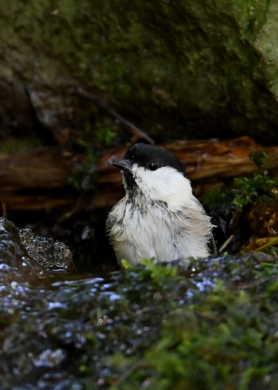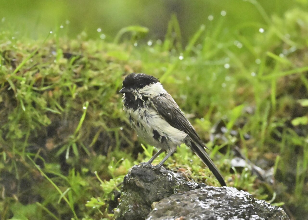 ノーマルなのがコガラの水浴びシーンです。雨でずぶ濡れなのに水浴びにやって来ました。