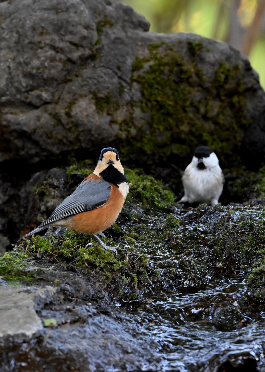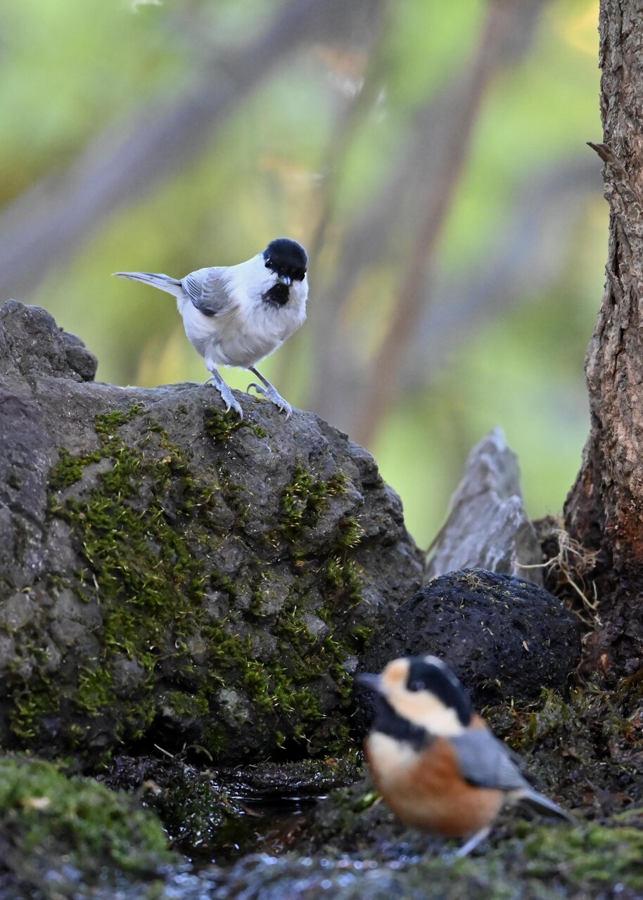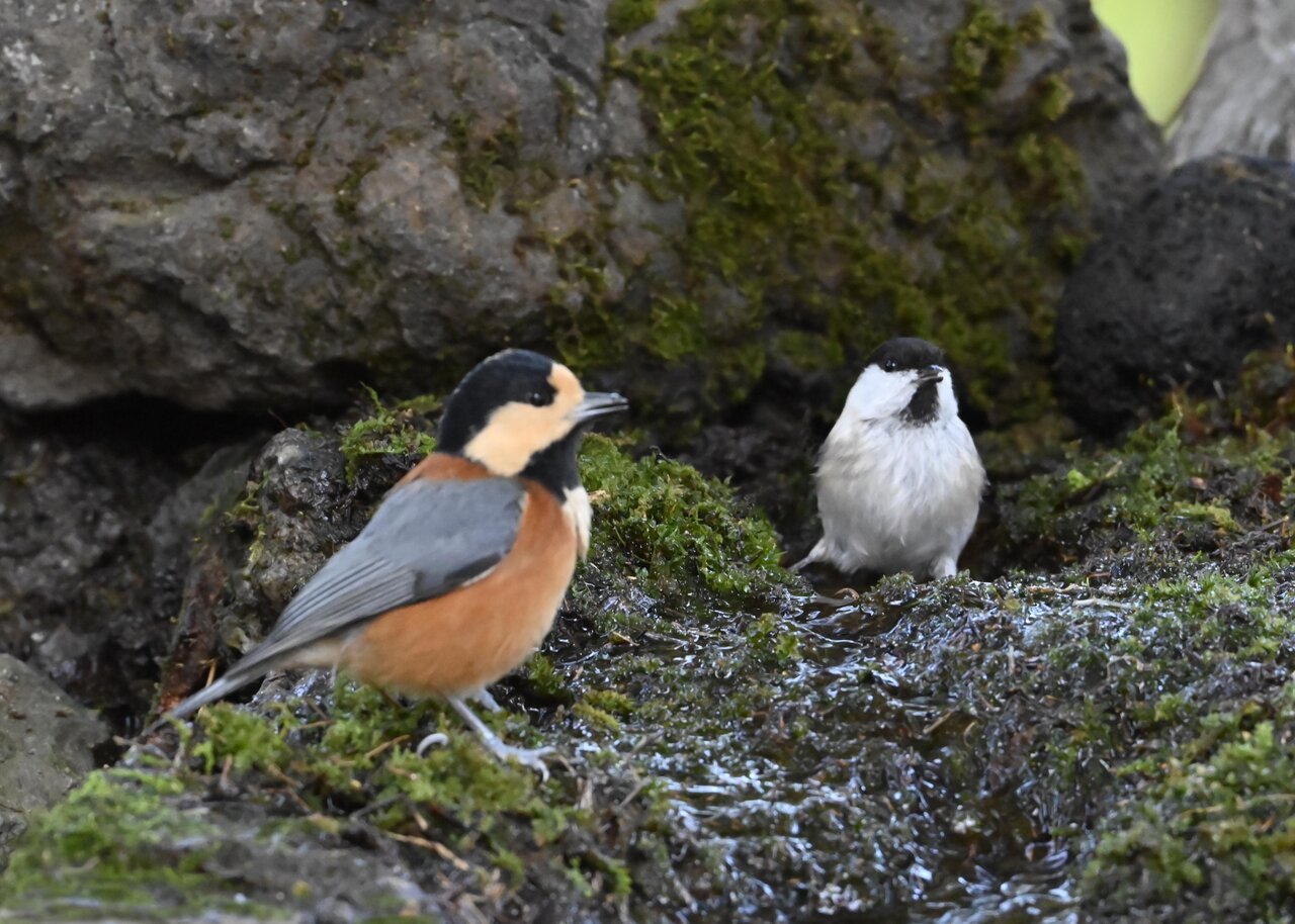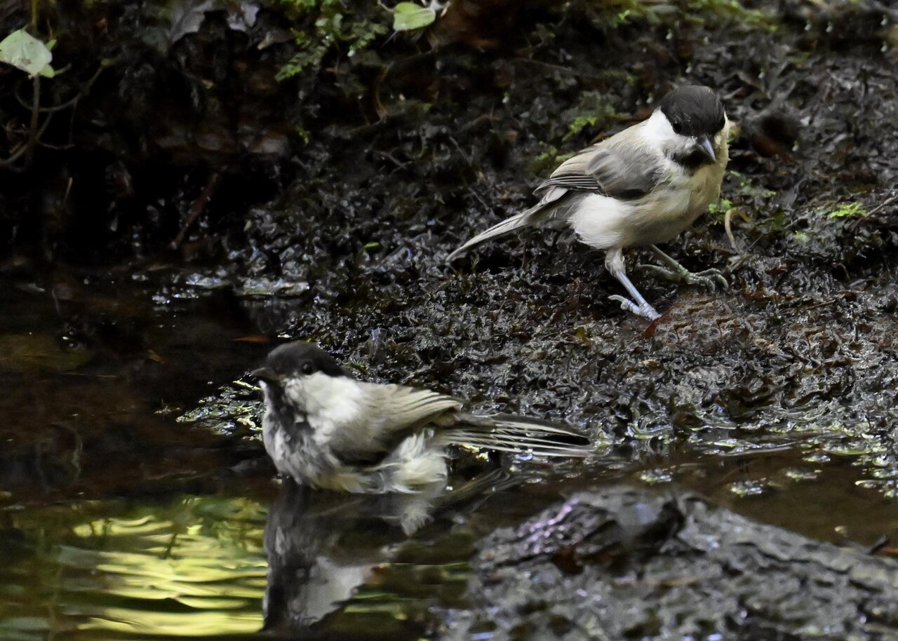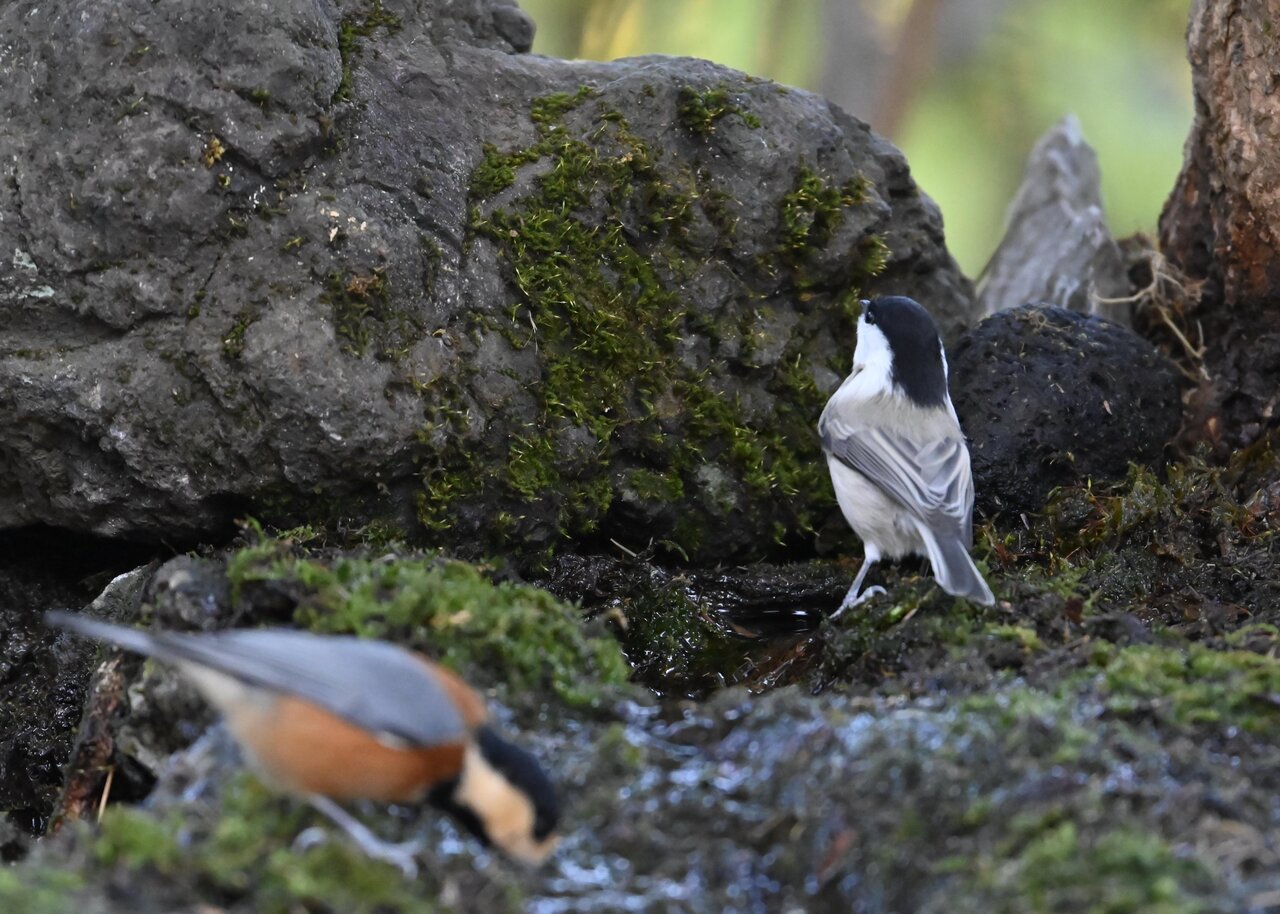 たびたび登場の、水場にやってくる小鳥を掲載しています。 今日は、コガラとヤマガラが