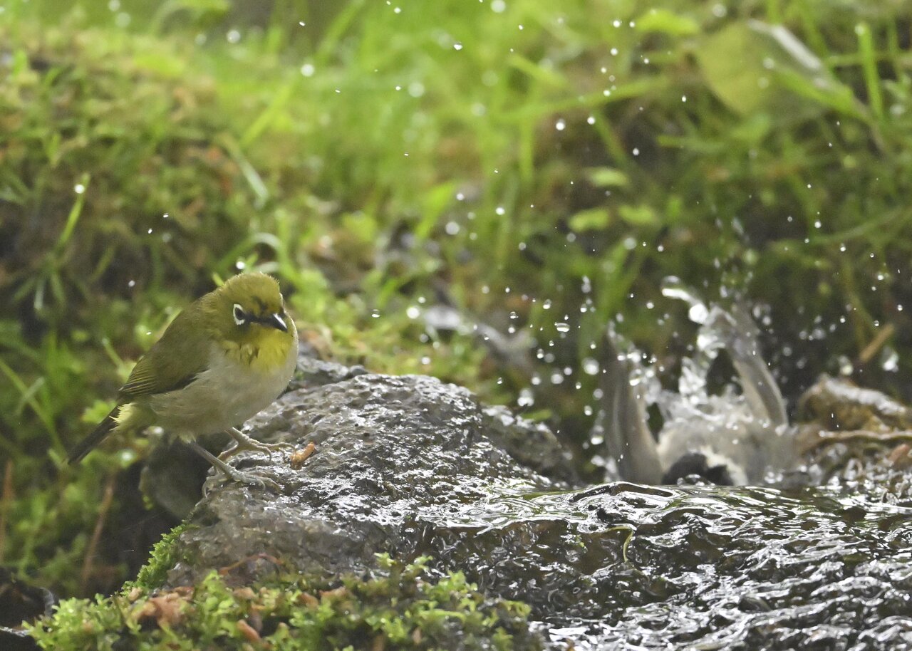 仲良く水浴びにやって来たシーンです。ノーマルな小鳥ですが可愛いので、、、、、