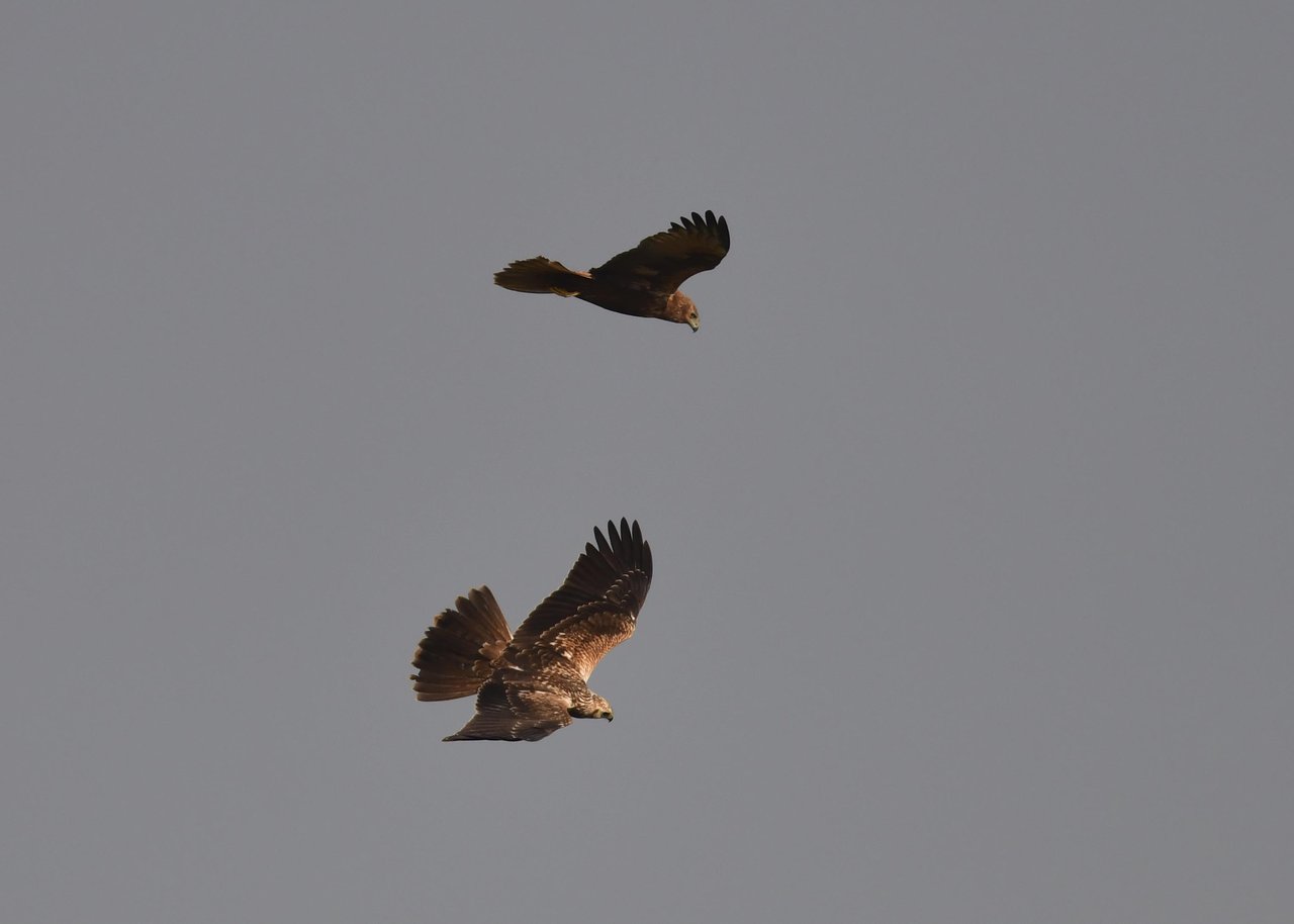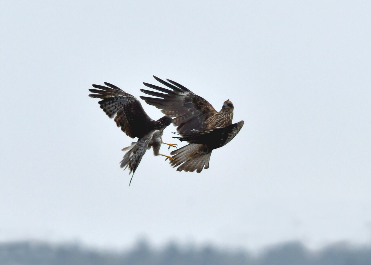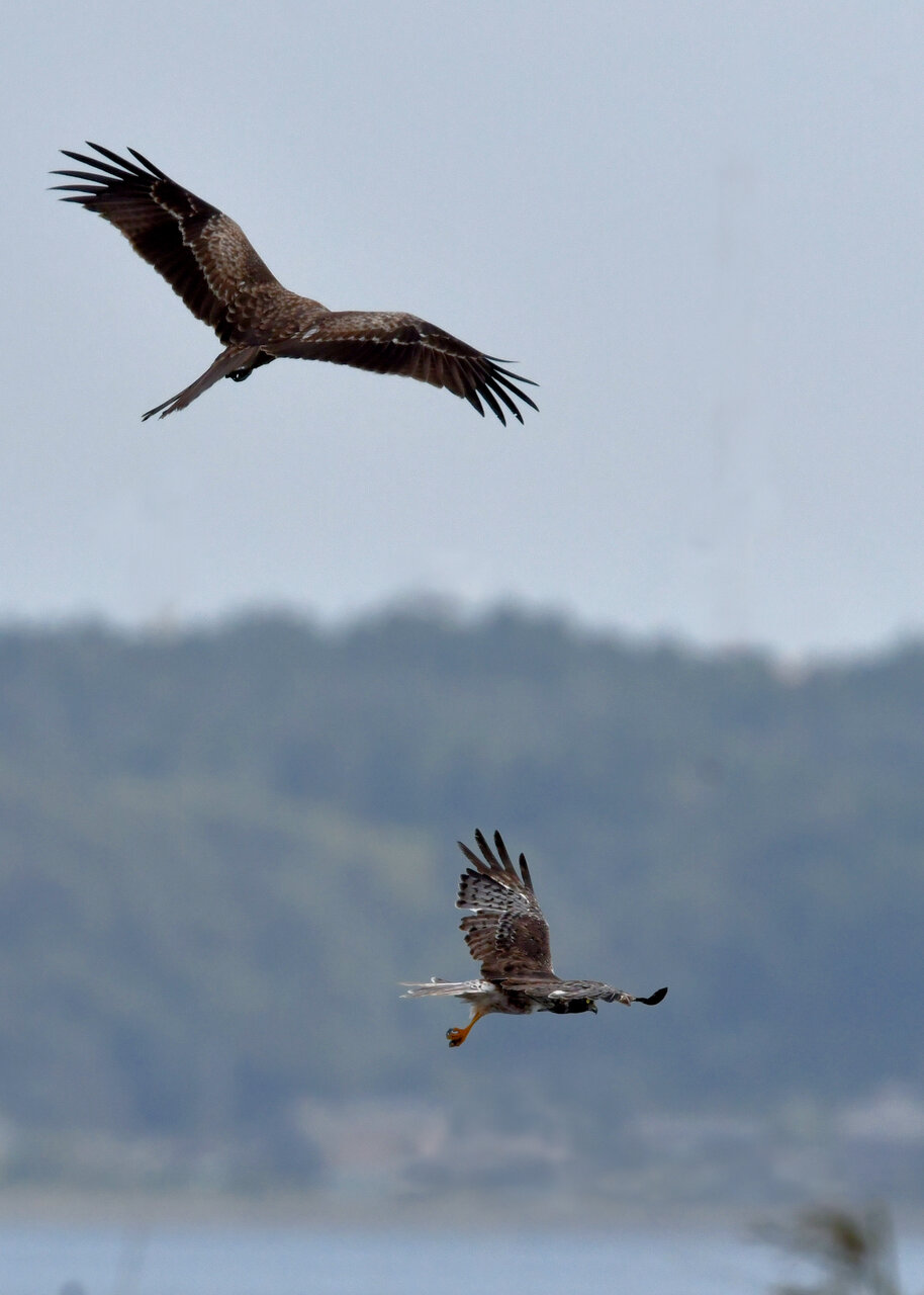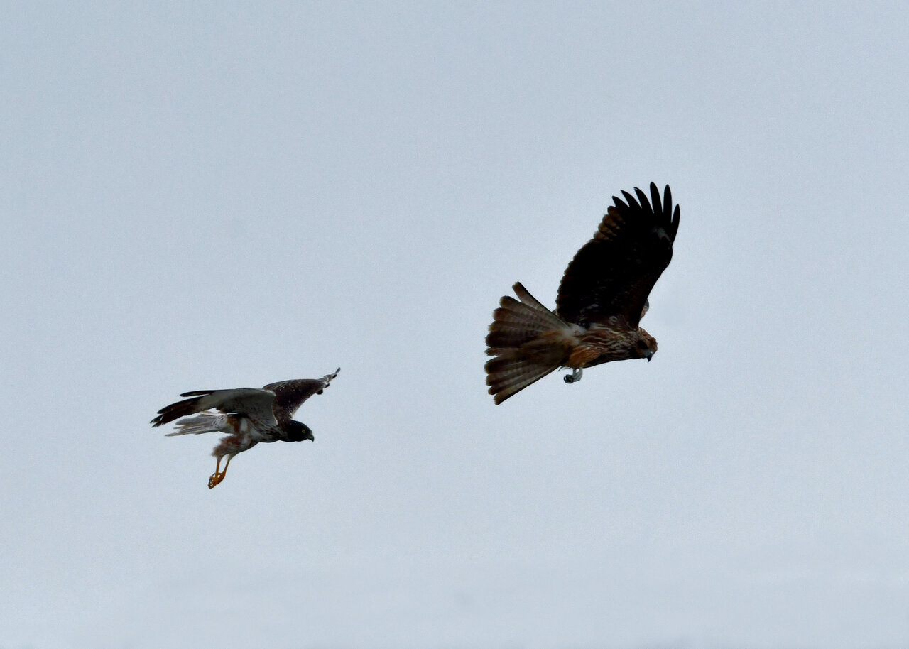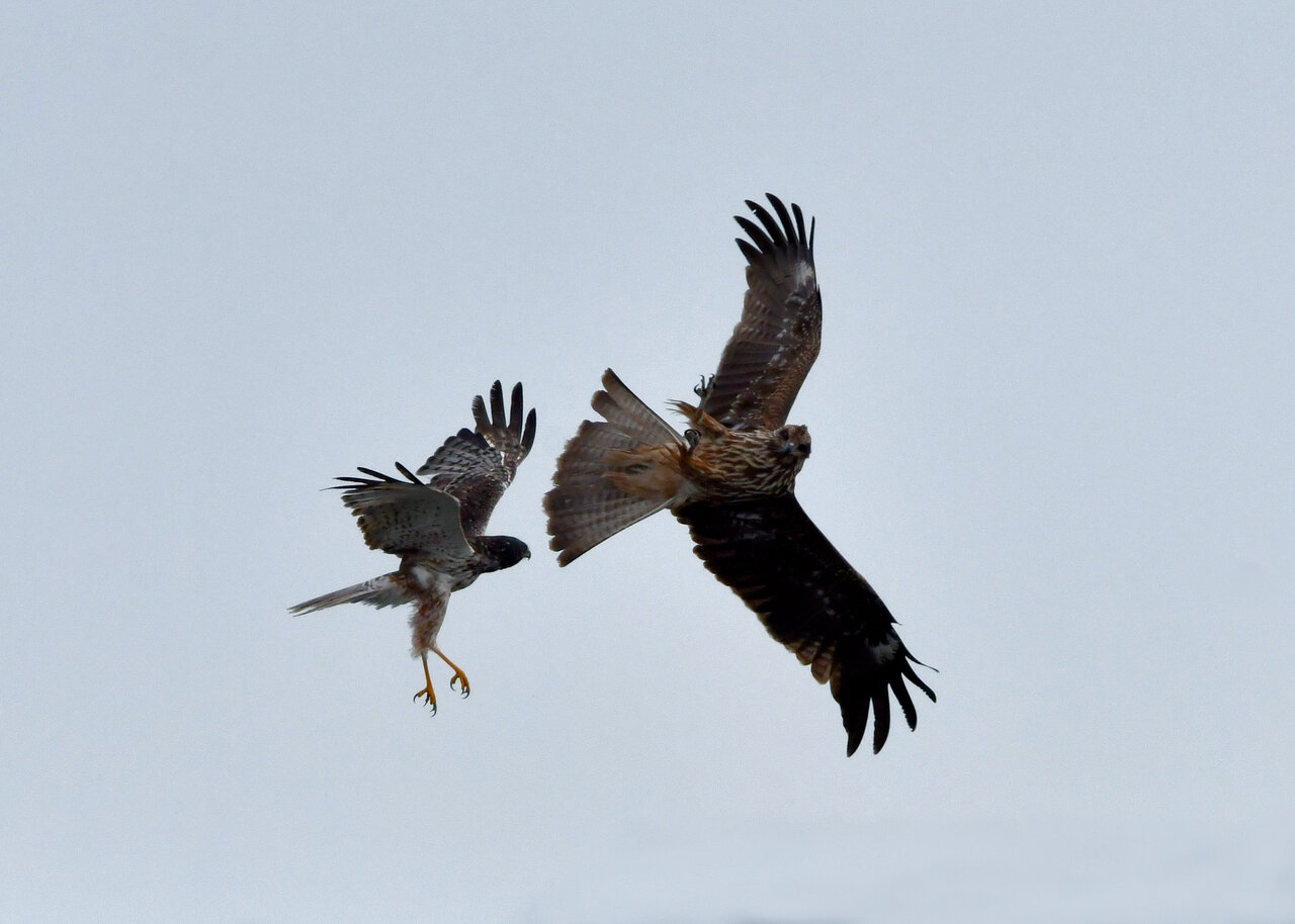 昨日の続き、大陸型チュウヒ(愛称:ズグロチュウヒ)です。 此処はトビの縄張りなのかバトルを始めました。