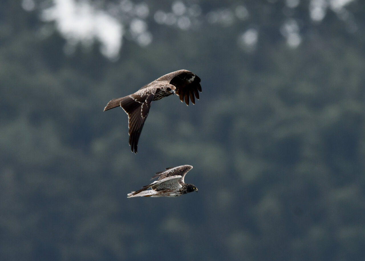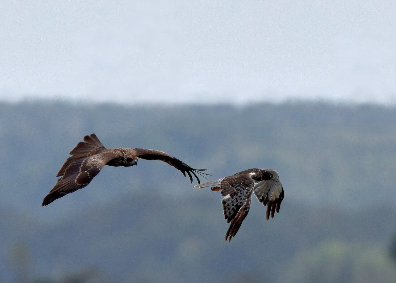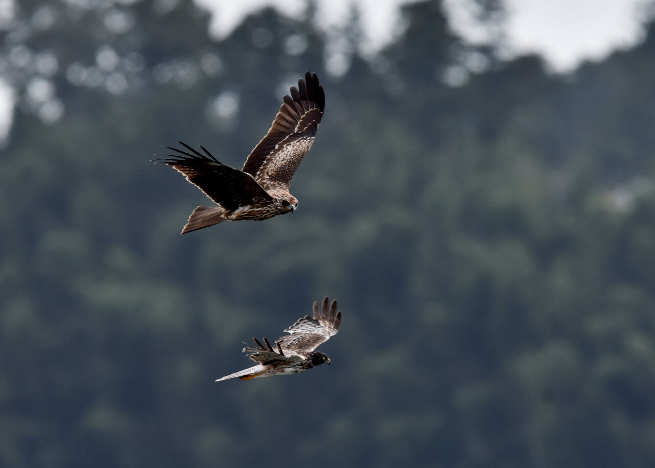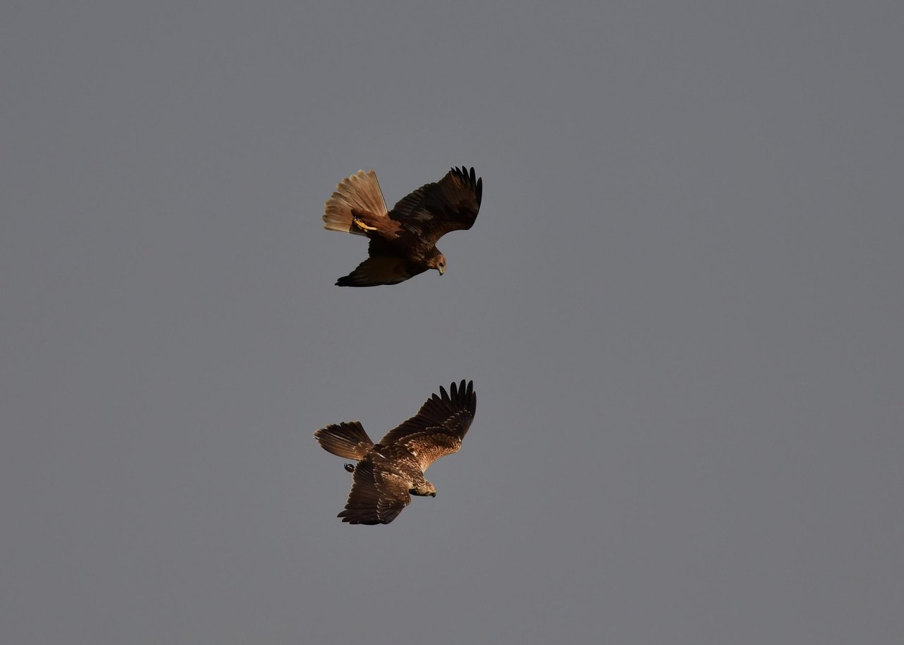 昨日の続き、大陸型チュウヒ(愛称:ズグロチュウヒ)です。 此処はトビの縄張りなのかバトルを始めました。