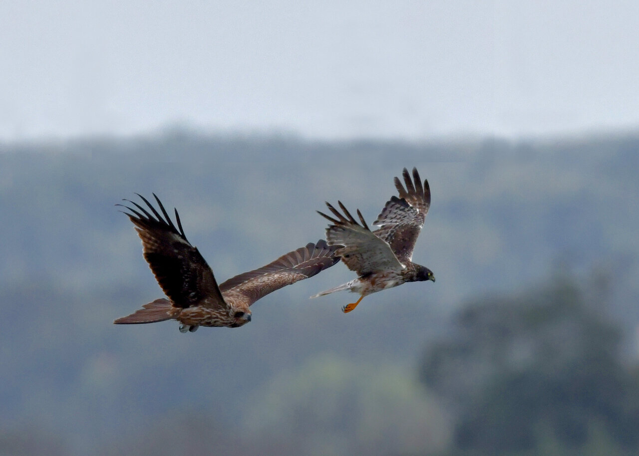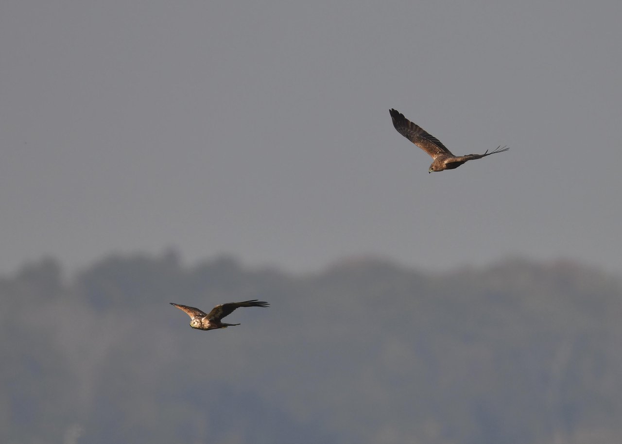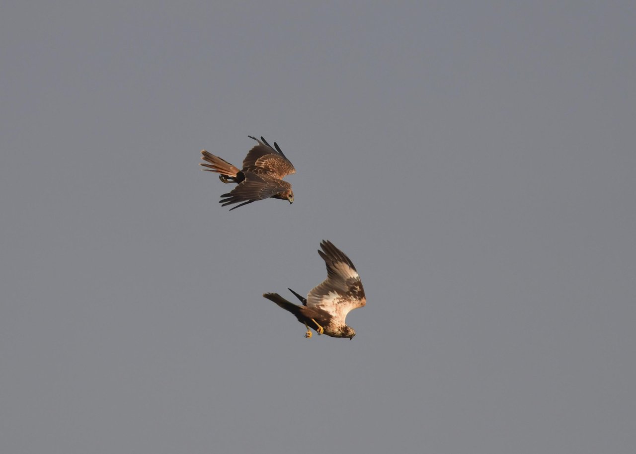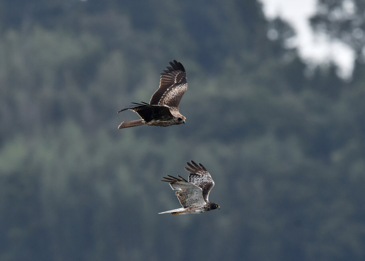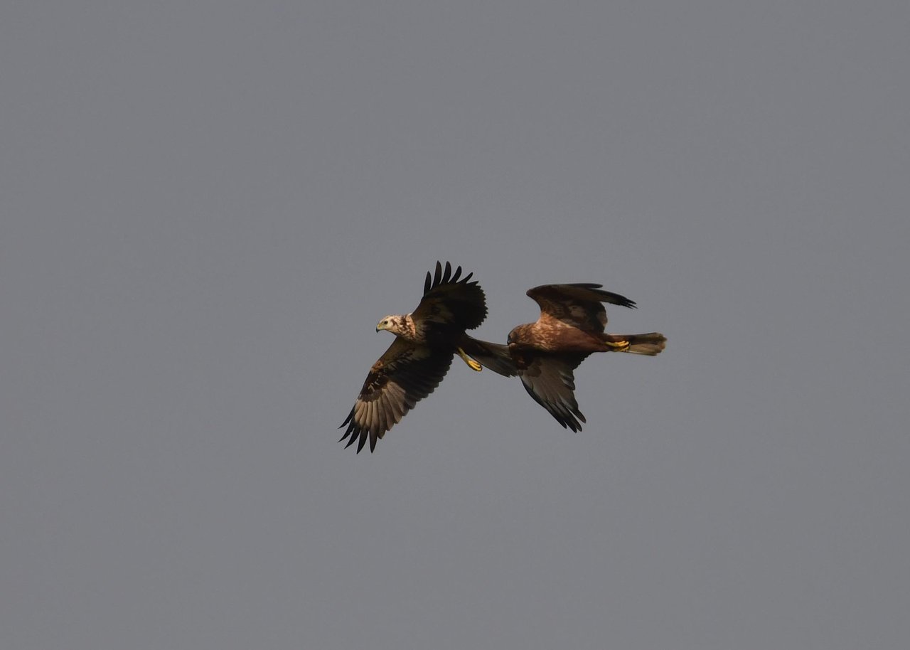 昨日の続き、大陸型チュウヒ(愛称:ズグロチュウヒ)です。 此処はトビの縄張りなのかバトルを始めました。