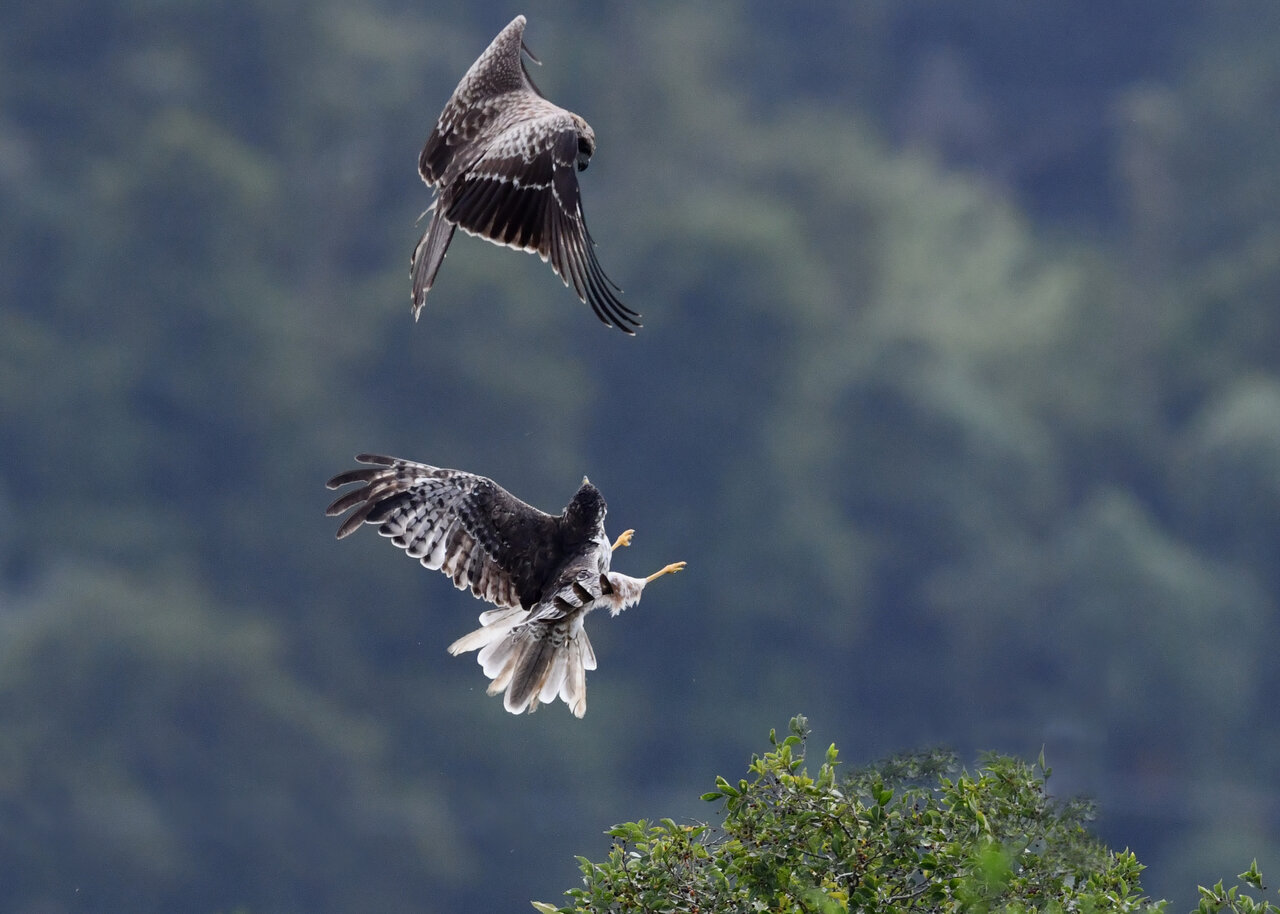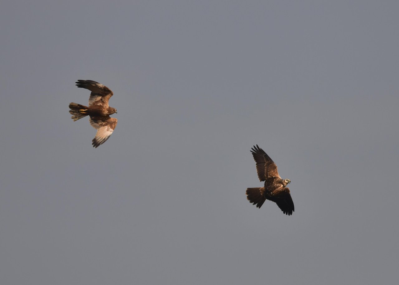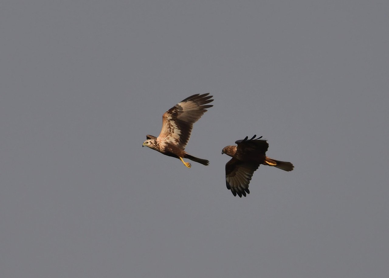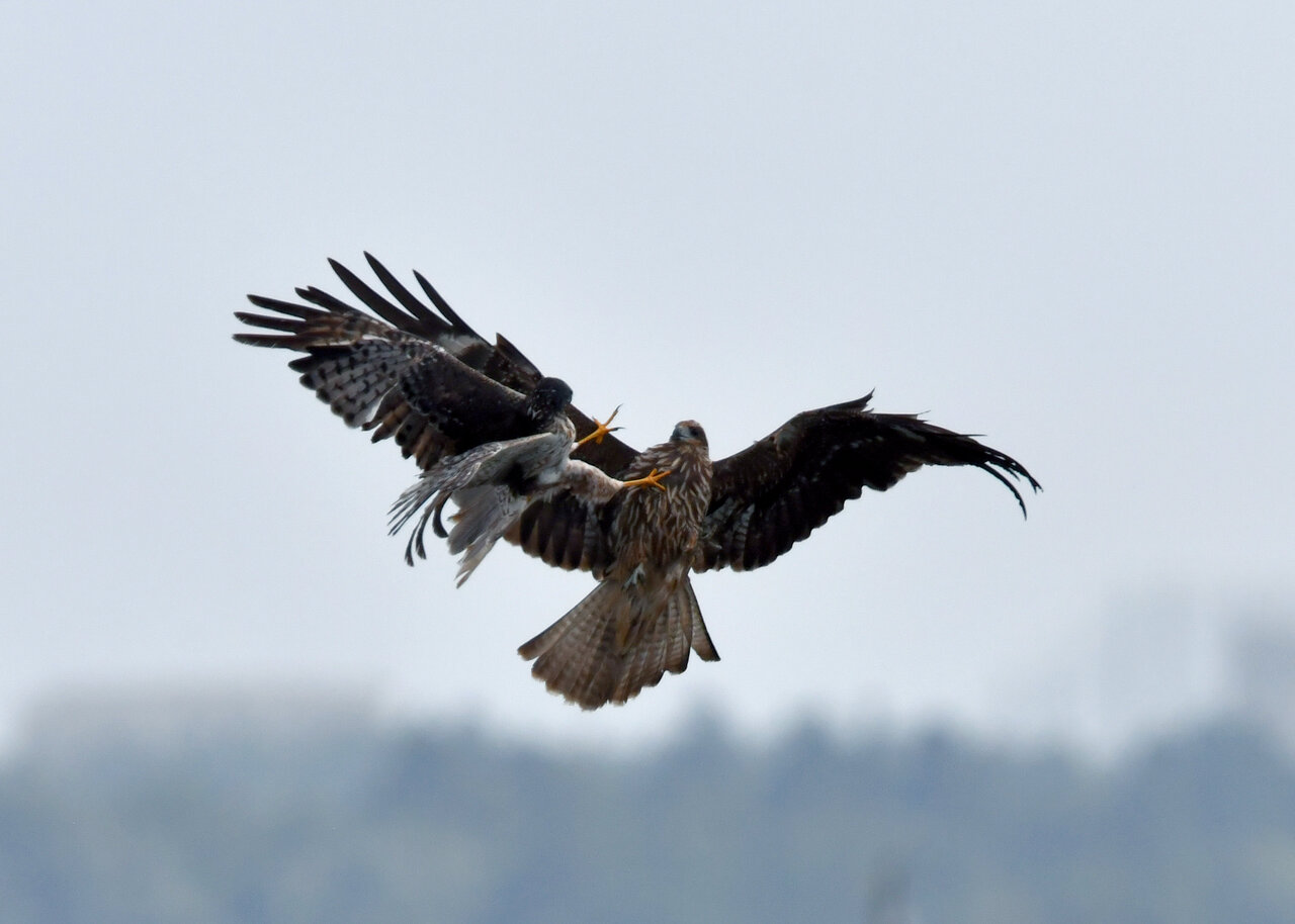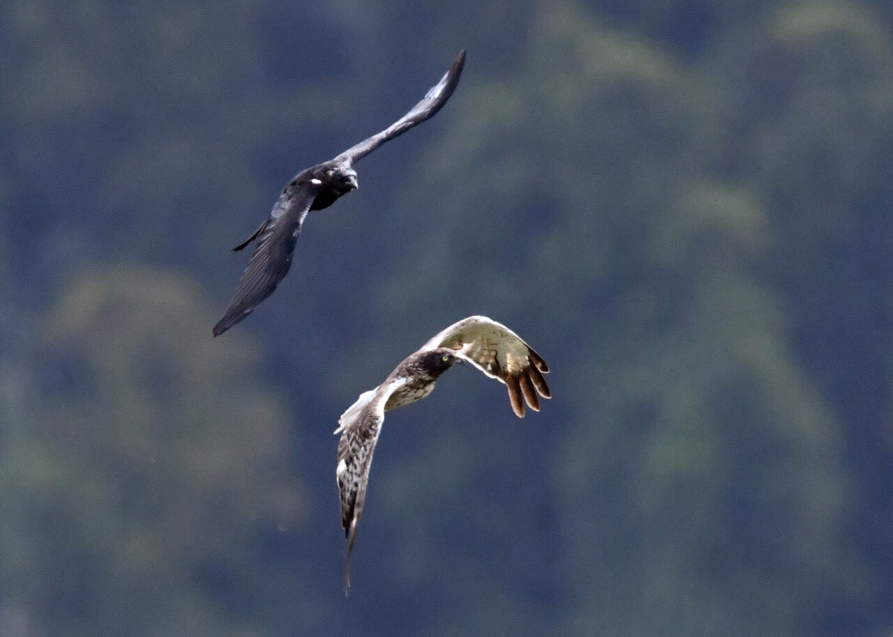 昨日の続き、大陸型チュウヒ(愛称:ズグロチュウヒ)です。 此処はトビの縄張りなのかバトルを始めました。
