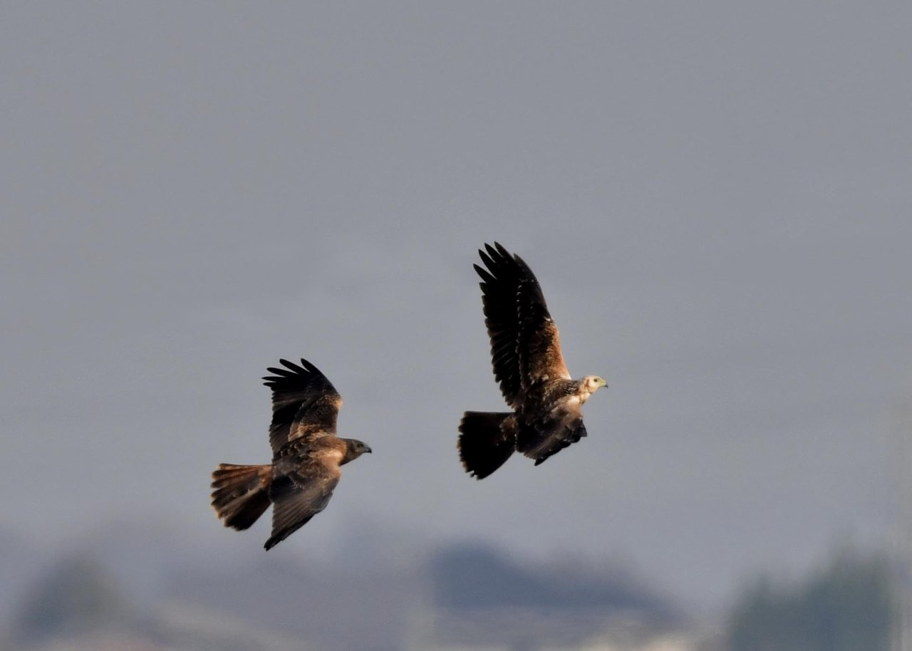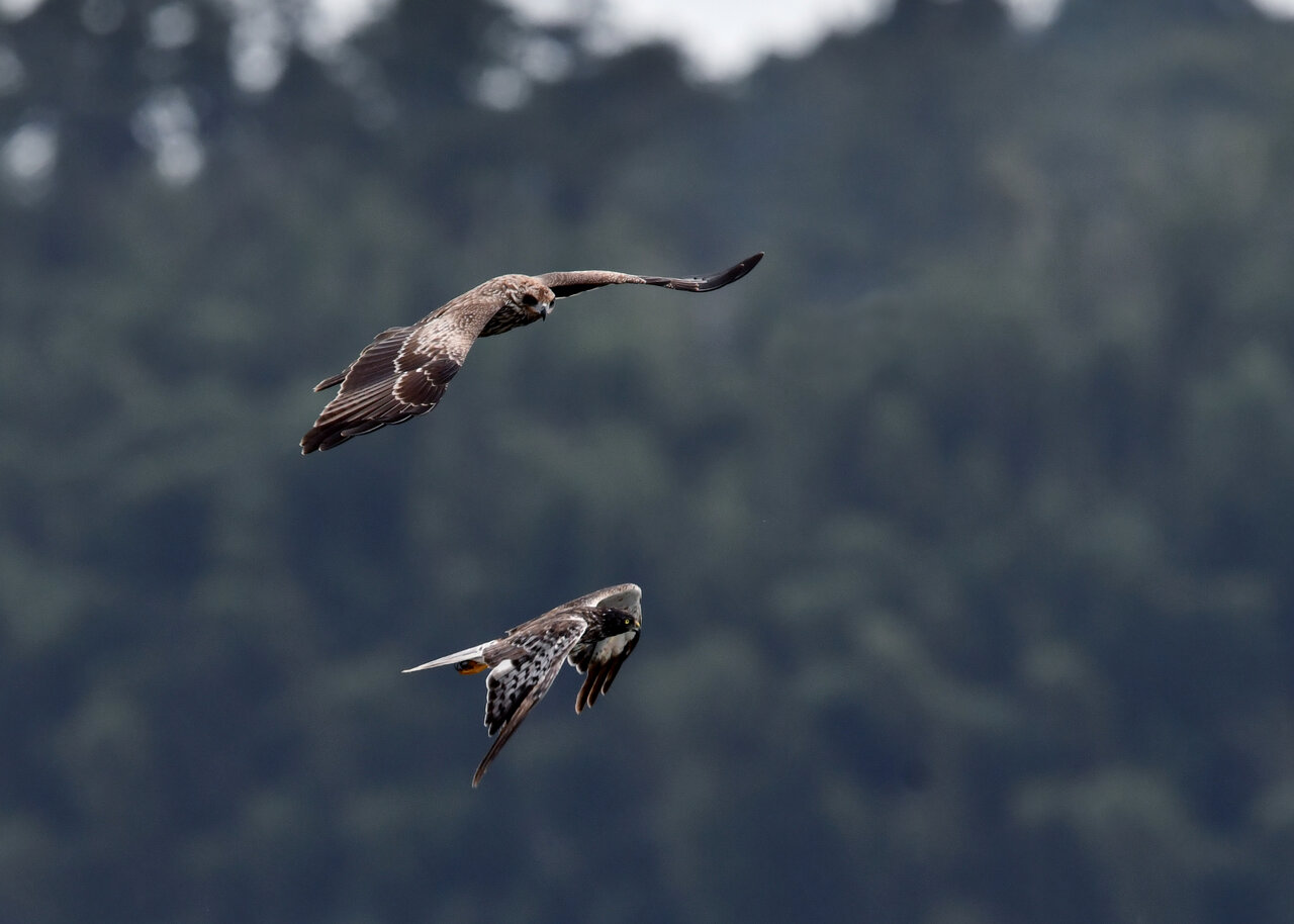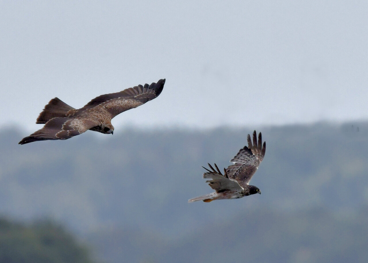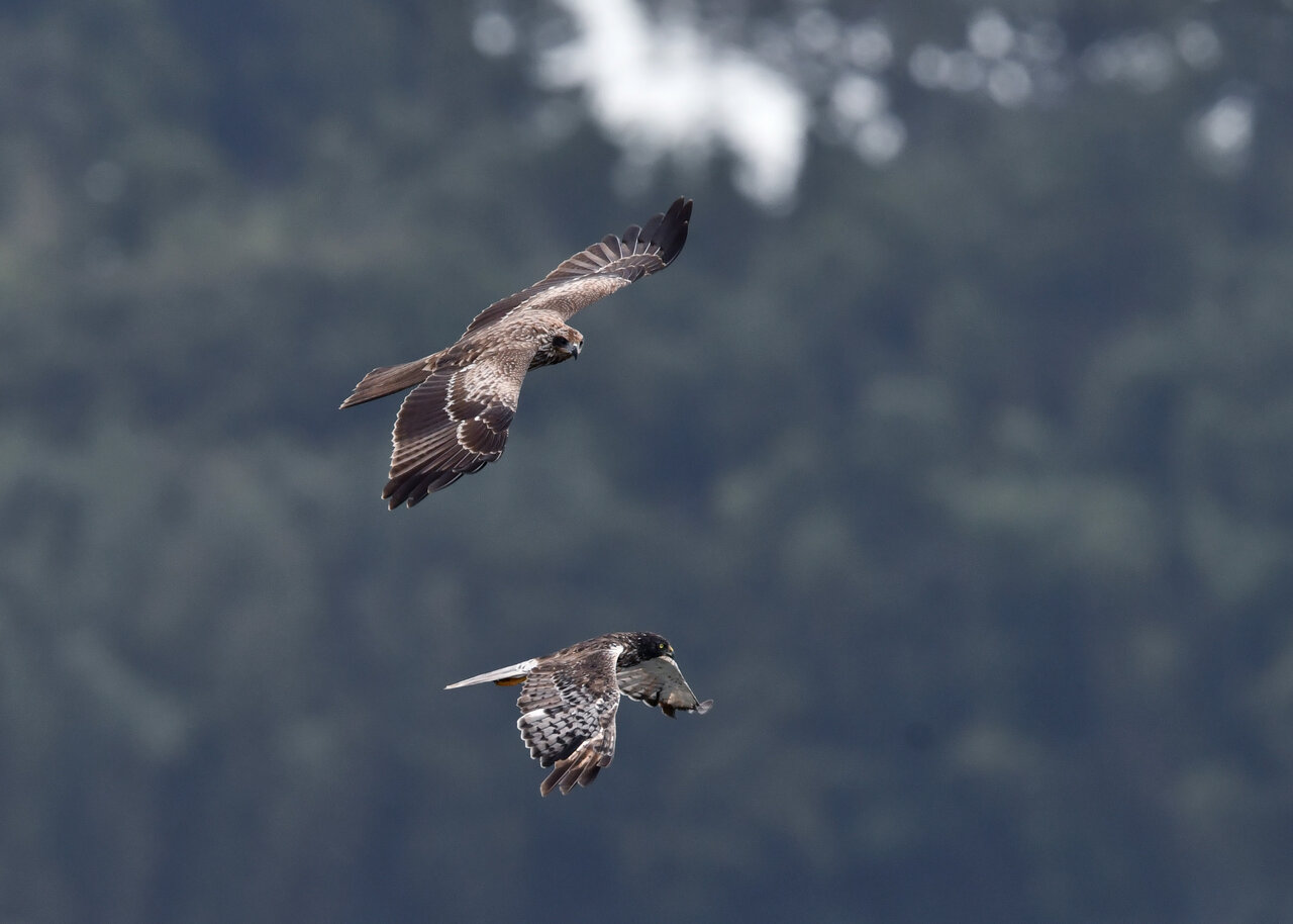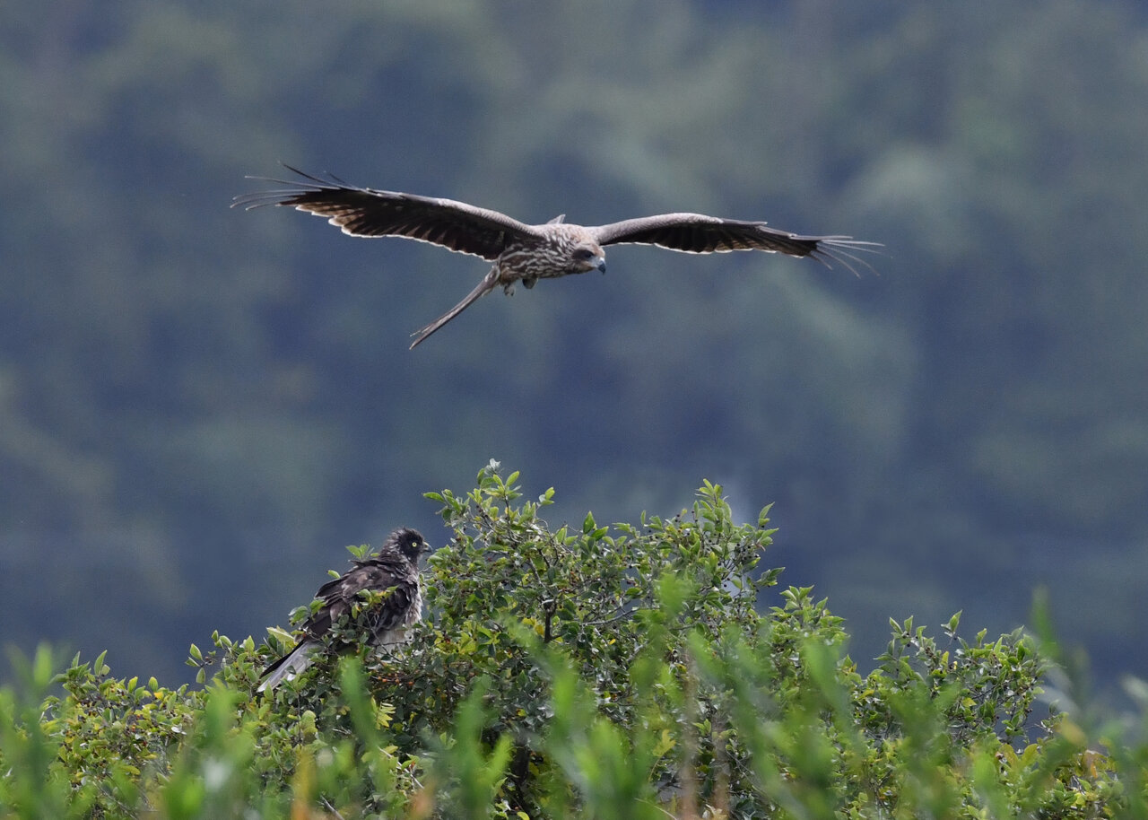 昨日の続き、大陸型チュウヒ(愛称:ズグロチュウヒ)です。 此処はトビの縄張りなのかバトルを始めました。