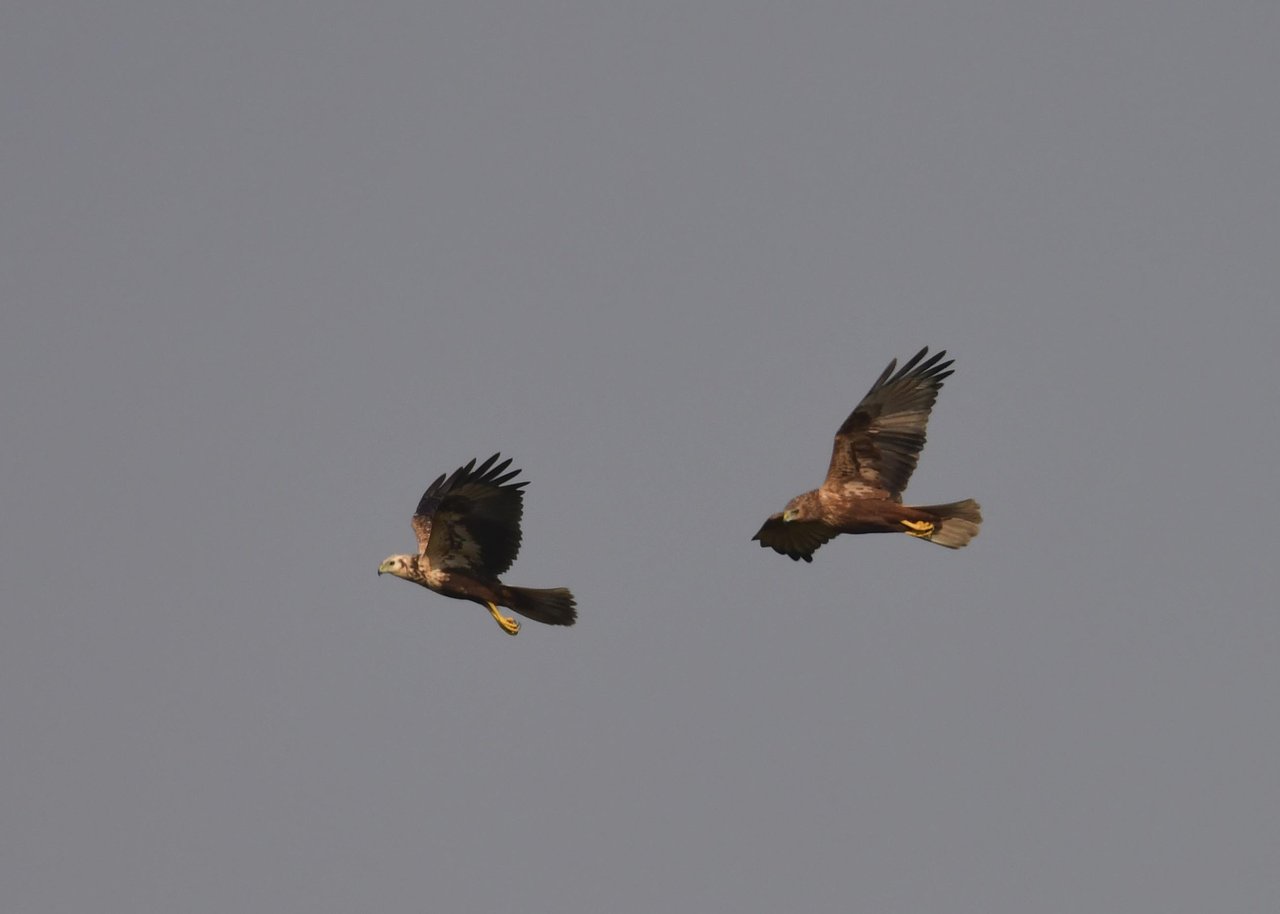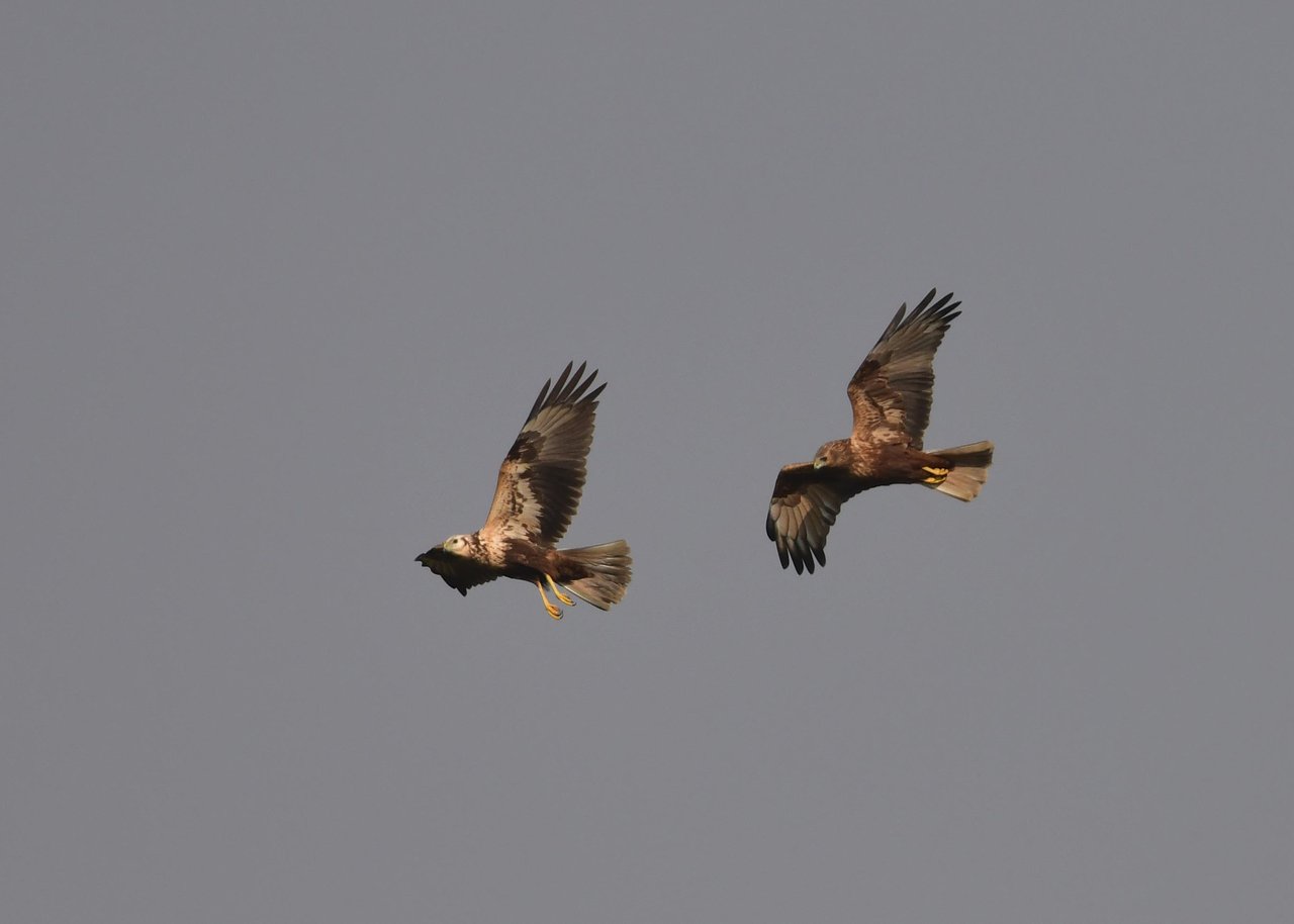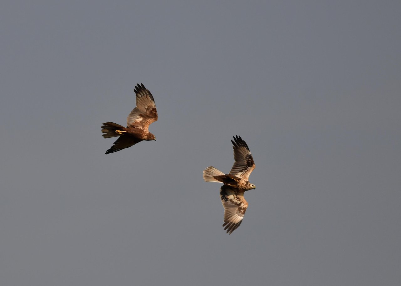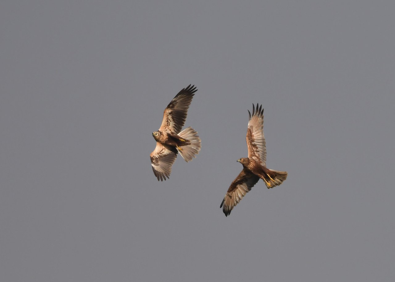 昨日の続き、大陸型チュウヒ(愛称:ズグロチュウヒ)です。 此処はトビの縄張りなのかバトルを始めました。