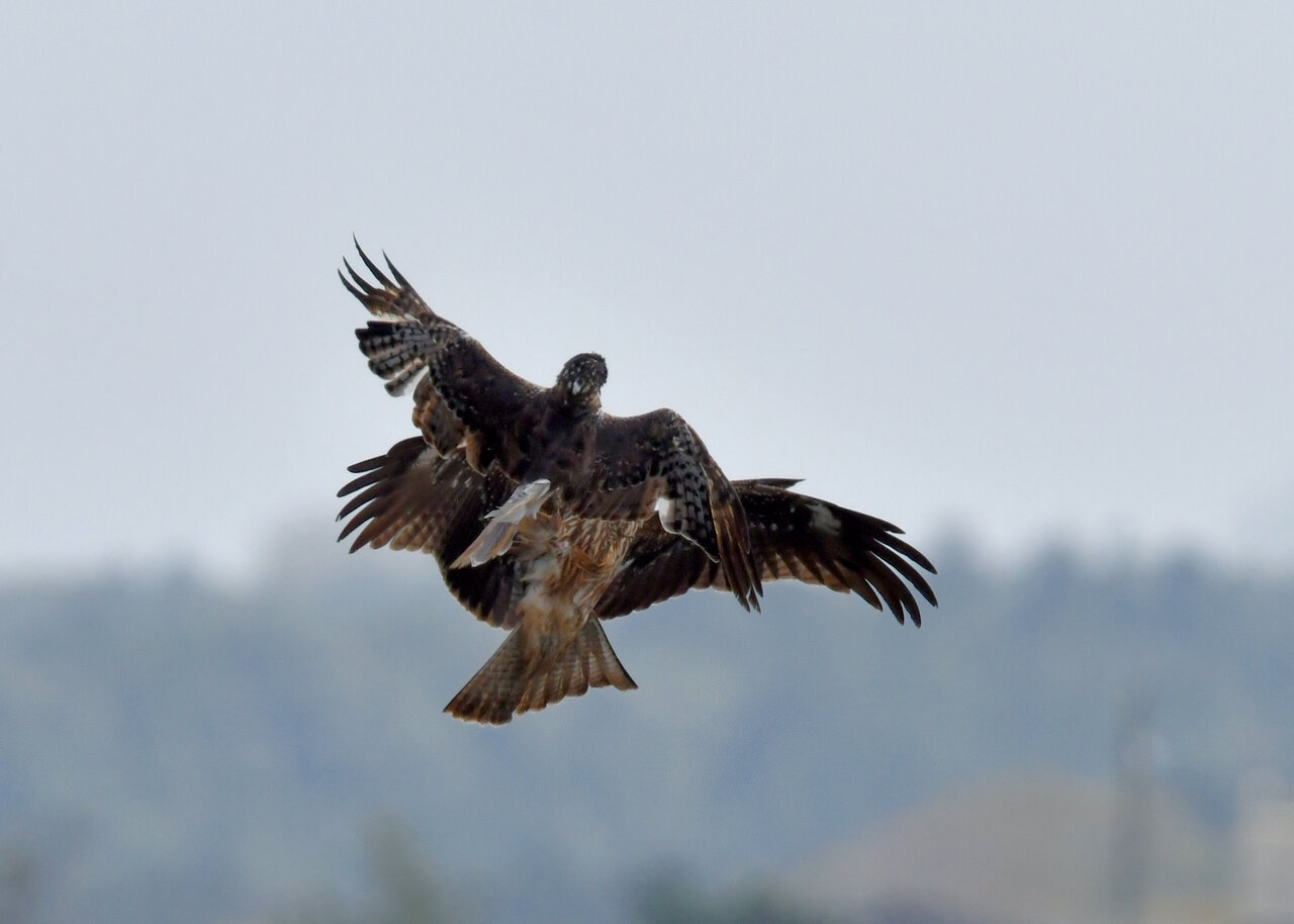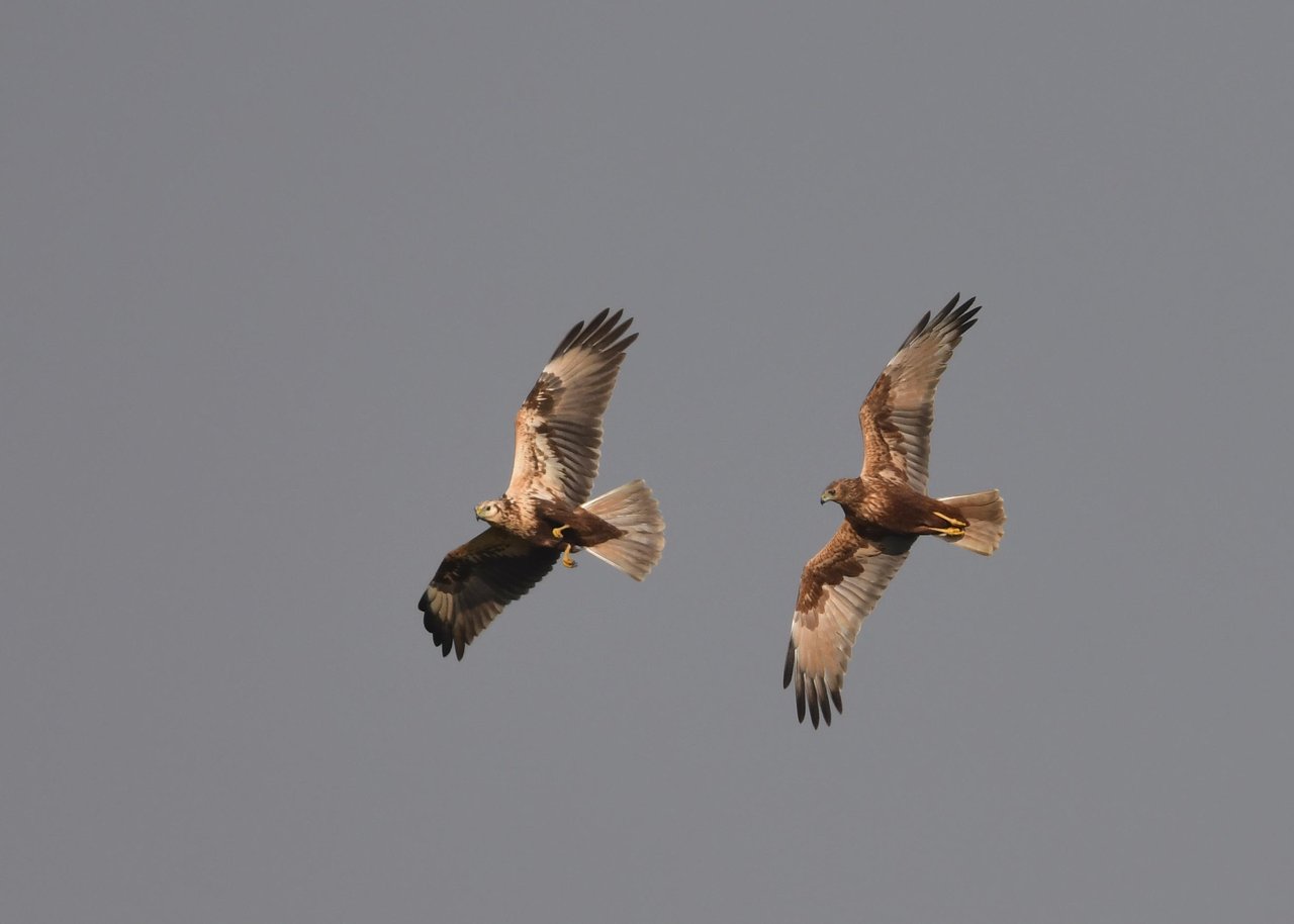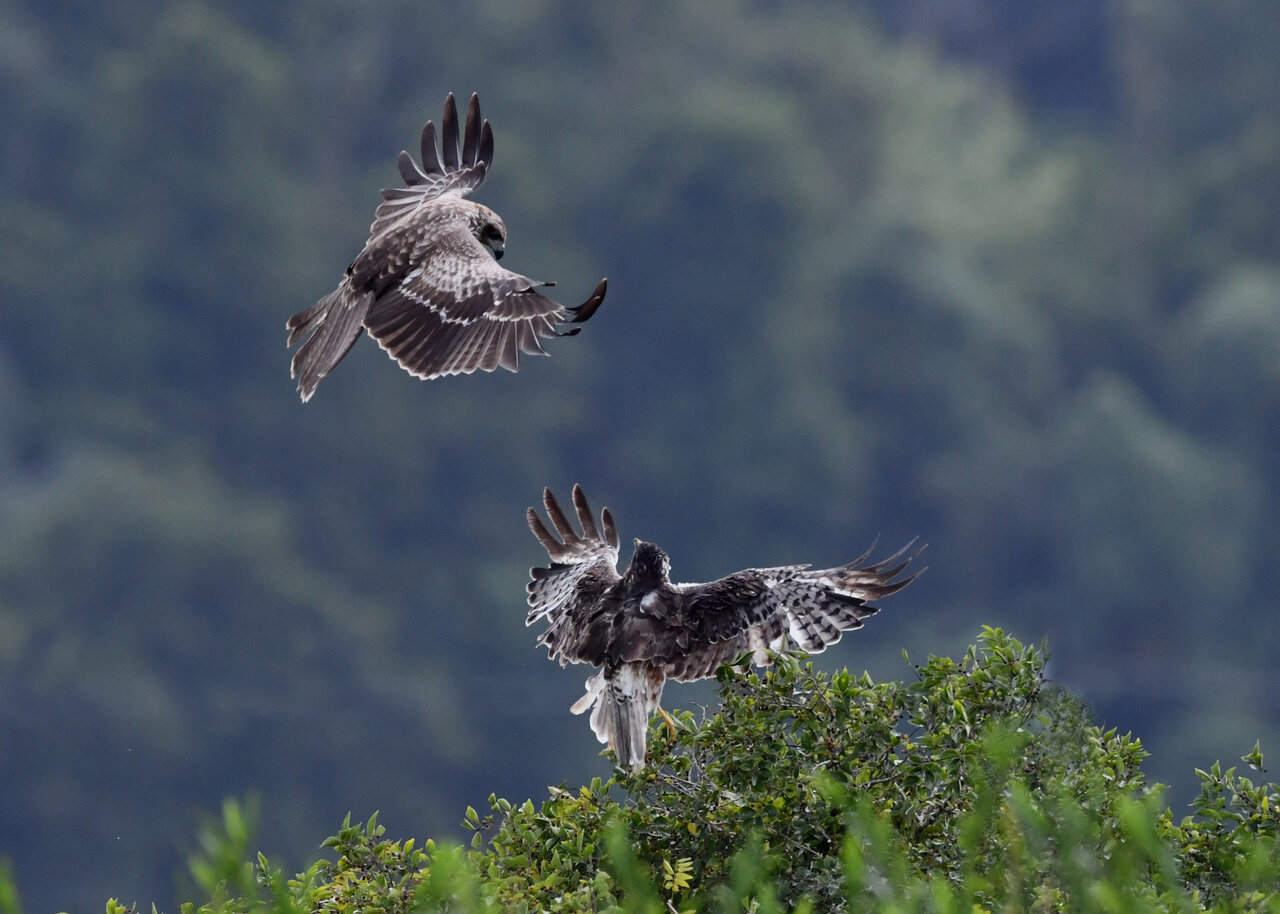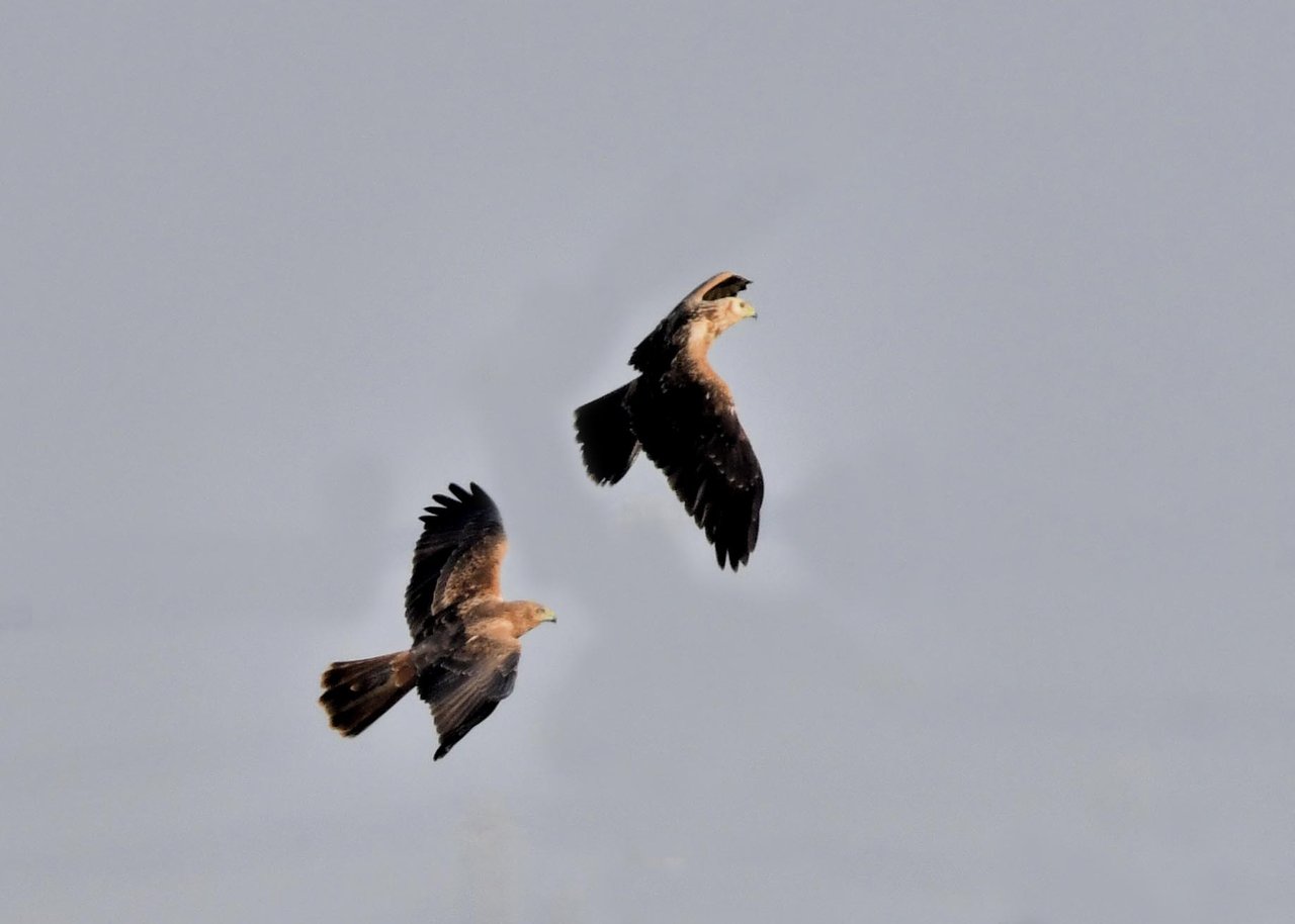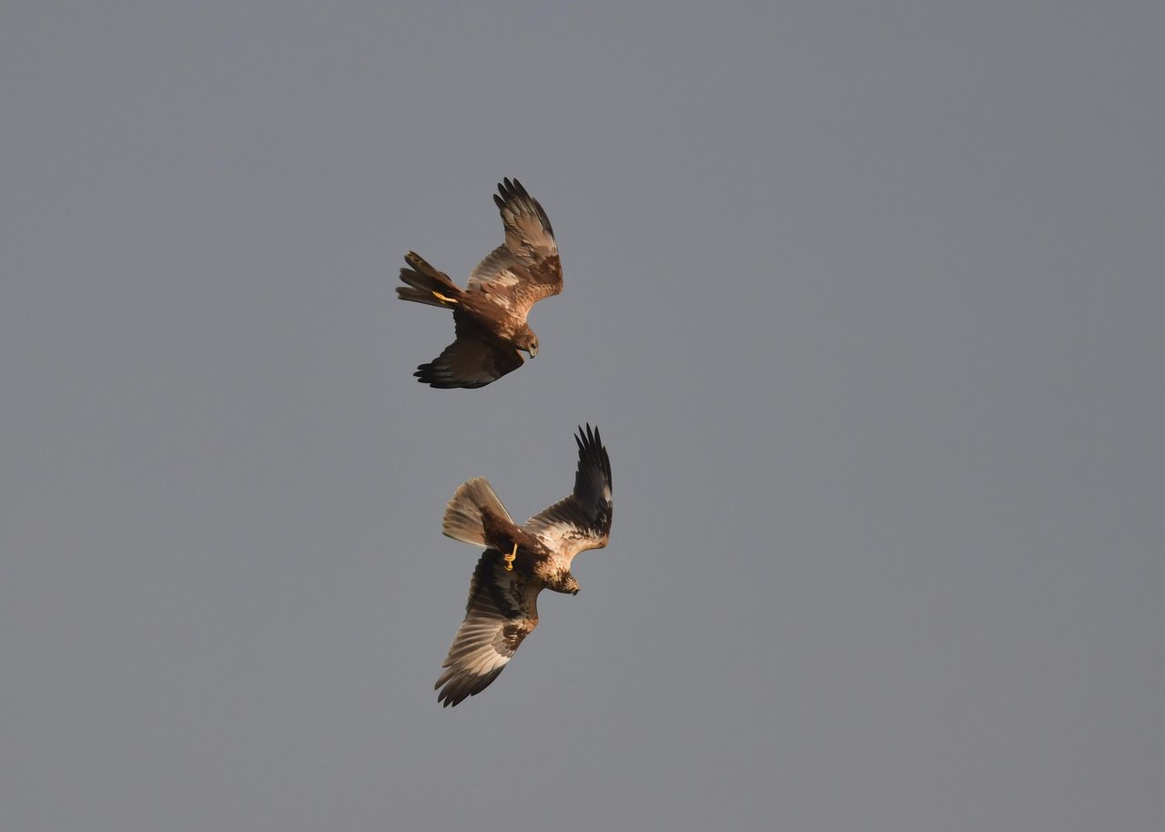 昨日の続き、大陸型チュウヒ(愛称:ズグロチュウヒ)です。 此処はトビの縄張りなのかバトルを始めました。