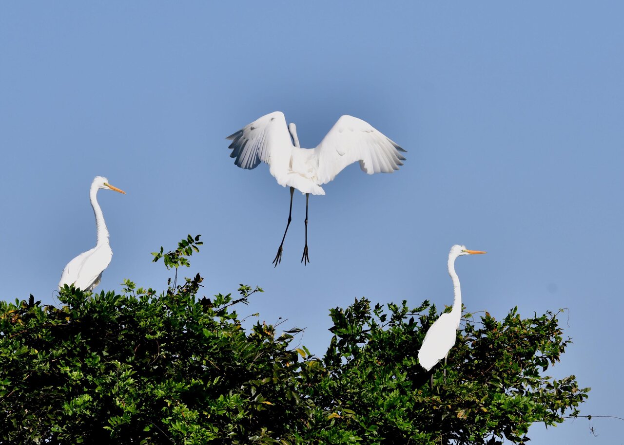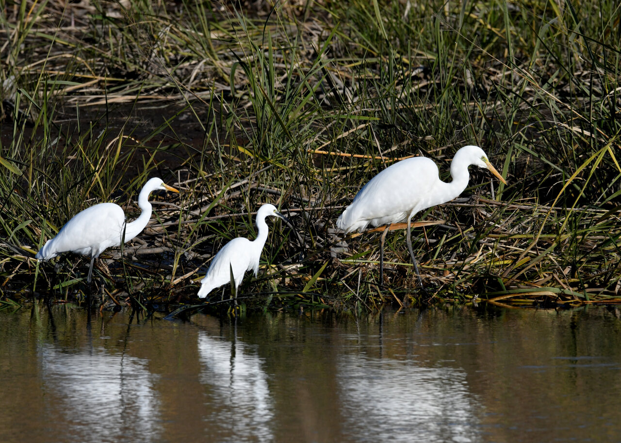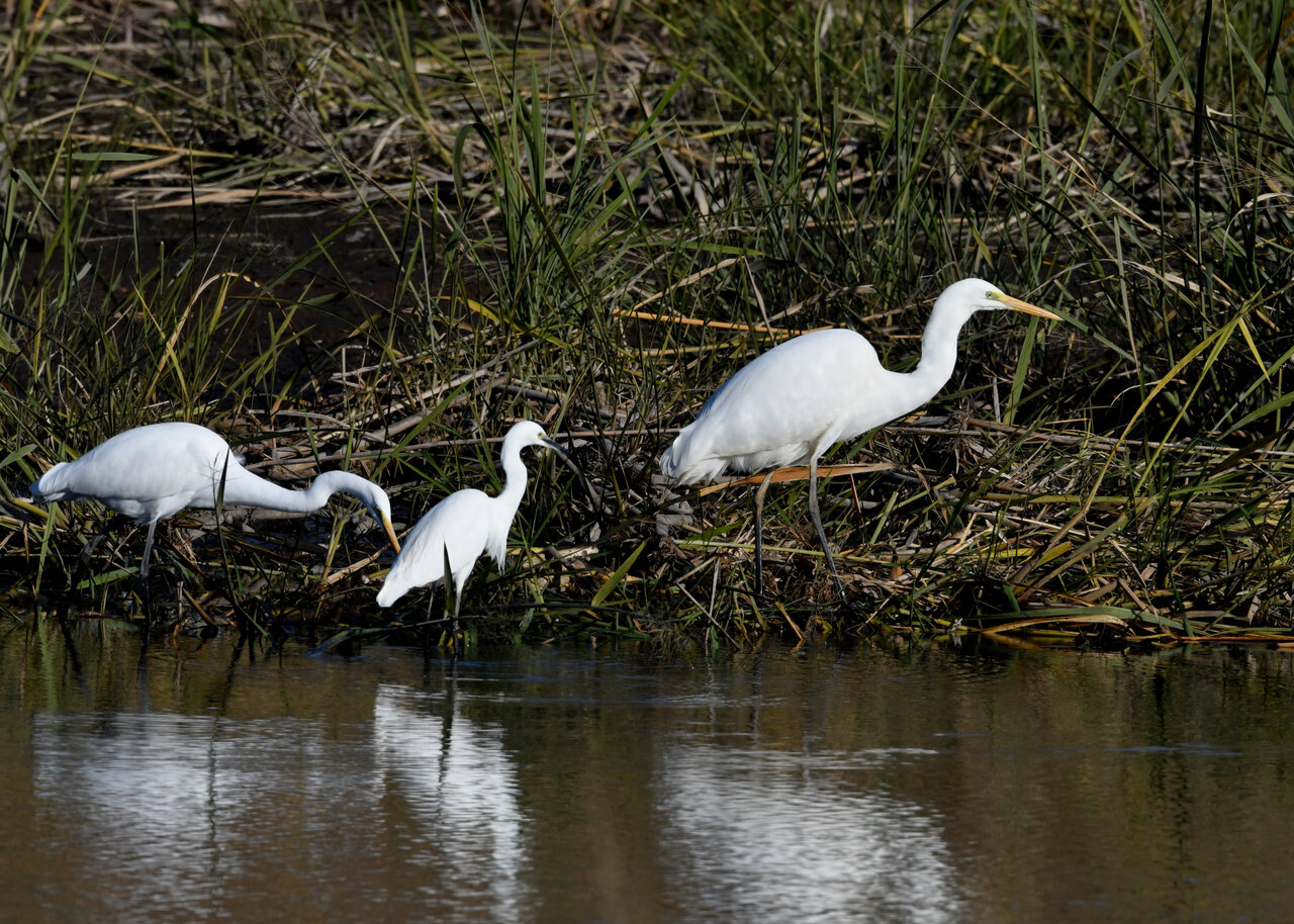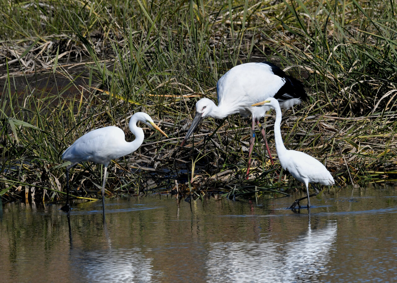 左:ダイサギ、中:コウノトリ、右:チュウダイサキです。