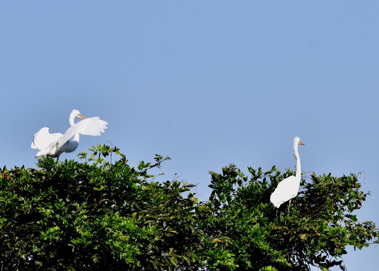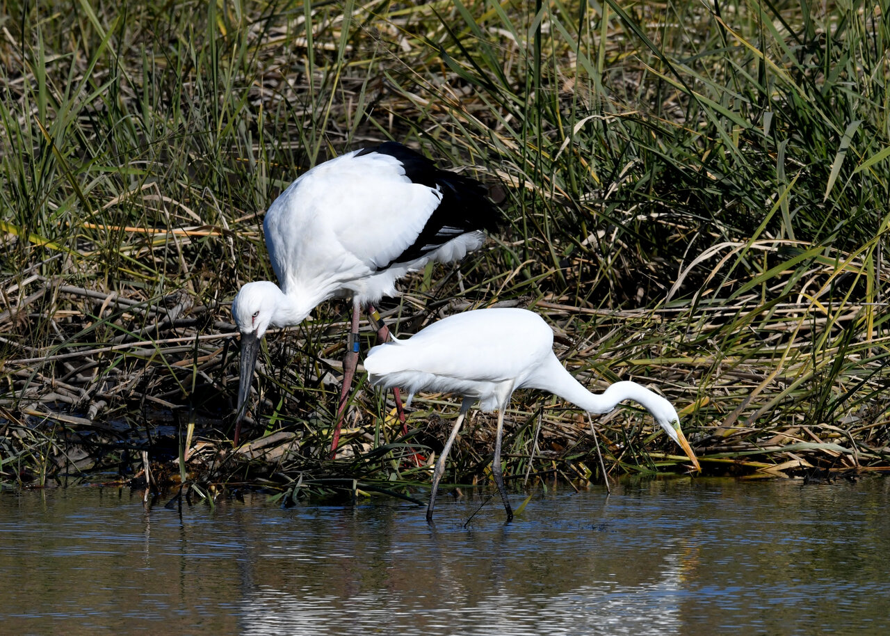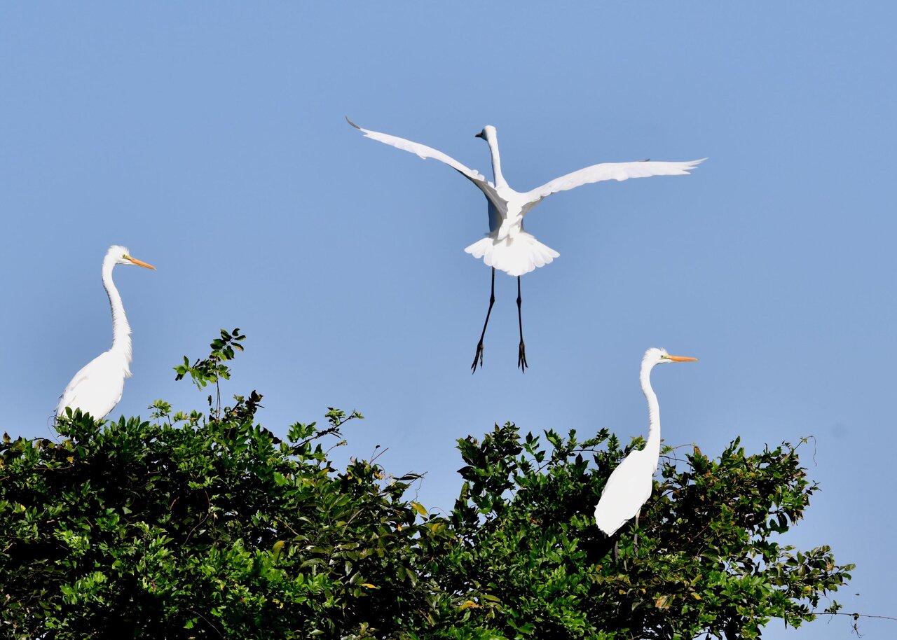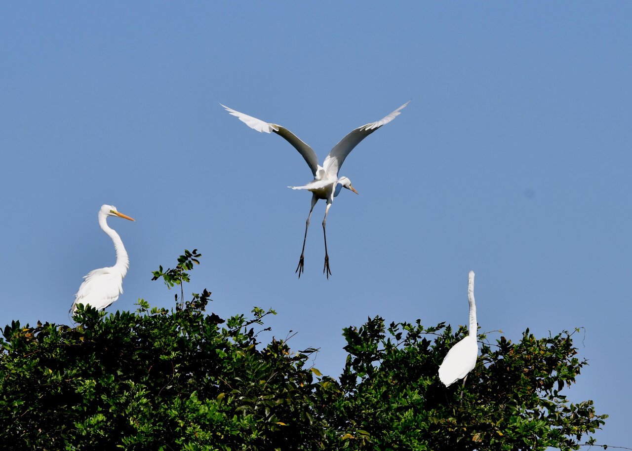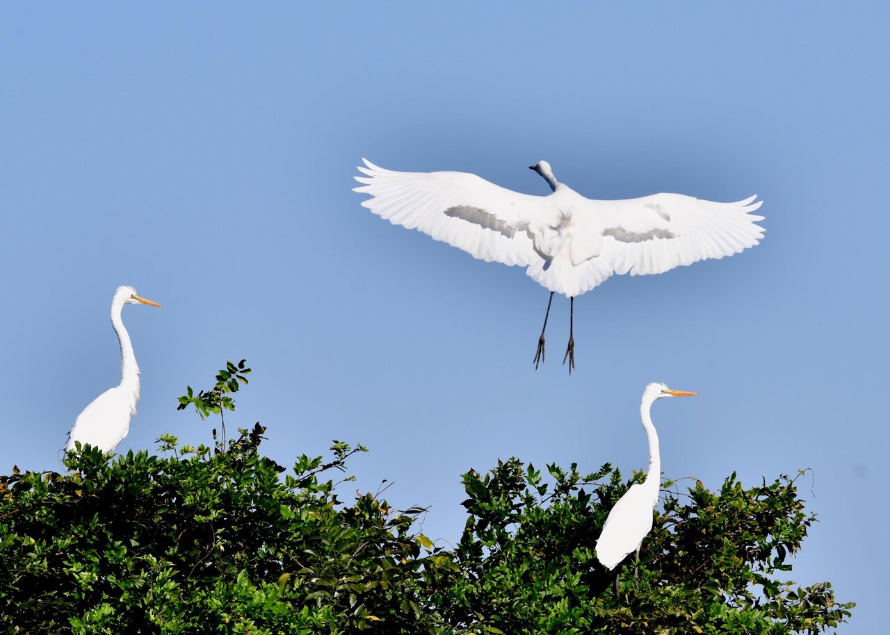 左:ダイサギ、中:コウノトリ、右:チュウダイサキです。