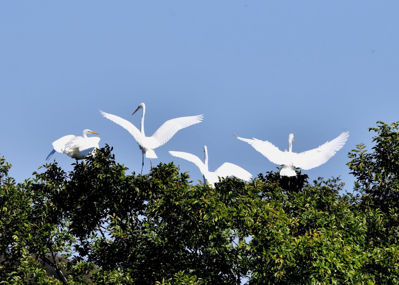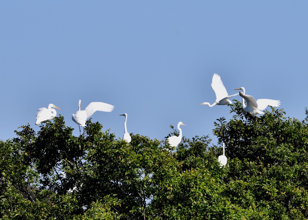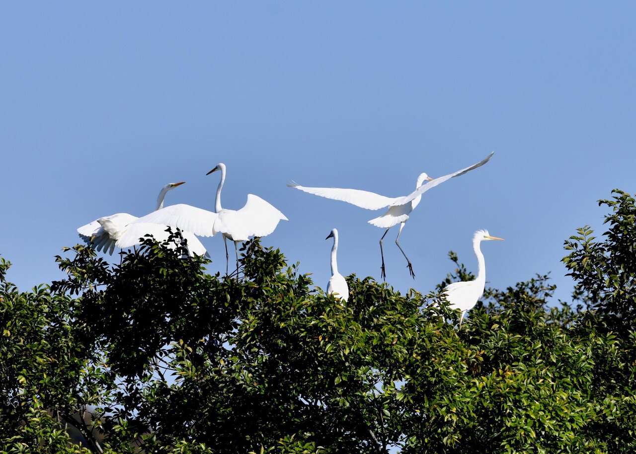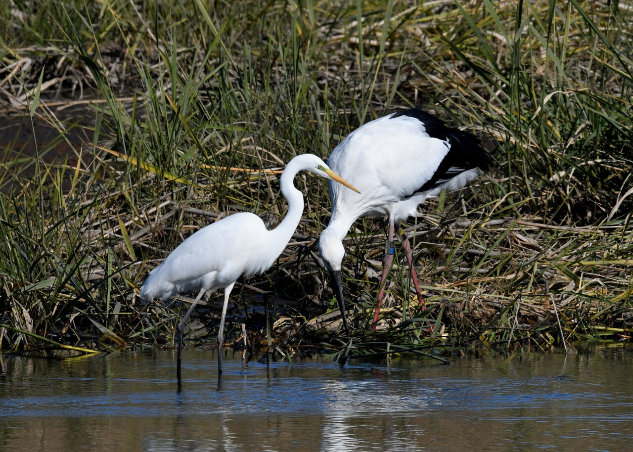 左:ダイサギ、中:コウノトリ、右:チュウダイサキです。