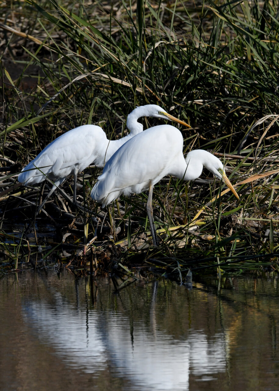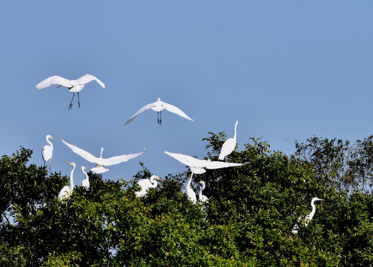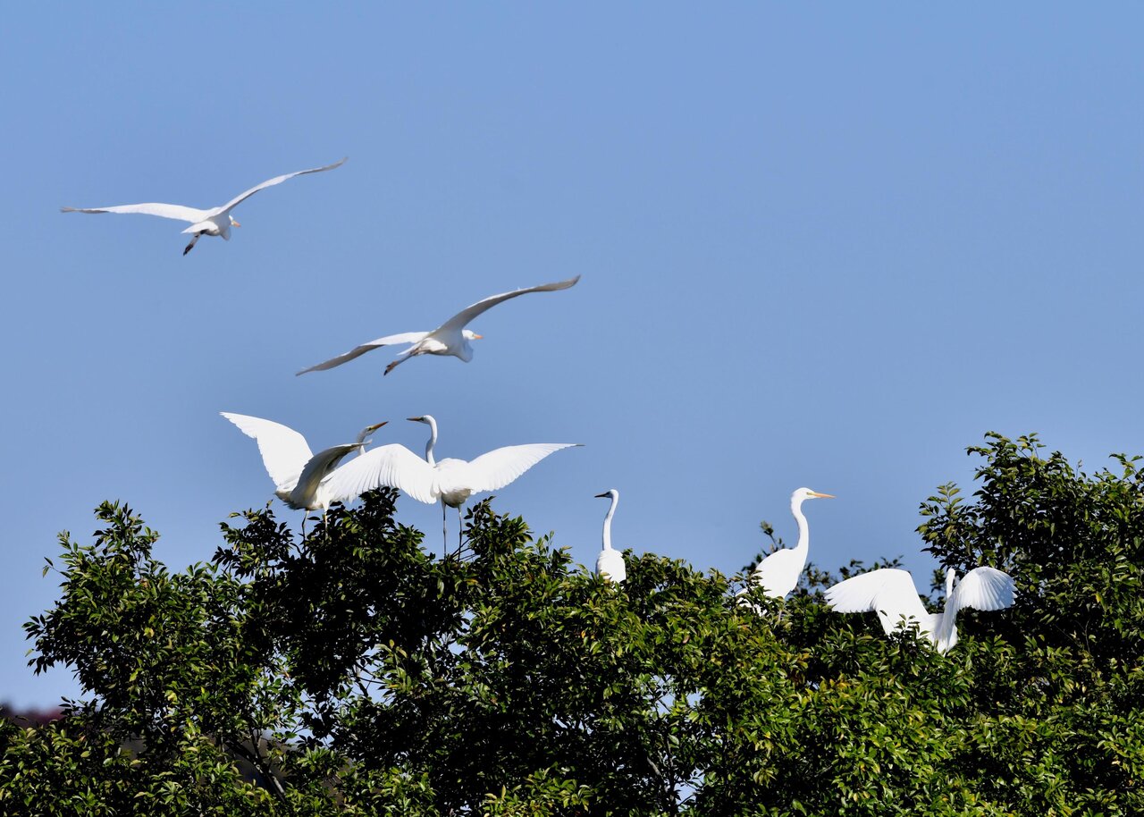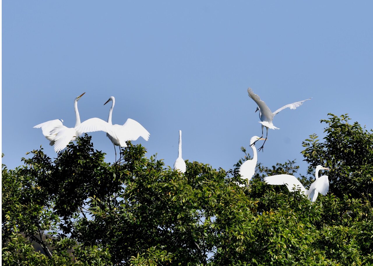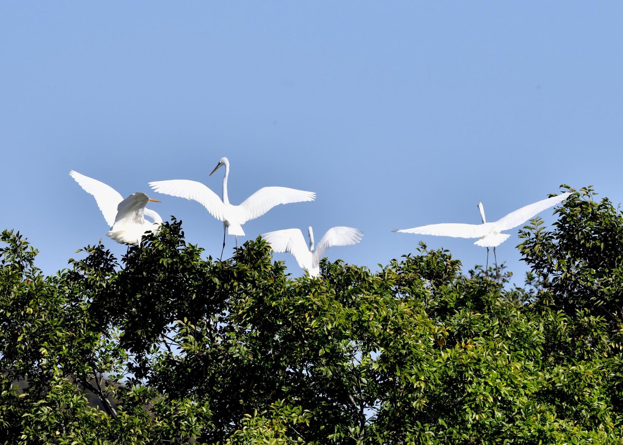 左:ダイサギ、中:コウノトリ、右:チュウダイサキです。