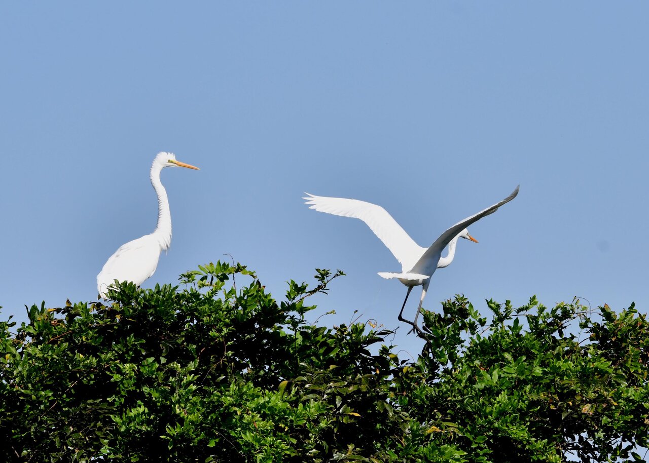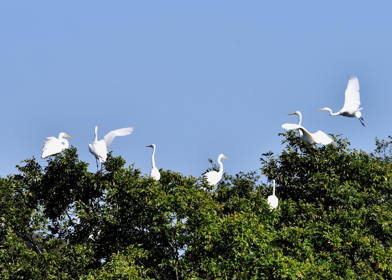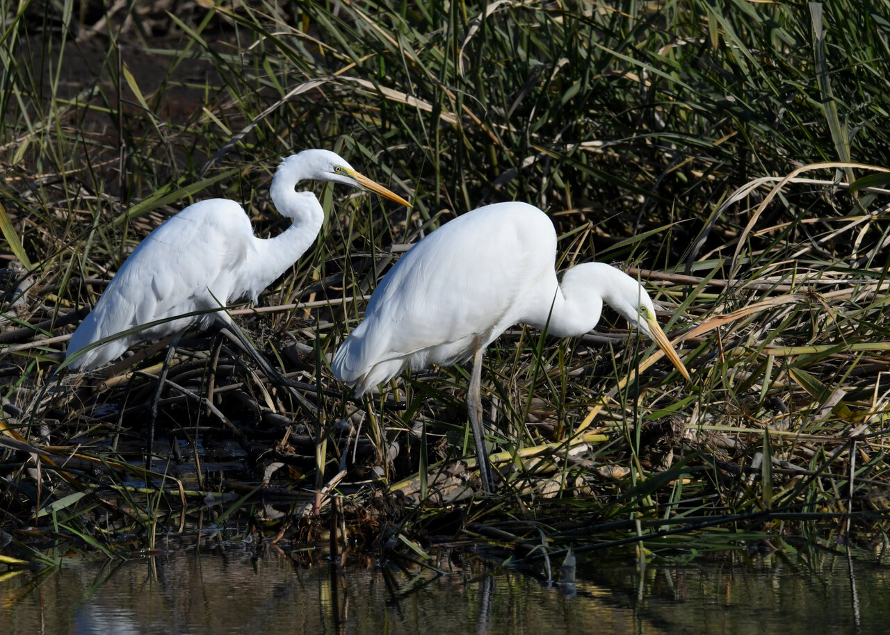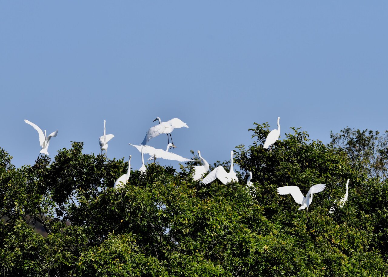 左:ダイサギ、中:コウノトリ、右:チュウダイサキです。
