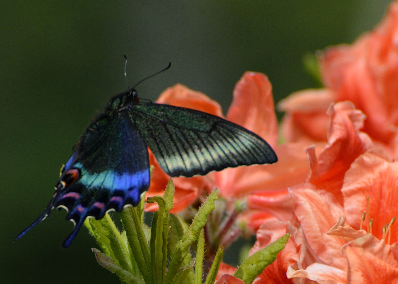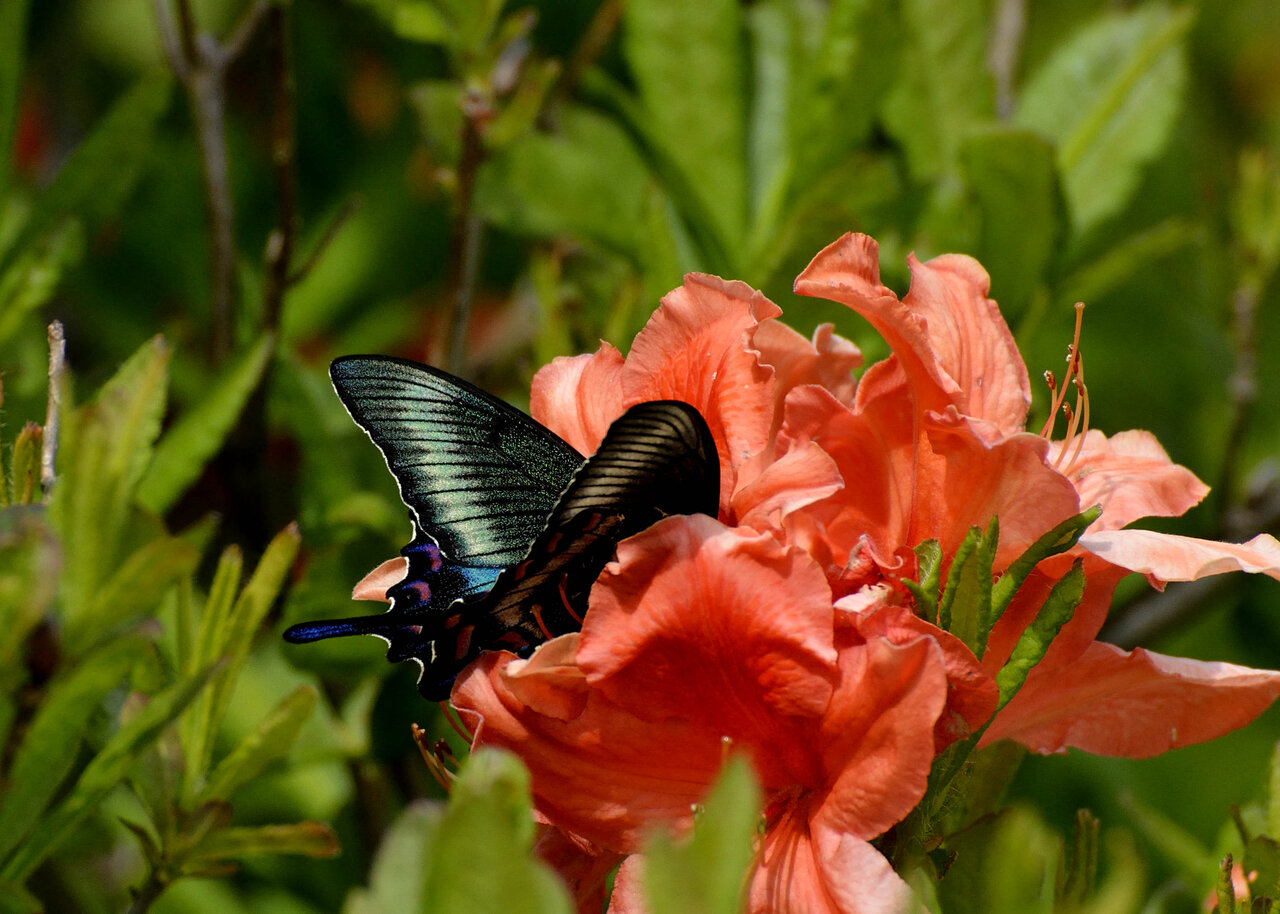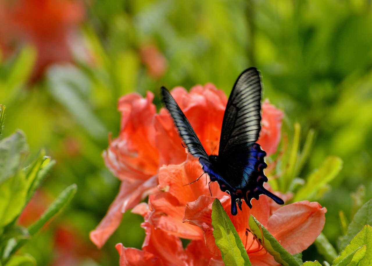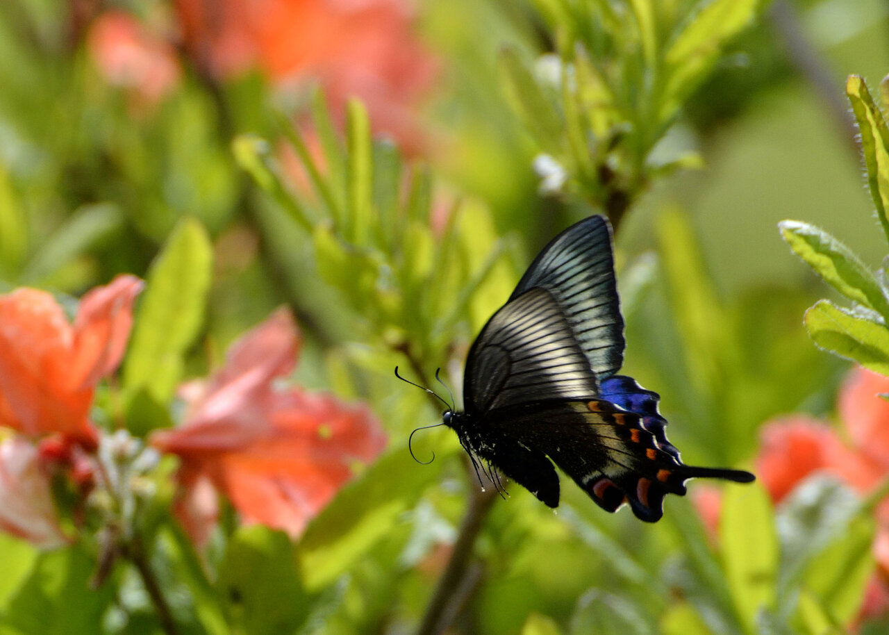レンゲツツジに吸密に来たミヤマカラスアゲハです。 昨日のカラスアゲハと比較してください。
