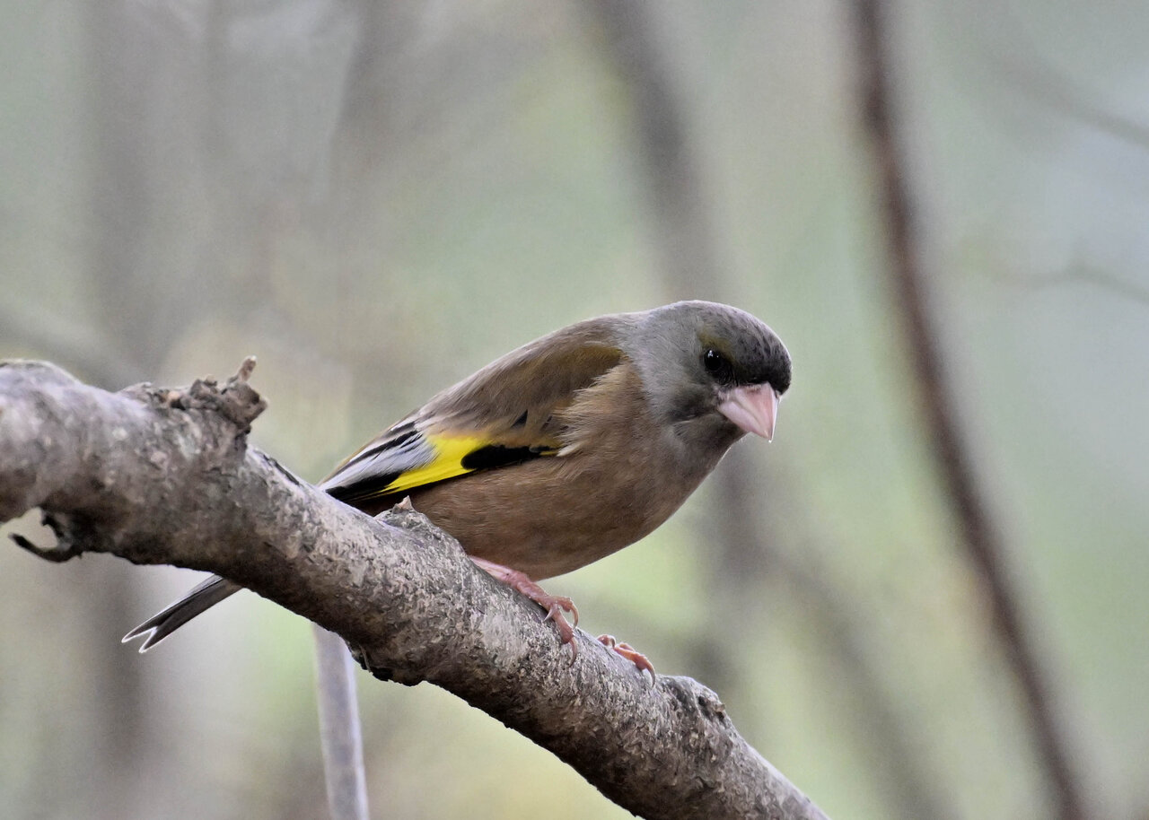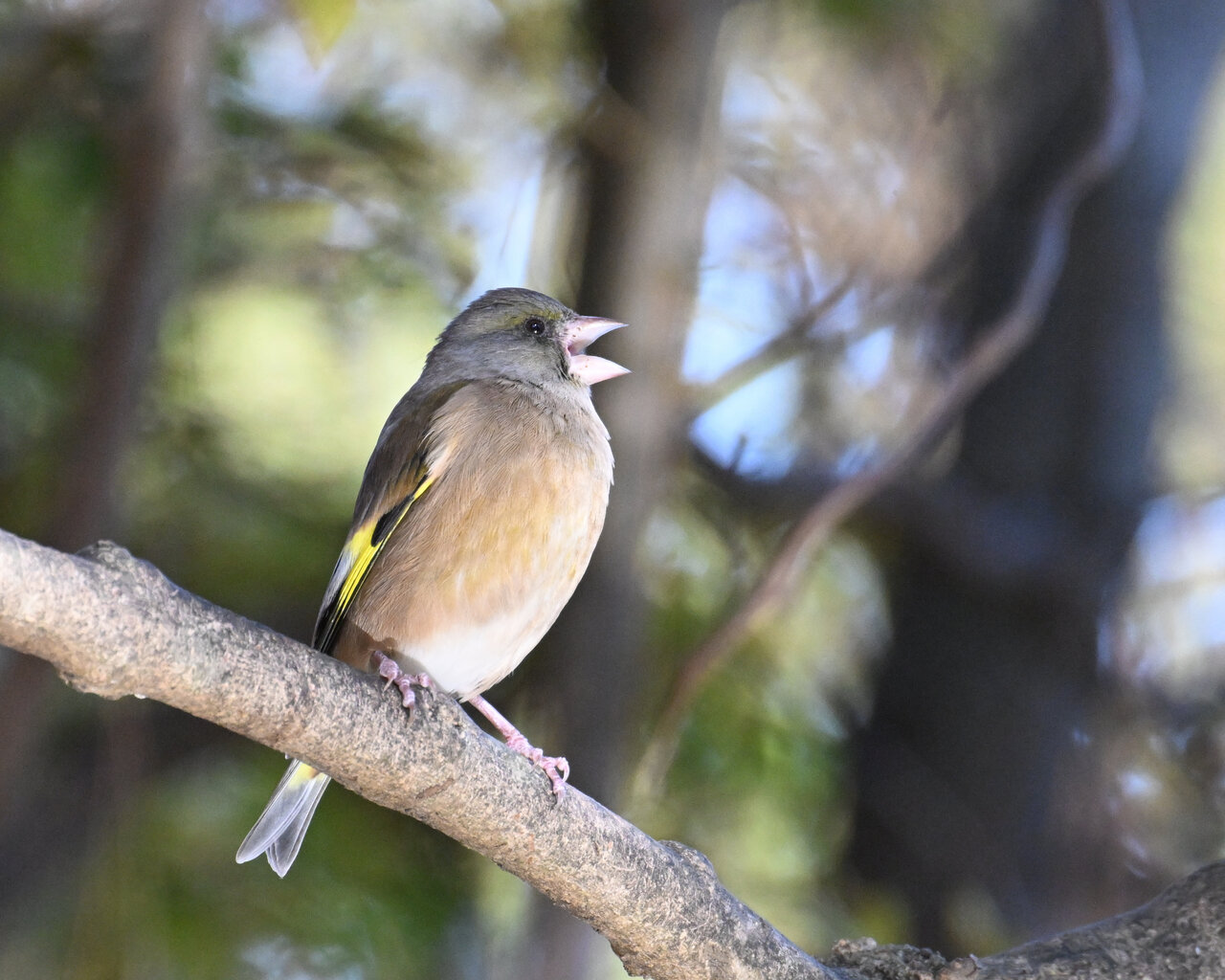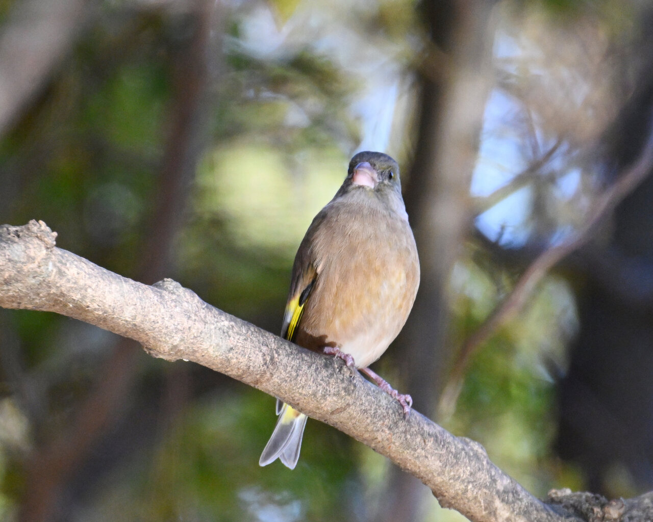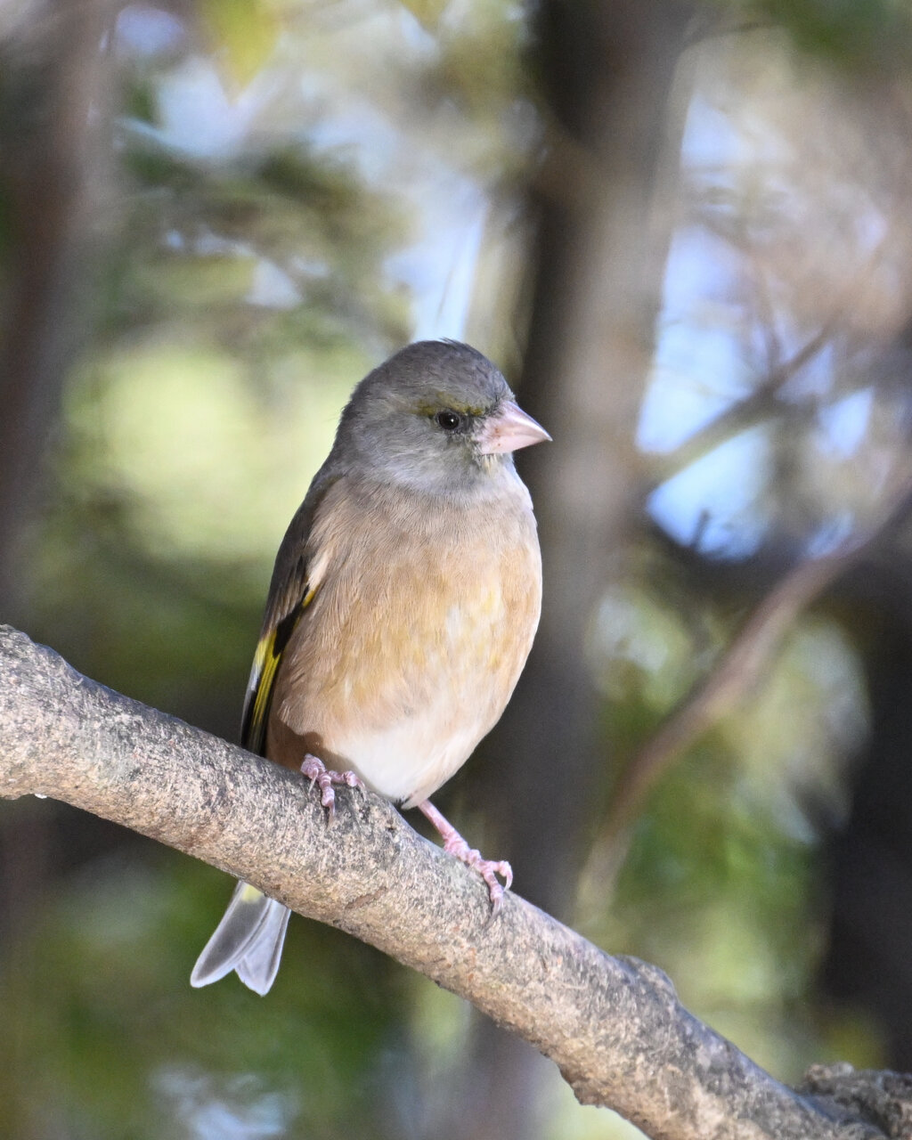 オオカワラヒワ♀です。♂より全体に淡色です。