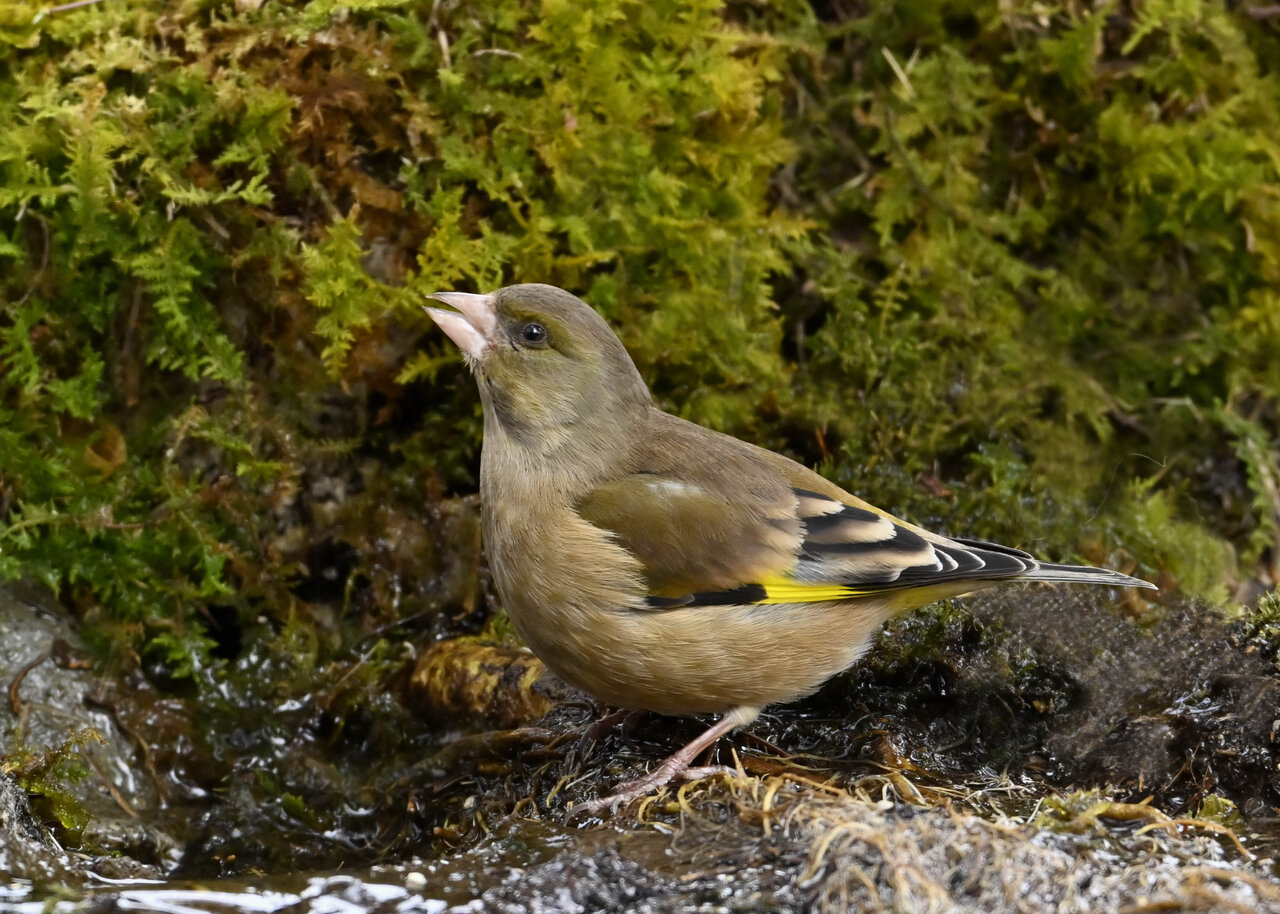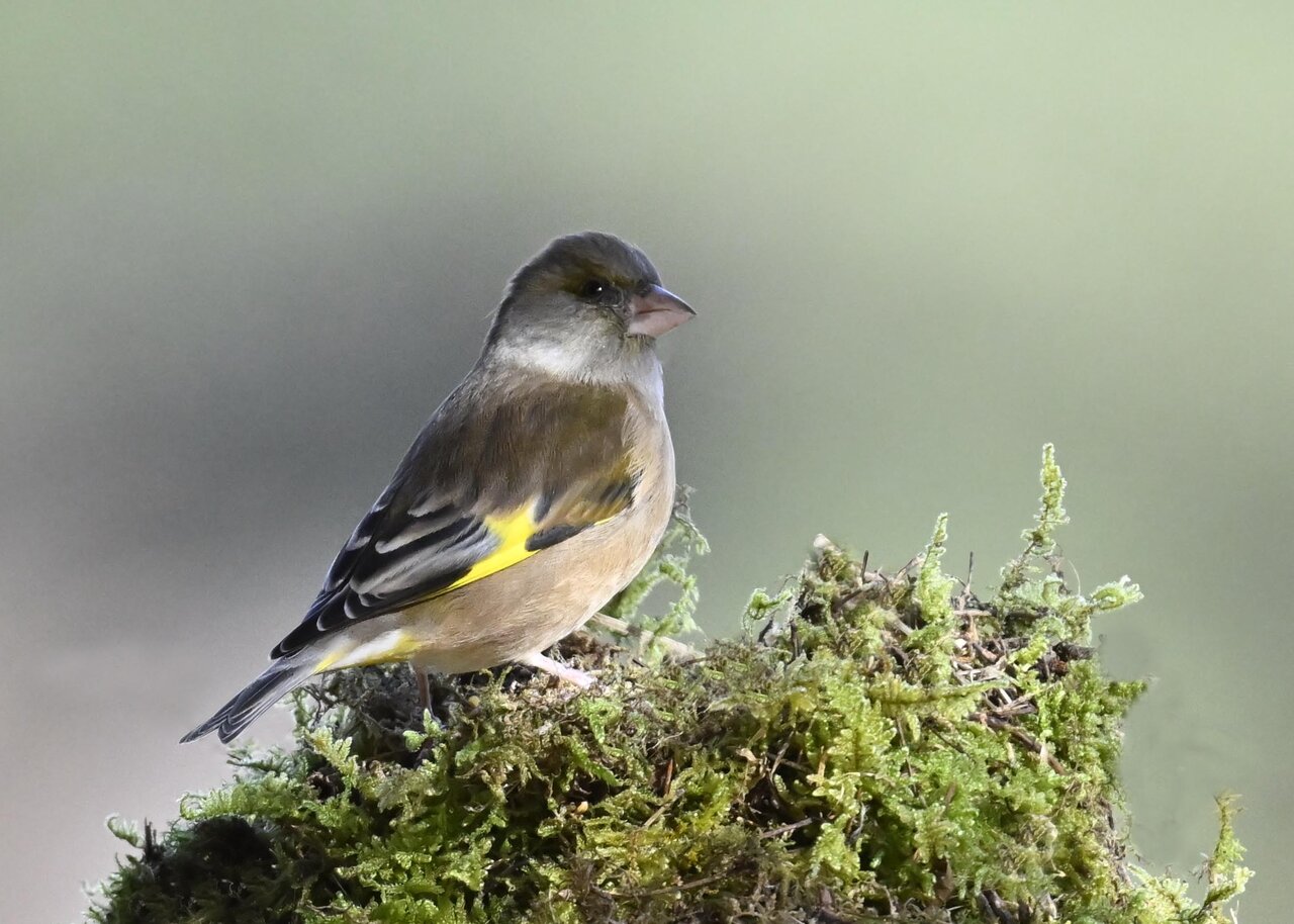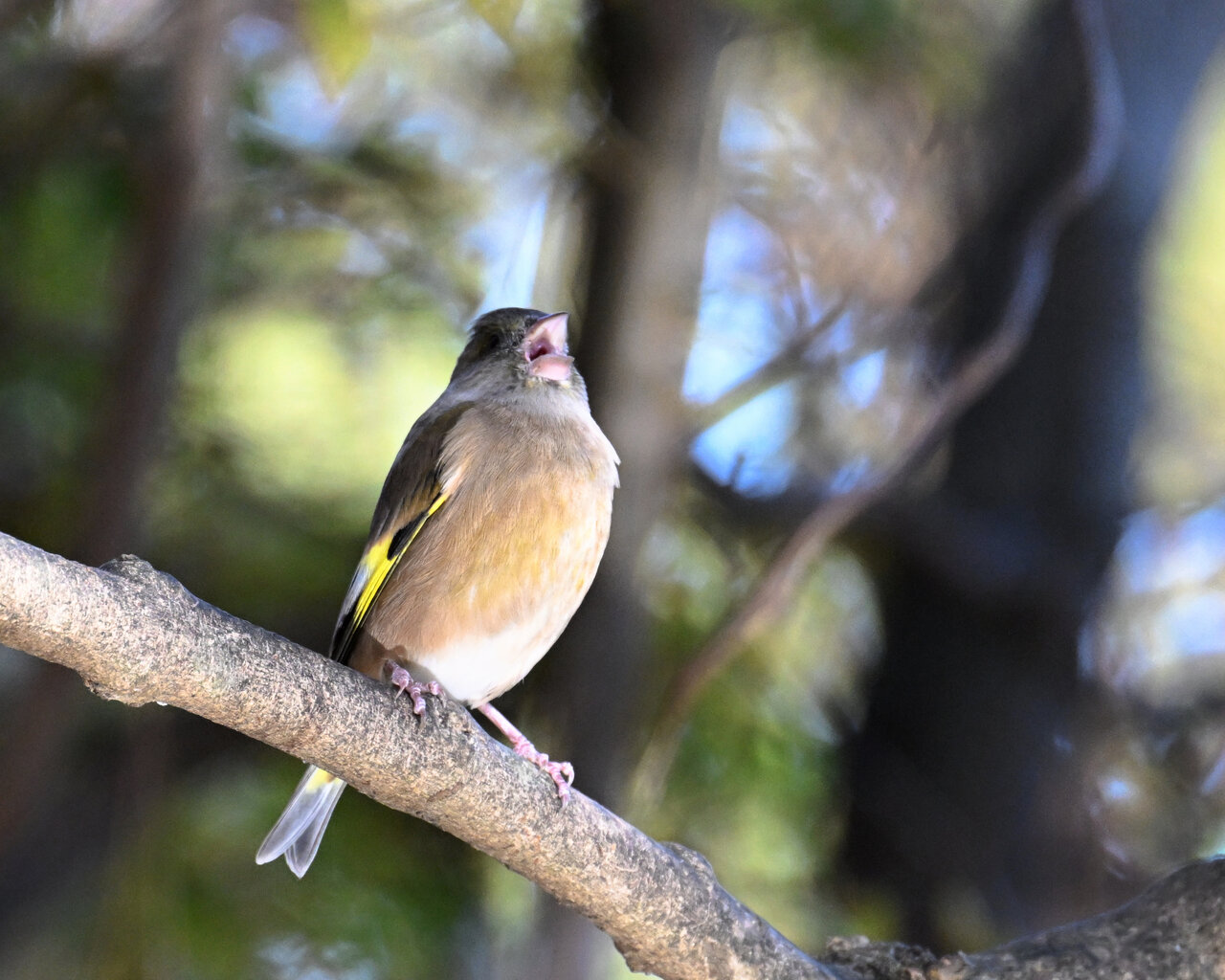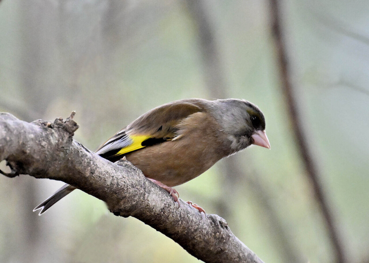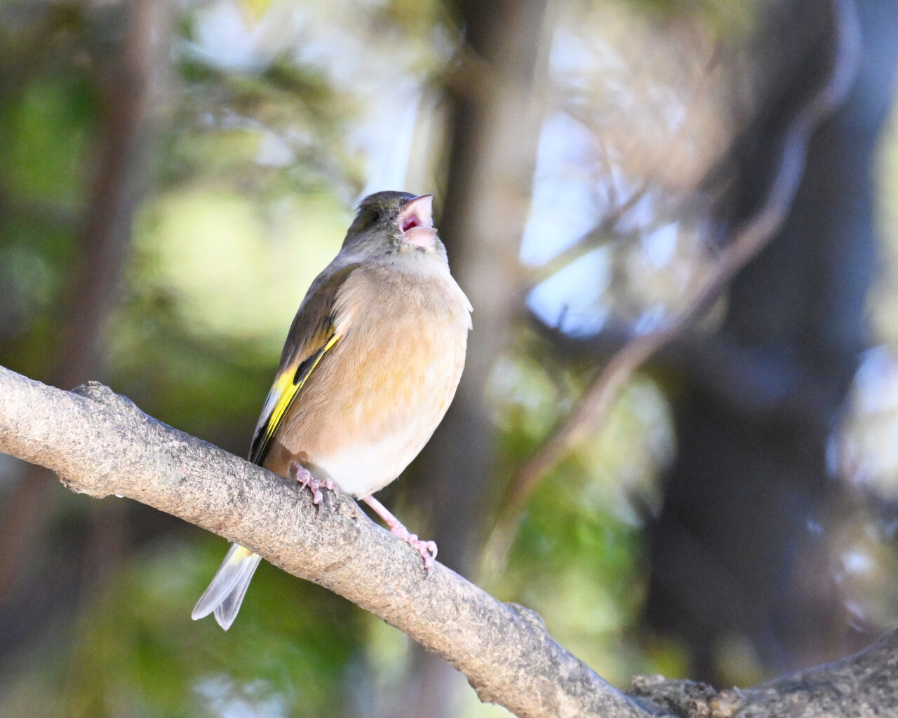 オオカワラヒワ♀です。♂より全体に淡色です。