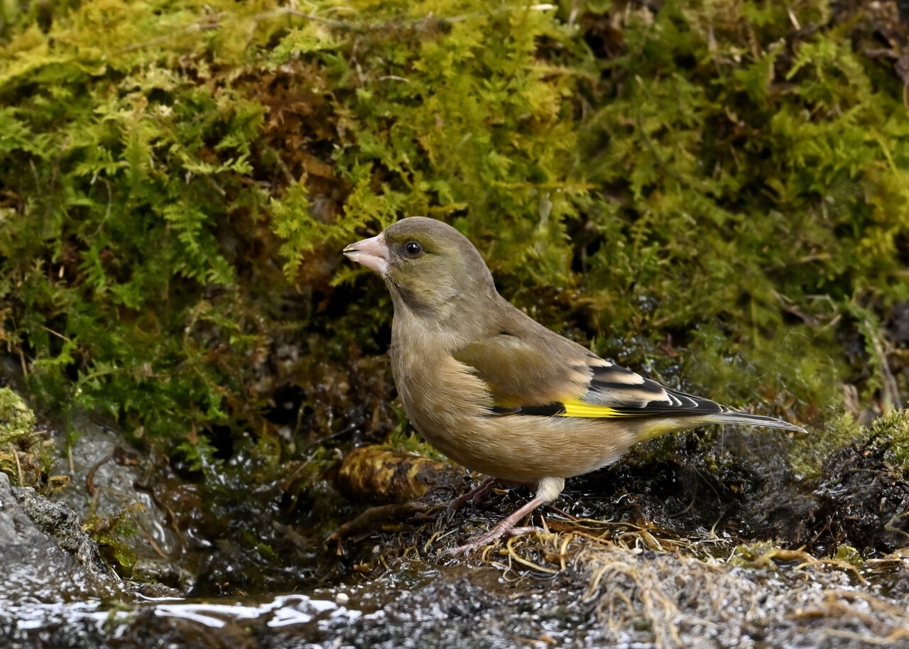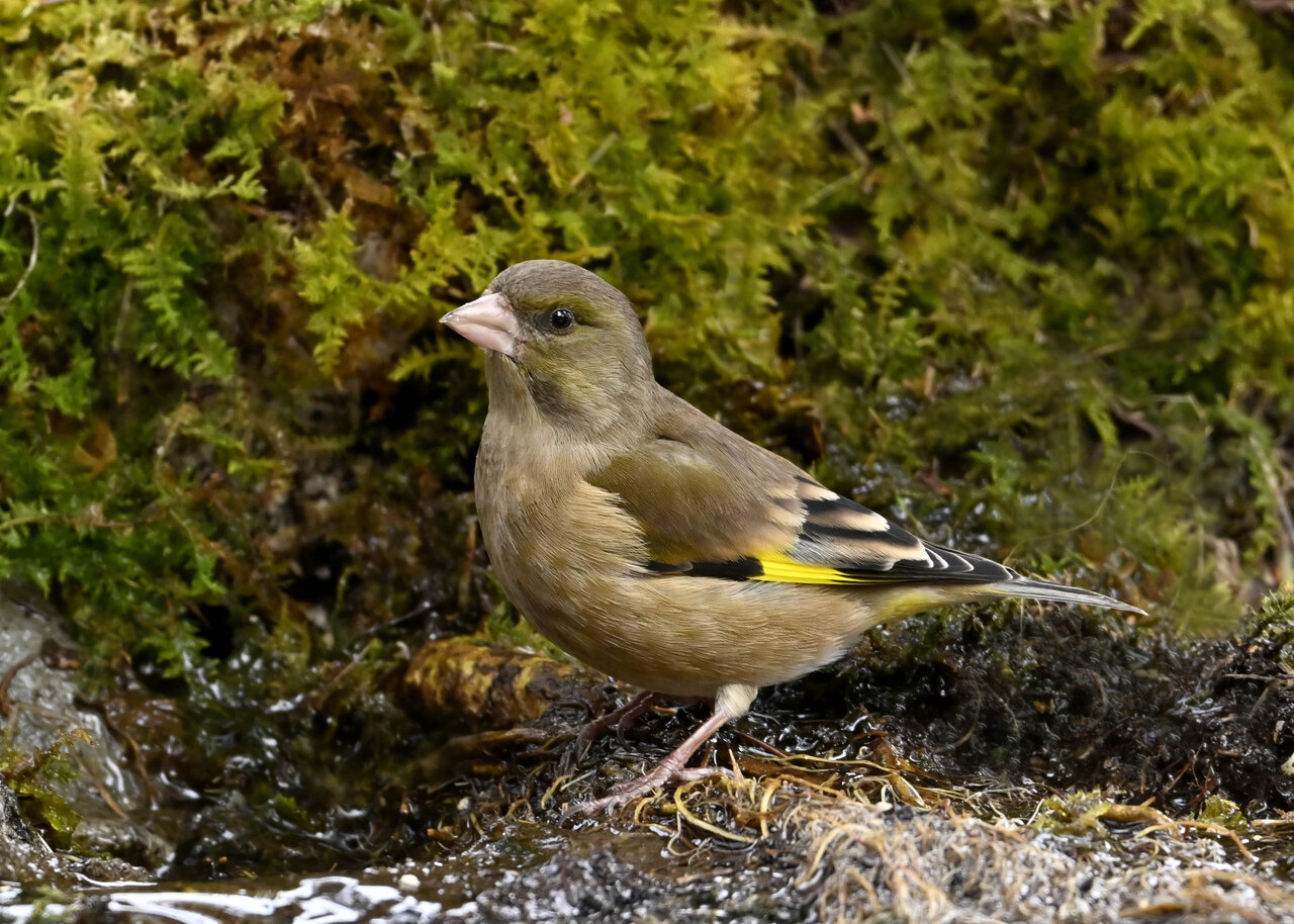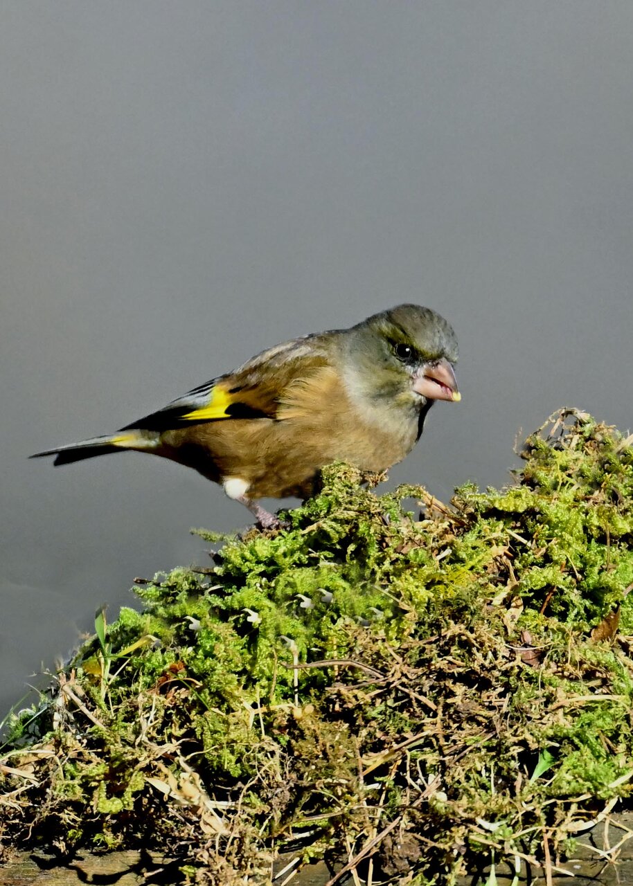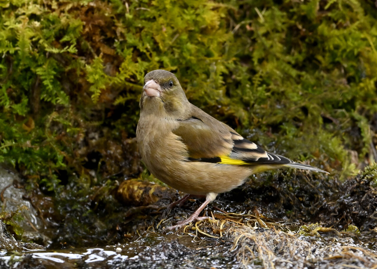 オオカワラヒワ♀です。♂より全体に淡色です。