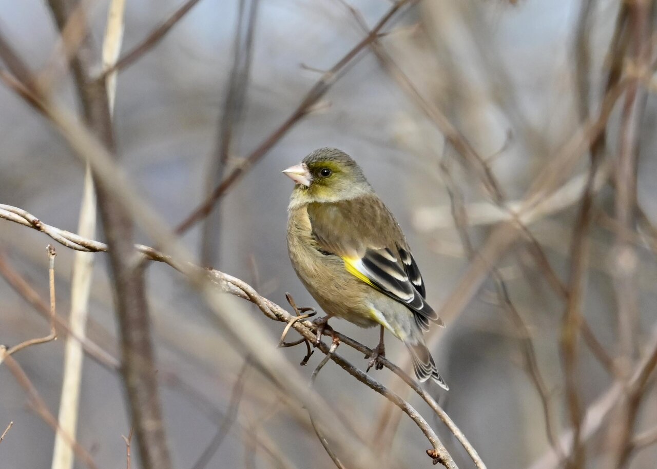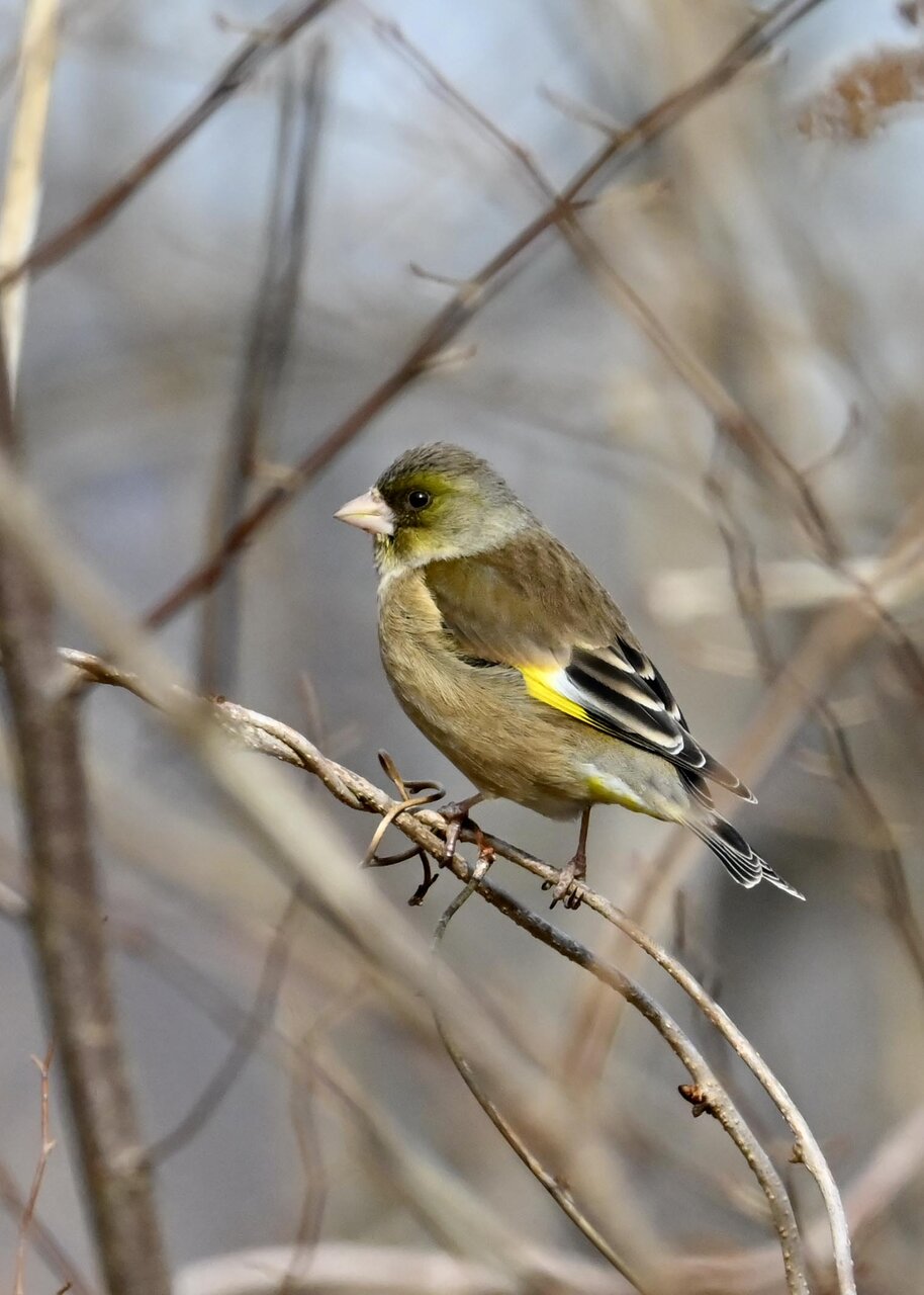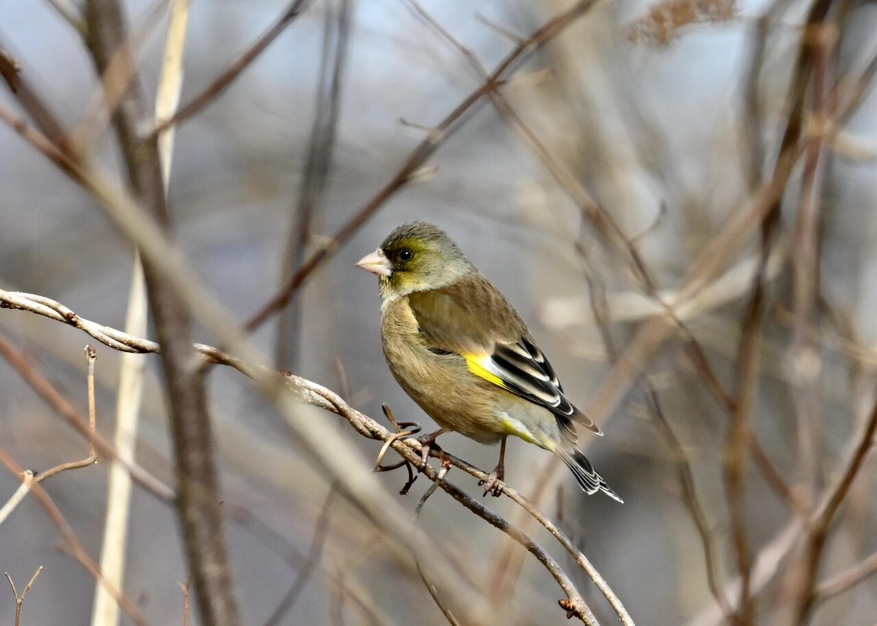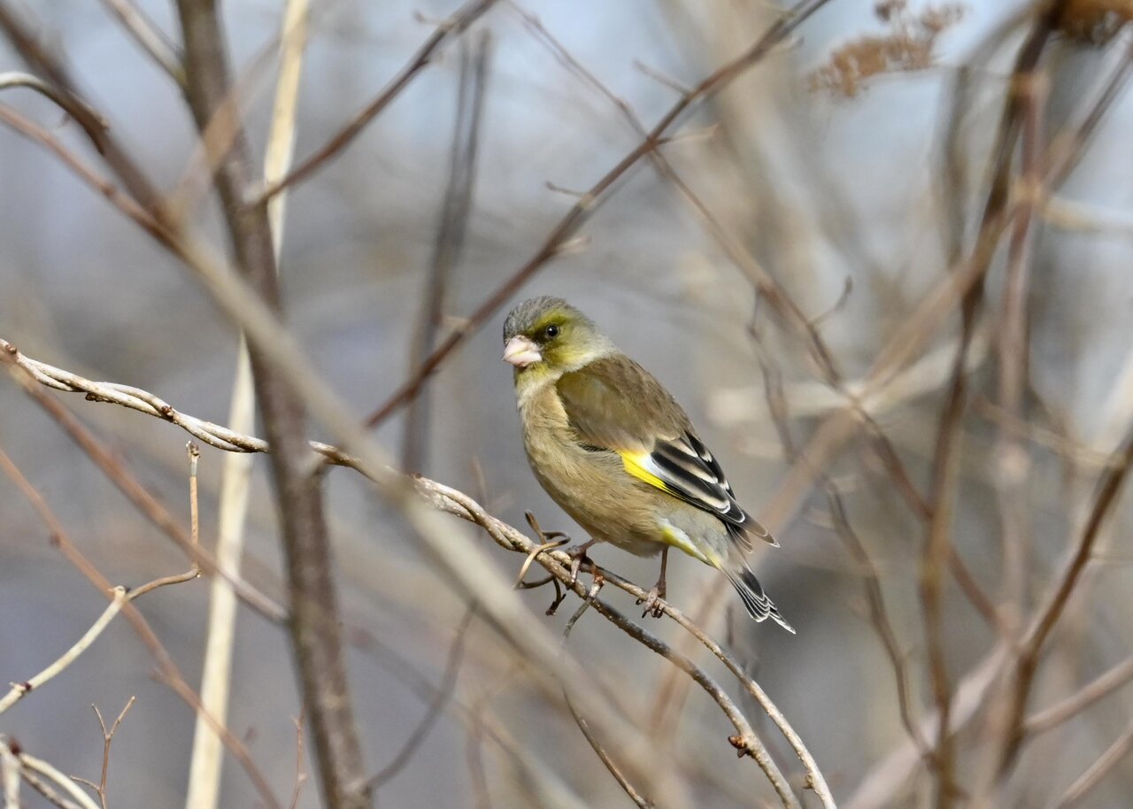 、、、と言う訳で、オオカワラヒワとカワラヒワの比較が出来たところで、以下オオカワラヒワを掲載します。(機会があれば、カワラヒワももう少し真面目に撮影したいと思っています。)