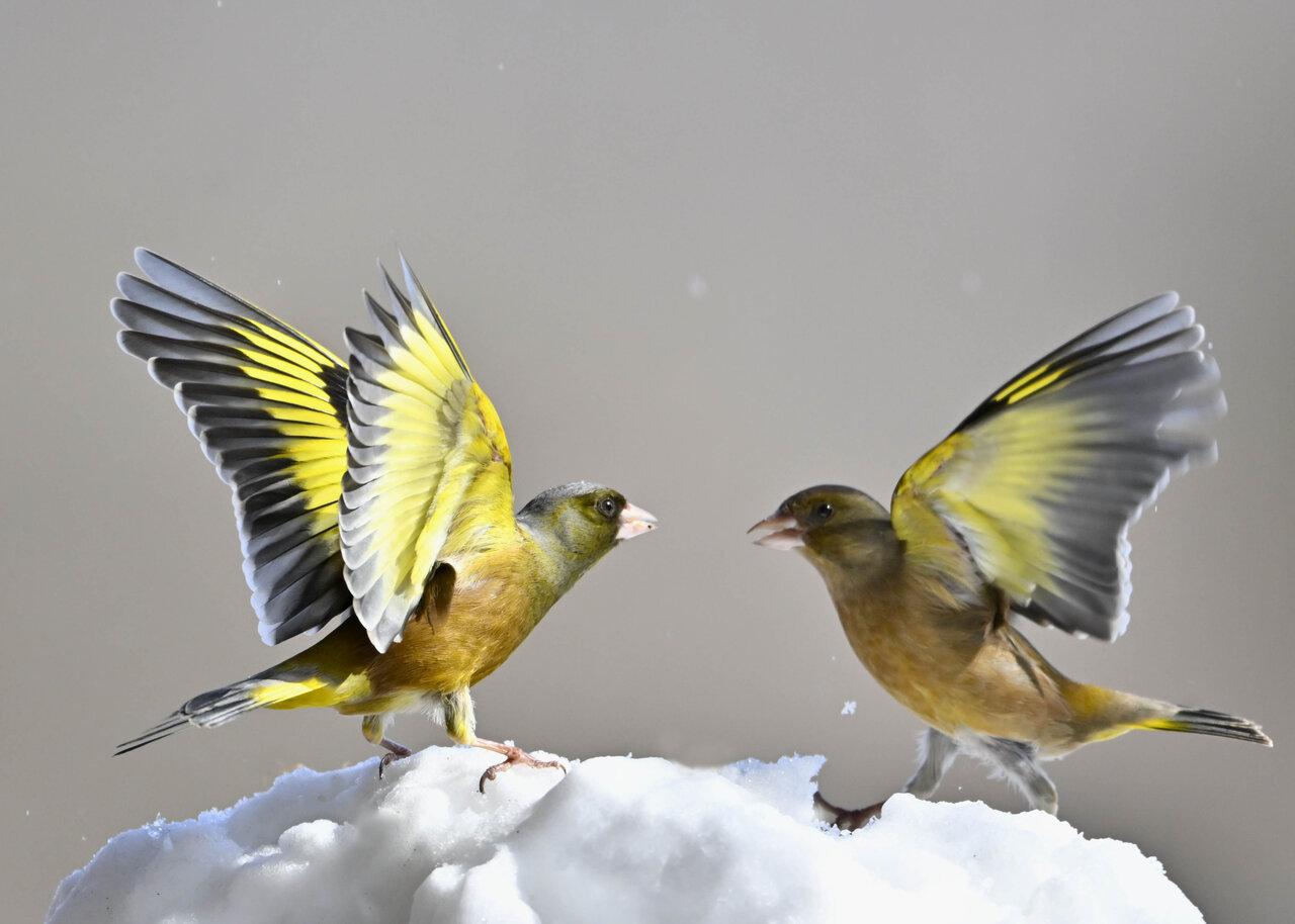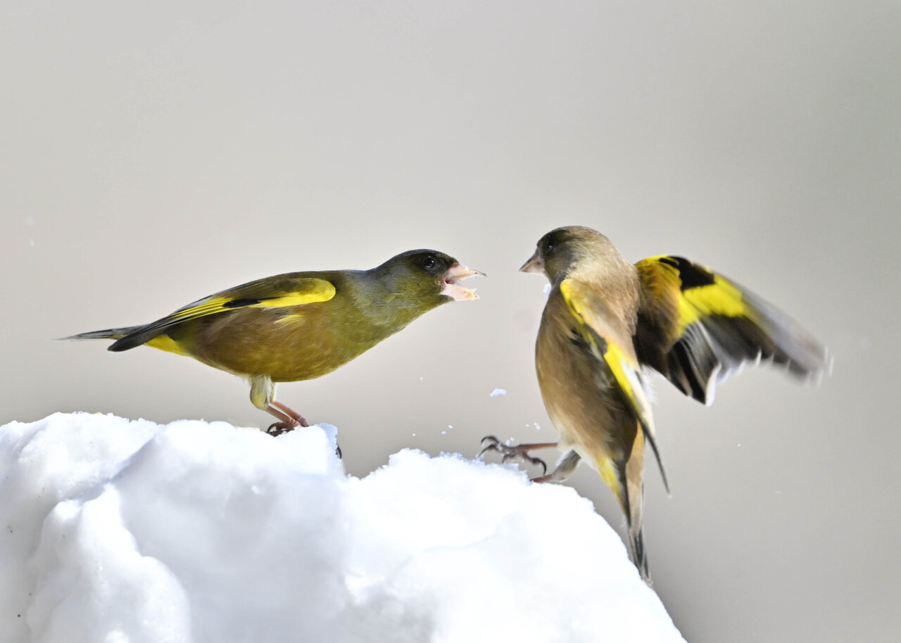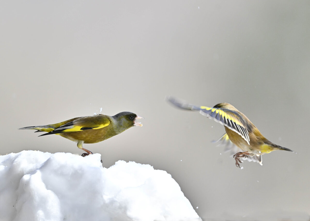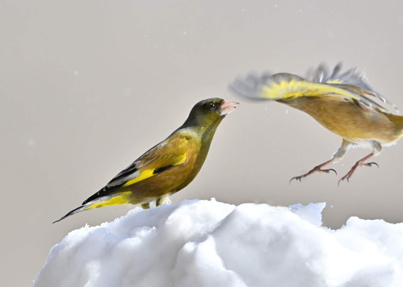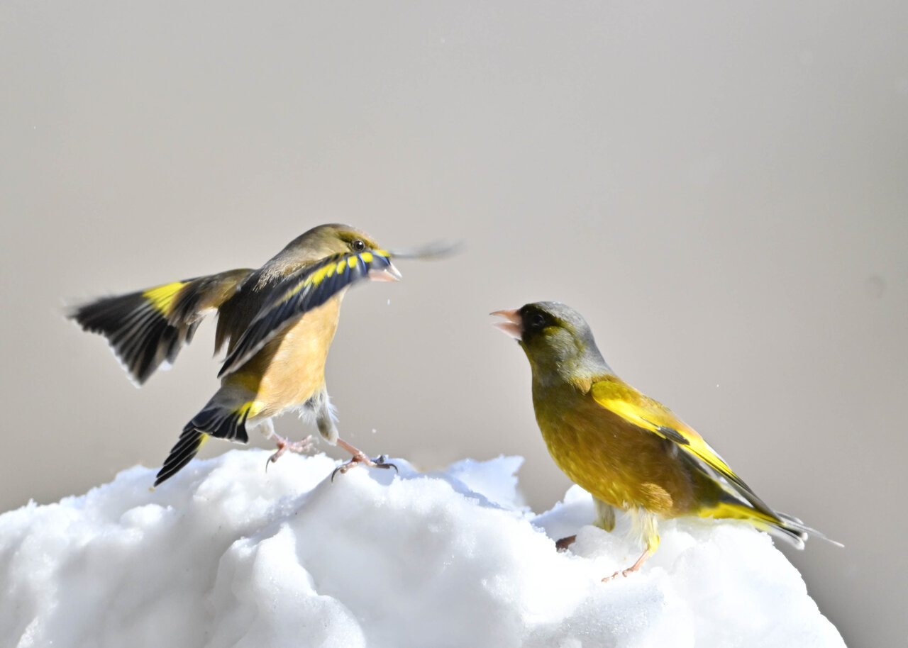 今日は亜種オオカワラヒワのバトルシーンを掲載しています。