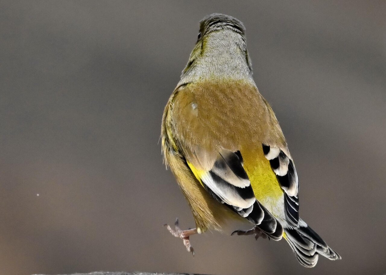カワラヒワですが、前段のオオカワラヒワとの違いは微妙です。(この個体では3列風切より、次列風切り・初列風切に特徴あり。)