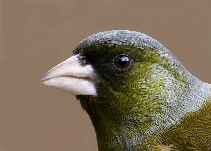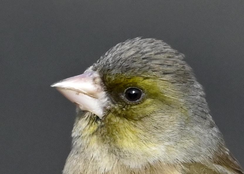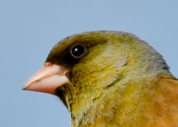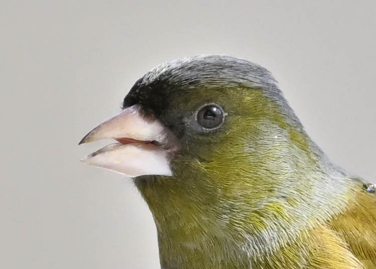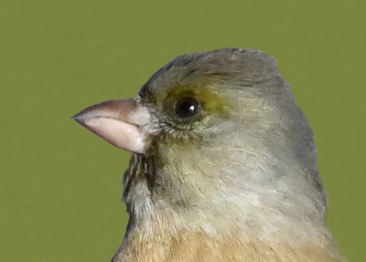 オオカワラヒワの頭部です。次のカワラヒワの頭部と比較してみてください。